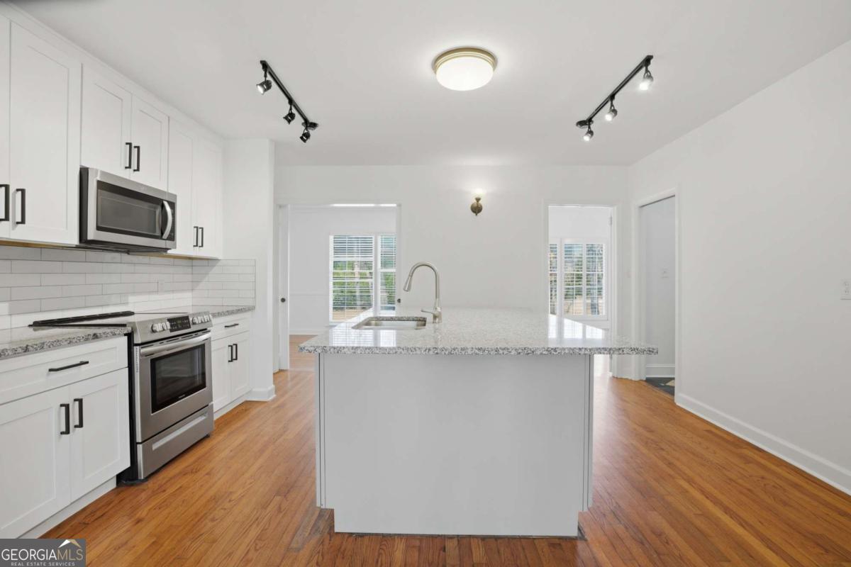 Amazing location in the heart of Buckhead, walk to dining, shopping and entertainment. Easy access to I-75. This home sits on a beautiful 1.2 acre private lot. The large home features on the main level a huge master bedroom, second bedroom/bathroom, dining room, living room, breakfast area, walk-in pantry, sitting area, great room, exercise room, office, large laundry room, hardwood flooring, 2-car garage, workshop and plenty of storage areas. Oversize Master bedroom suite on main features dual walk-in closets, a spacious bathroom, and access to the amazing backyard. Sit back and relax in the large backyard, perfect for entertainment. Upstairs features a large in-law Suite with dual walk-in closets, a small room perfect for an office, plus two more bedrooms with a Jack and Jill bathroom. Move In Ready!