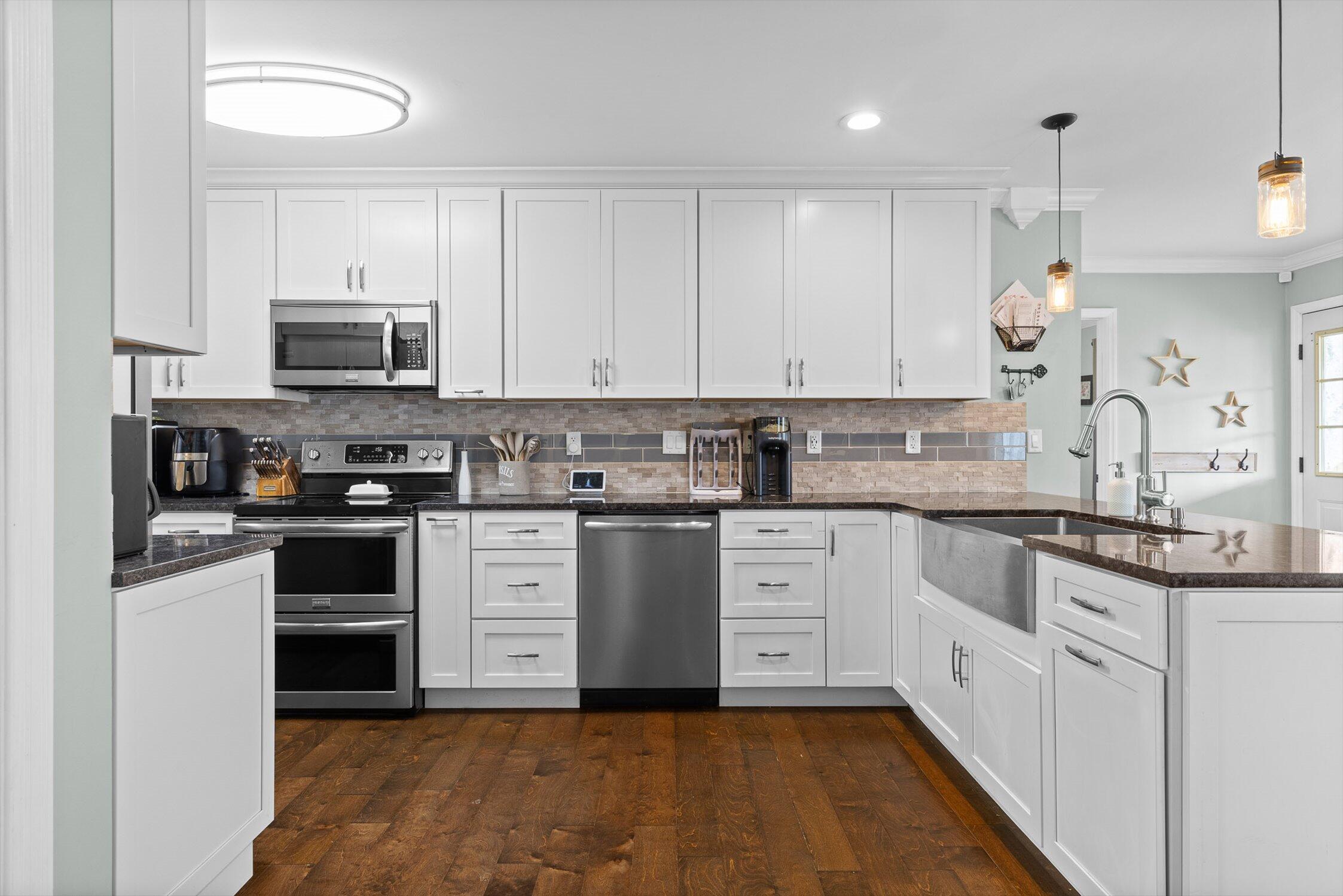 Room to roam, a creek for exploring, and the elementary school within walking distance--this home delivers the perfect blend of convenience, modern amenities, and outdoor living. Beautifully finished and thoughtfully designed, this one-level home sits on over an acre of flat, usable land in a highly sought-after school district. Featuring 3 bedrooms, 2 baths, and a flexible office or playroom, the layout easily adapts to remote work, hobbies, or additional living space. Inside, modern finishes offer a clean, functional aesthetic, while the oversized garage provides ample storage or workspace. Step outside to a spacious back deck, ideal for entertaining or unwinding in a private, peaceful setting. This home is everything you've been waiting for and more!