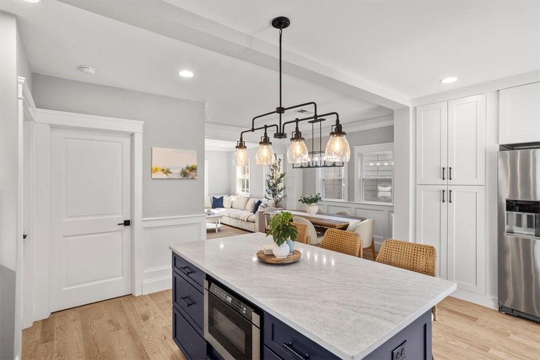 Welcome to 9 Whitwell Place, ideally located in Newport just off Kay Street and a short stroll to Braga Park and First Beach. Enjoy an easy bike ride to downtown Newport while being tucked away in a quiet neighborhood that avoids the summer traffic. This home has been completely updated with new siding, roof, windows, electrical, heating and air conditioning systems. The first floor has been thoughtfully redesigned to create an open layout that is perfect for entertaining. Hardwood floors run throughout the home and the brand new high end kitchen features quality finishes and plenty of space for gathering. All bathrooms have been fully renovated with high end tile and modern finishes. The primary bedroom overlooks the backyard and inground pool which has been beautifully updated with pavers surrounding the patio area creating a private outdoor retreat. The home also features a paver driveway and cedar impression siding for durability and low maintenance. Whether you are looking for the perfect summer getaway or a comfortable year round residence, this home offers the ideal combination of location, updates and coastal lifestyle.