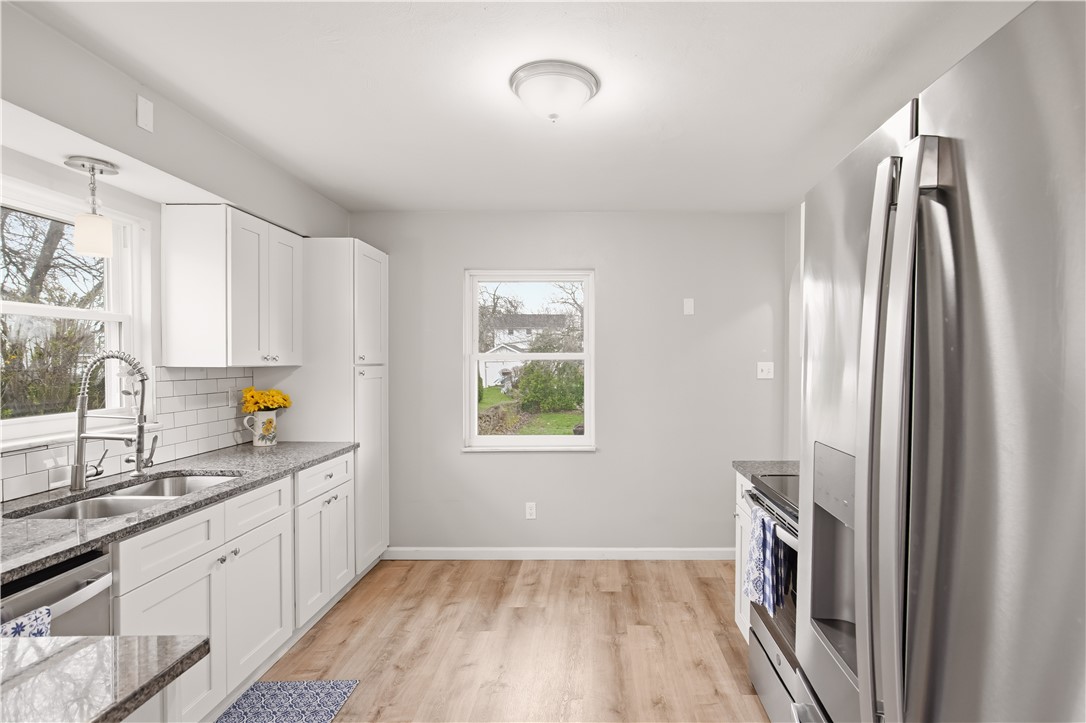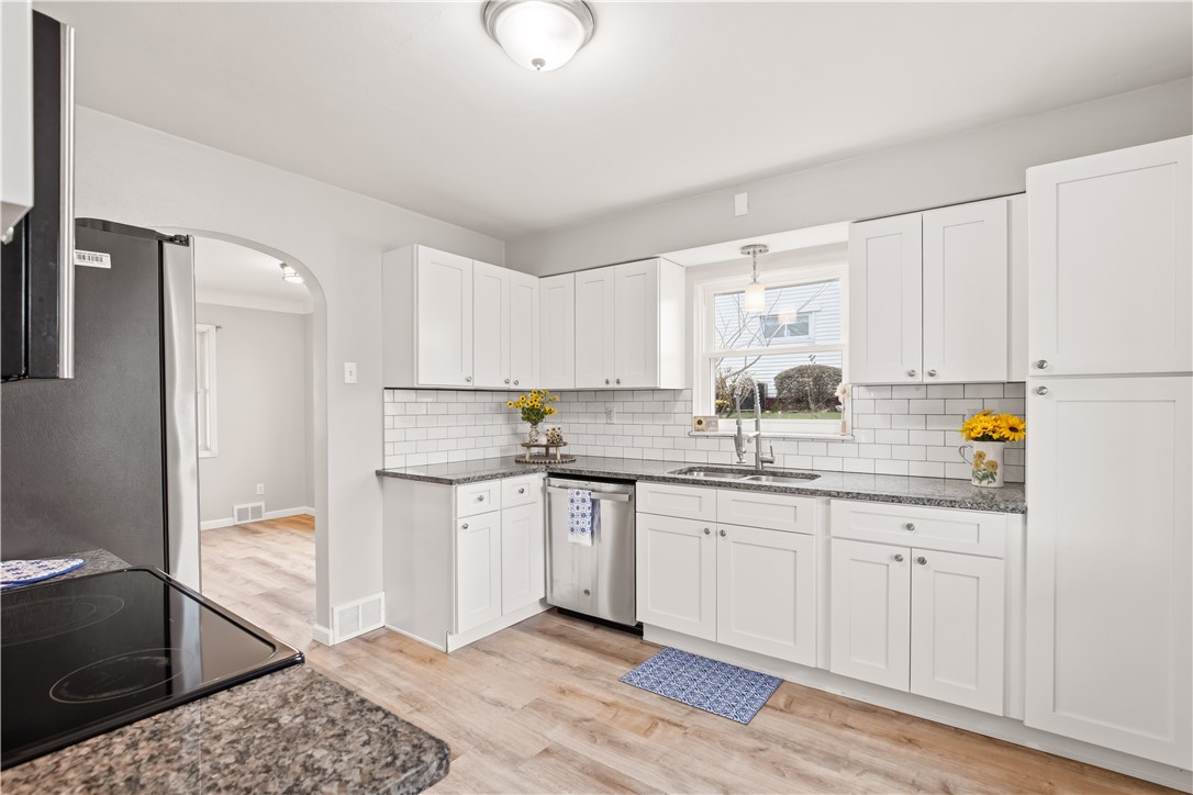 3-bedroom, 1.5-bath ranch home updated throughout and move-in ready. The standout kitchen features granite countertops and includes all appliances, offering both style and convenience. Enjoy the ease of one-level living with a functional layout and comfortable living spaces. Recent updates include newer windows and roof for added peace of mind. Relax on the covered front porch or take advantage of the level backyard that's perfect for outdoor enjoyment. The 1-car detached garage includes a workshop area, ideal for hobbies or extra storage, along with both on-street and off-street parking options. A spacious open basement provides endless possibilities for a game room, gym, or additional storage.