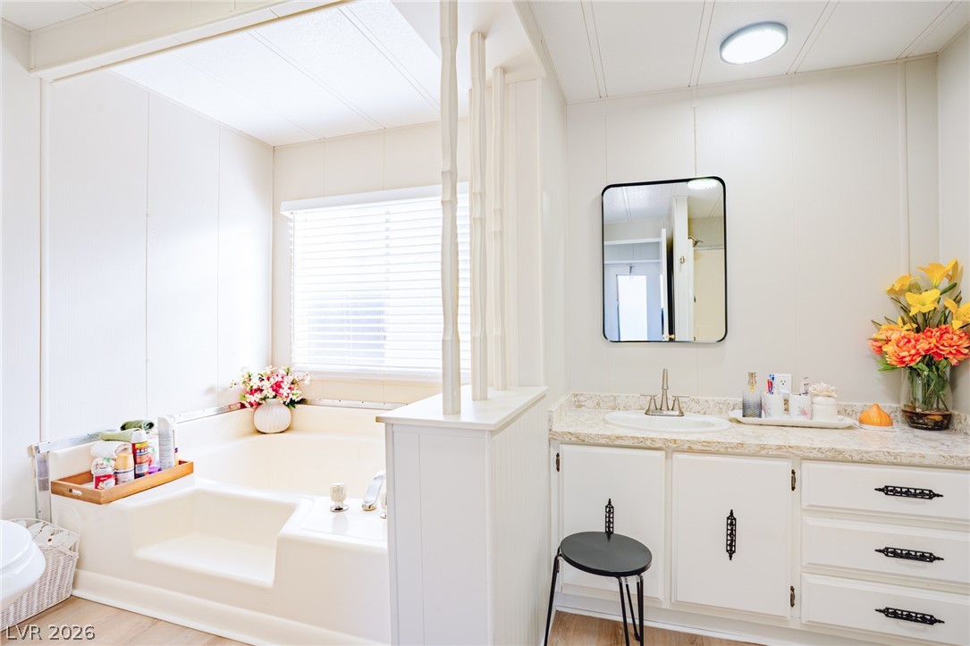 Experience retirement living at its finest in this renovated home within a GATED, age-restricted community. Just 10 minutes from the Las Vegas Strip & minutes from shopping and local amenities. SELLER giving BUYER $5000 Closing Costs. Some furniture is included to help you settle in quickly. Exterior updates include fresh paint, landscaping front and back, including upgraded turf, walkways, pavers, & new irrigation system, Newer AC. The interior features a comfortable, convenient layout with a separate primary bedroom,a large living room, & a window-filled dining area. Community offers a library, a kitchen that opens to a community dining/gathering space, a clubhouse, outdoor pool, indoor Jacuzzi, tennis court, game room, and a sizeable party room. A highlight is the monthly community dining party - a perfect setting for celebrations & social connections. Welcome home to comfort, style, & a vibrant retirement life. FINANCING AVAILABLE WITH A SPECIAL LENDER. CALL LISTING AGENT FOR DETAILS