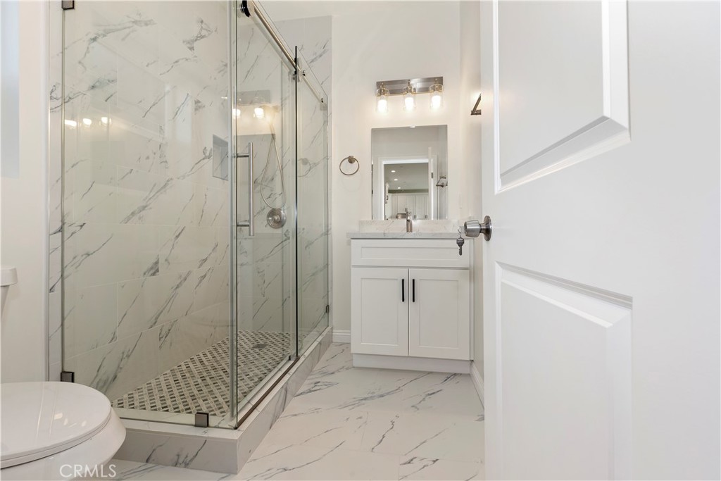Completed in 2025, this brand-new 3-bedroom, 3-bath ADU offers modern living in a highly desirable Pasadena neighborhood. Designed with comfort and efficiency in mind, the home features an open-concept living space with hard-surface flooring throughout, creating a clean, contemporary feel. The stylish kitchen is equipped with stainless steel appliances and ample counter space, perfect for everyday cooking or entertaining. The main level includes one bedroom on the first floor and an adjacent full bathroom with a step-in shower and vanity, providing excellent flexibility for guests, multigenerational living, or a home office. Upstairs, both bedrooms are en-suite, each offering its own bathroom with large walk-in showers, providing comfort and privacy for all occupants. A new HVAC system and solar system contribute to year-round comfort and energy efficiency. Ideally located, this ADU enjoys easy access to nearby shops, restaurants, and entertainment, offering a convenient Pasadena lifestyle with the benefits of brand-new construction and thoughtful design.