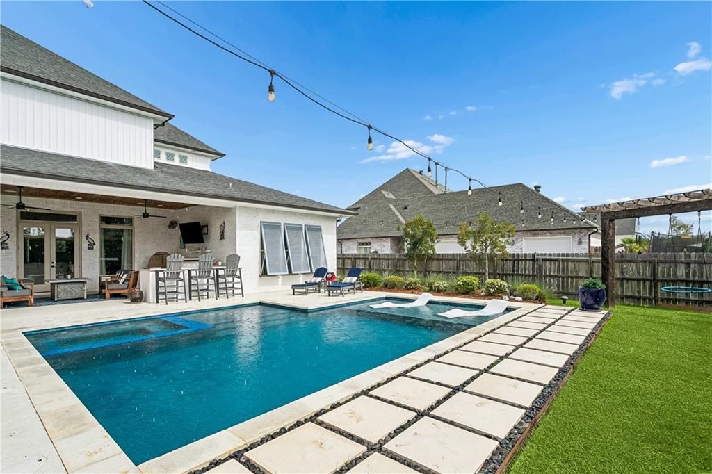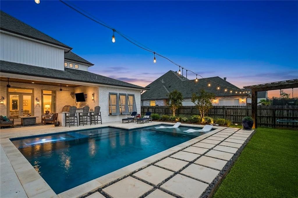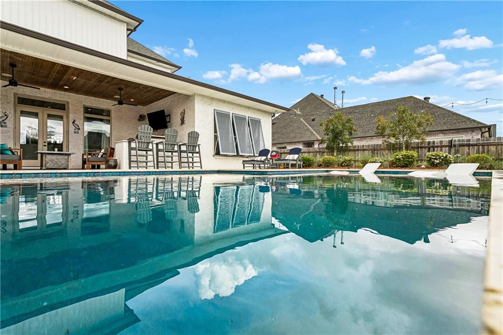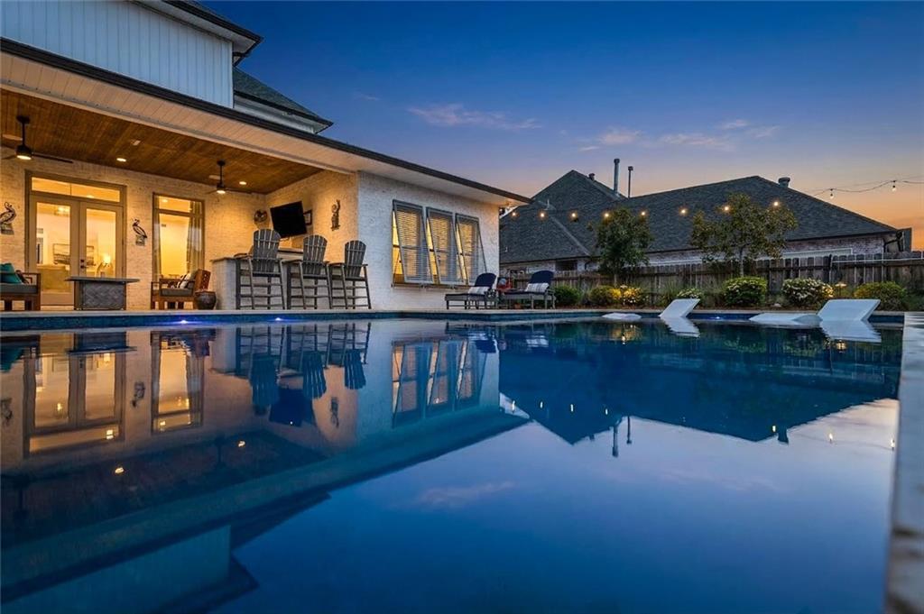 This beautiful custom home in Slidell's popular Turtle Creek community effortlessly blends traditional design elements with modern finishes to create a sophisticated yet comfortable home and offers a package of features that provides greater value than other homes currently on the market: Double Iron & Glass Front Doors Two sets of wood French Doors on the front porch Front porch Cypress Columns and Ceiling Substantial Brick and Cypress Beam design elements throughout the kitchen and living spaces Thermador Range Walk-in Scullery / Prep Kitchen Serving Bar in the dining room 24 KW Whole-home Generator Home Theater with 9:2 Dolby Surround Sound and a Sony 4K Projector $125,000 Audio/Video Package that services the entire home . . . The spacious rooms of this home begin with the welcoming front porch and two-story foyer which are flanked by a home office and a guest suite. The open, yet defined, living spaces of the great room, dining room and kitchen have unobstructed views of the back yard patio and swimming pool. The spacious kitchen boasts a large island, stainless steel appliances and many thoughtful design elements such as a pot filler, serving bar and a large scullery / prep kitchen that offers ample counter space, cabinets, and a beverage and wine refrigerator. The master suite is large enough to accommodate a full compliment of furniture and the bathroom will spoil you with its large closets, two vanities and resort-inspired shower. The second floor is home to three bedrooms, two baths and a fun home theater that has room for family and friends. The backyard oasis includes a covered patio, a well-appointed outdoor kitchen, and a heated saltwater swimming pool that features an incorporated jacuzzi and two tanning ledges. Have peace-of-mind with the 24 kw whole-house generator, a third car garage for additional vehicles or storage, and ample driveway parking. Turtle Creek is just minutes from the bustling entertaining and shopping corridor of Gause Blvd. and Interstate 10, and is just a short drive to Mandeville and New Orleans . . . Take the 3D Virtual Tour to fully immerse yourself in this beautiful home.