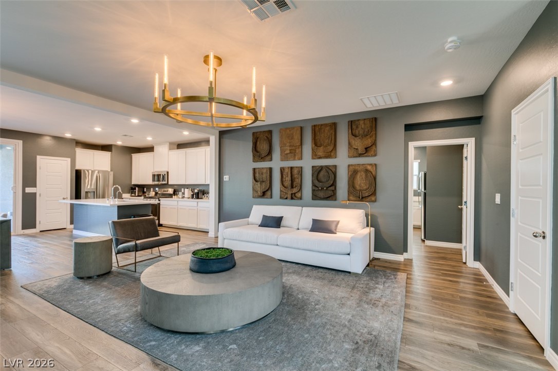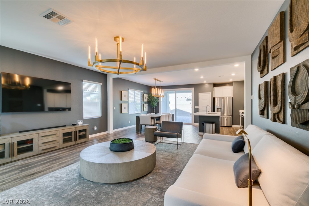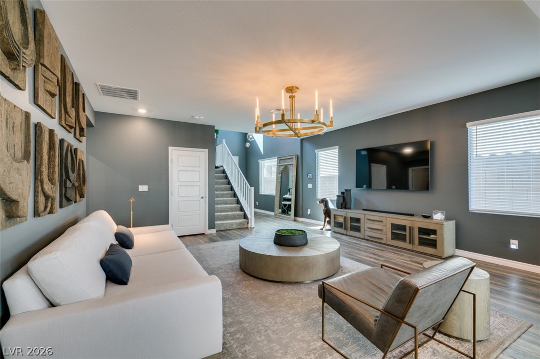 Immaculate two-story home featuring a Next Gen suite (attached casita) with a private side entrance and direct access to the backyard. The main kitchen offers ample cabinetry, quartz countertops, and stainless steel appliances. The Next Gen suite includes a comfortable living area, private kitchenette, and its own washer and dryer; perfect for a home office, multigenerational living, or a private retreat. Offering upgraded vinyl plank flooring and carpet throughout, along with faux wood blinds. Upstairs features a spacious loft for an additional living area and the main laundry room. The primary suite offers a private balcony and a luxurious bathroom with dual sinks, a separate tub, and a walk-in shower. The exterior is equally impressive with modern pavers in the driveway and backyard. The backyard is designed for low maintenance with added greenery and monthly landscaping service is included.