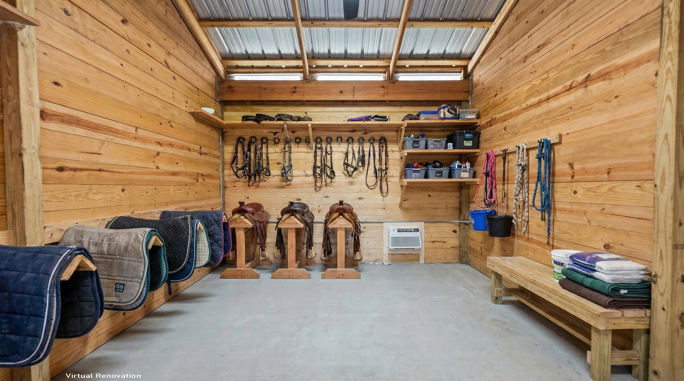 Perfect private horse farm available for rent in the Acreage! This 2014 construction barn features 7 horse stalls, two grooming stalls, two outdoor wash stalls, feed room, tack room, and client lounge. Some stalls have individual run outs. Lots of paddock space. Room for an arena. Top doors that close on all stalls and roll down hurricane doors on both ends of the barn for storm protection. RV hookups and RV available for use. This farm is on 1.97 acres on a paved road conveniently located close to all the amenities of West Palm Beach. Available for Seasonal or Annual Rental. Price reflects rental of the entire farm per month.
