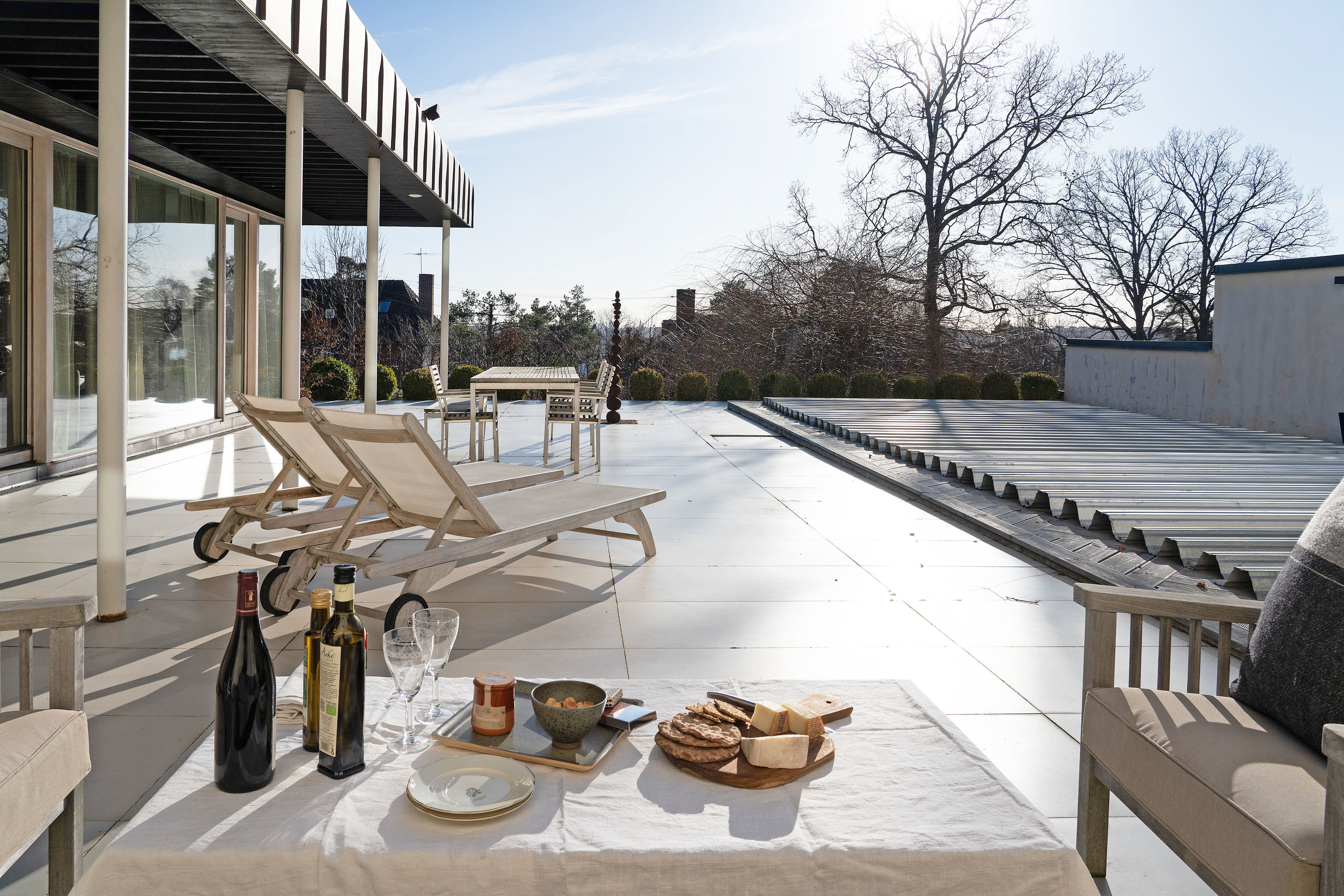 The private garden features an inviting pool area with spacious terraces, creating a natural setting for socializing and relaxation during the summer months. Adjacent to the pool is a stylish pool house, which also serves perfectly as a guest house—ideal for entertaining and accommodating overnight visitors.