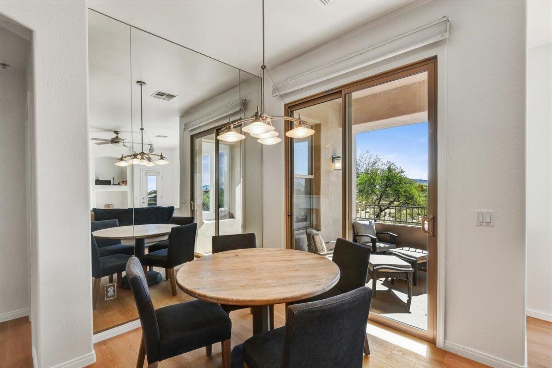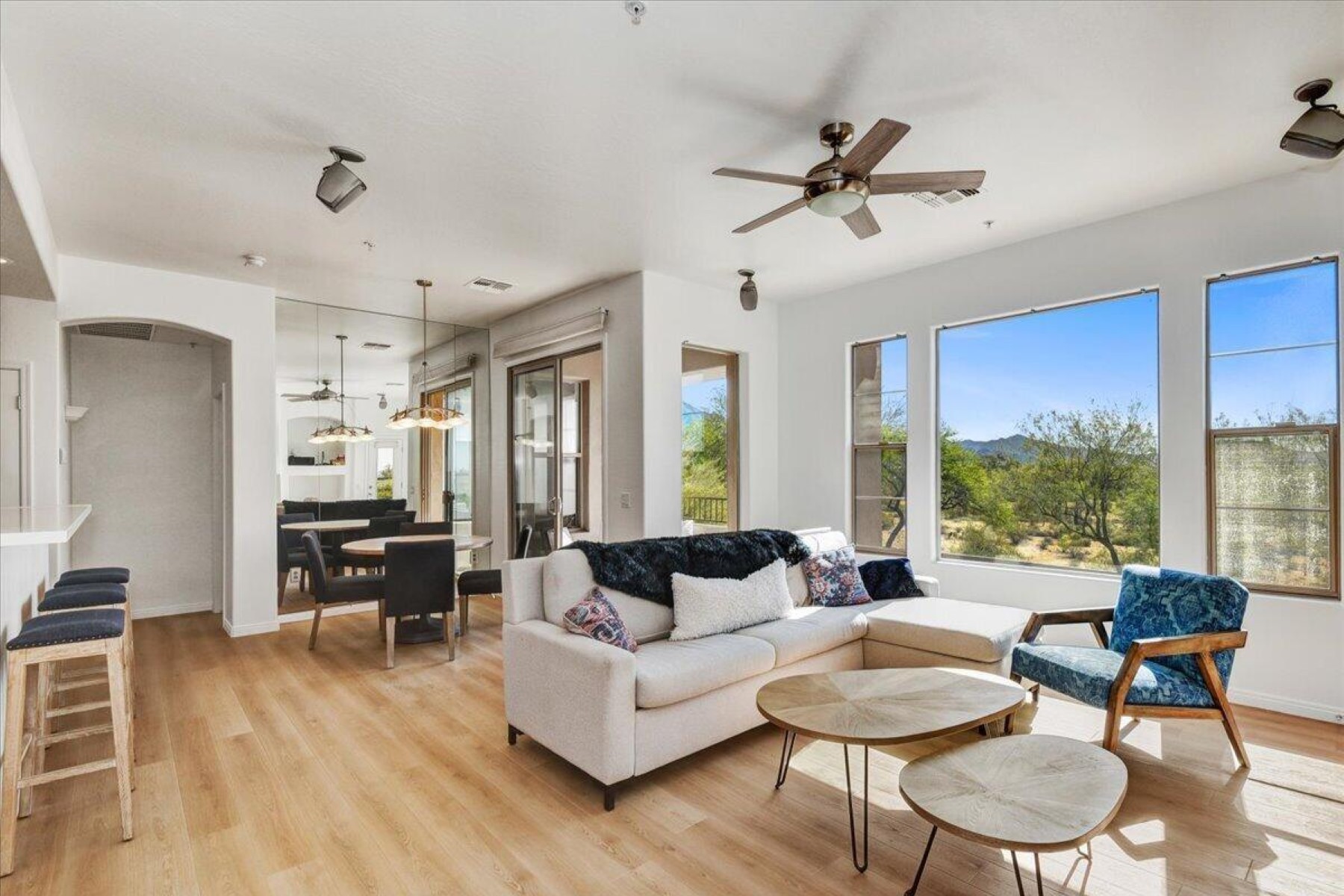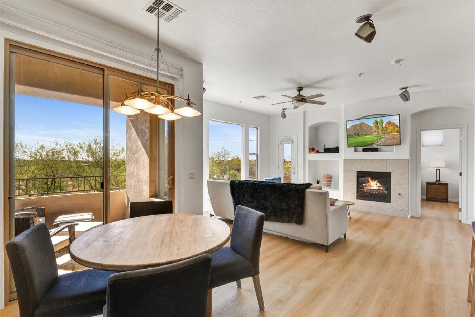 Don't miss this remodeled corner unit in Tesoro that exemplifies the Grayhawk lifestyle! Don't miss the pool, workout room. library, walking paths and tennis courts. Relax and enjoy the views of downtown Scottsdale and the McDowell Mountains from two balconies. This unit is beautifully maintained (A/C replaced in 2024) and is full of natural light, new wood floor and kitchen appliances, it feels new and fresh. The attached oversized two car garage is super convenient and offers extra storage. This one checks ALL the boxes and is great for those looking to downsize or wanting an effortless seasonal home.