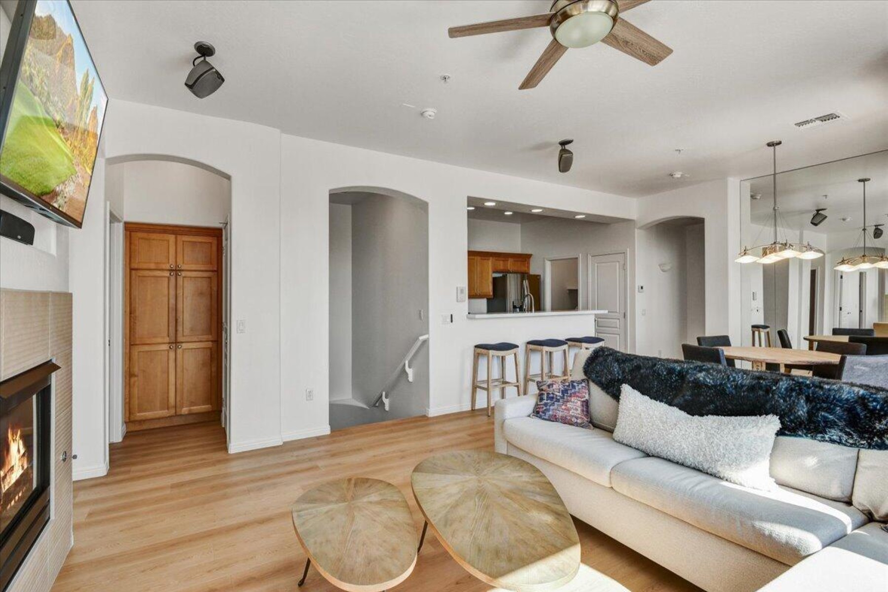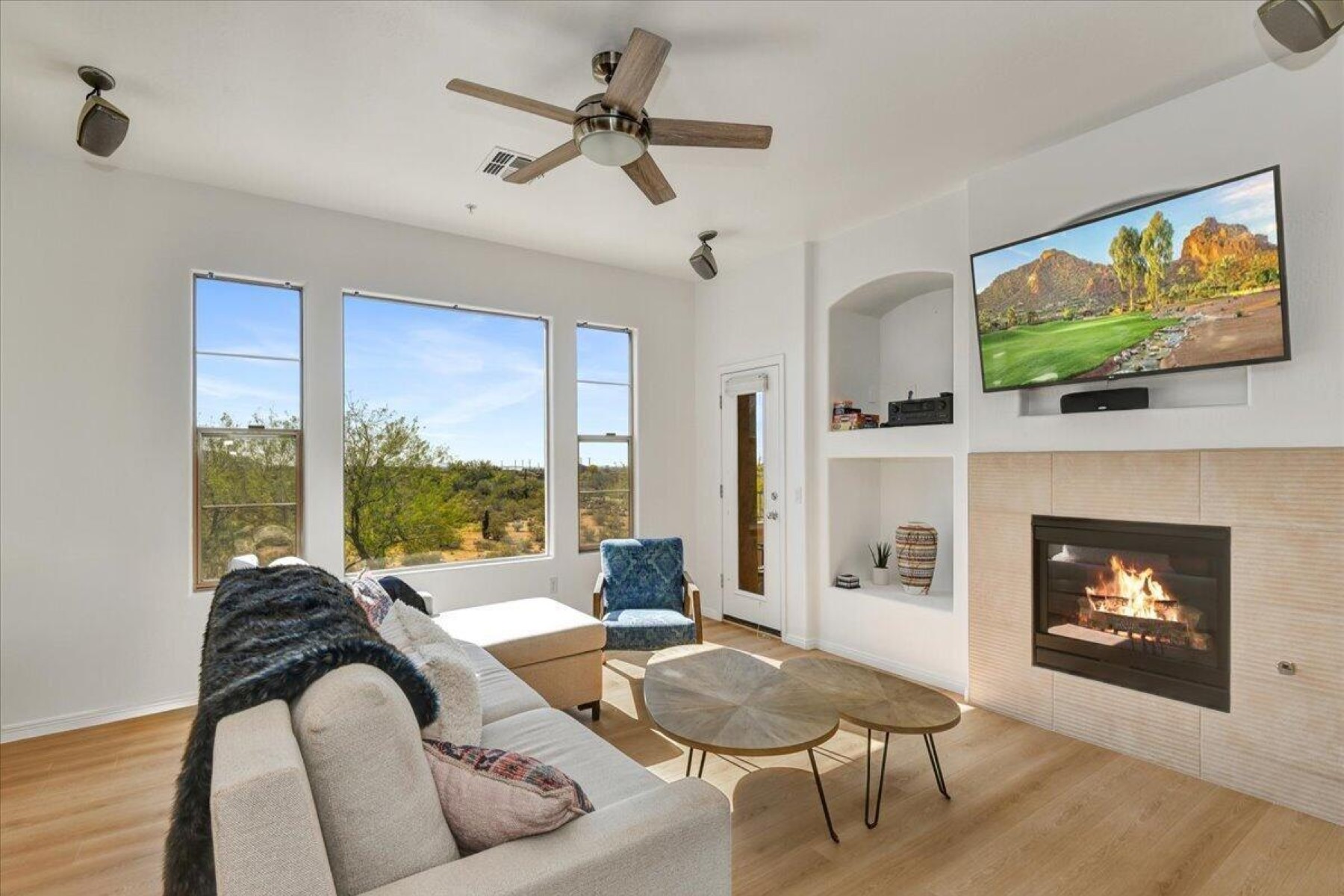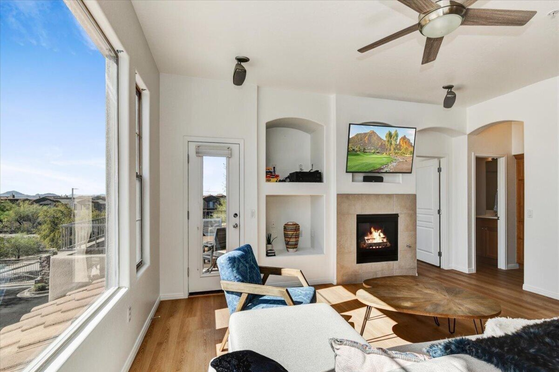 Don't miss this remodeled corner unit in Tesoro that exemplifies the Grayhawk lifestyle! Don't miss the pool, workout room. library, walking paths and tennis courts. Relax and enjoy the views of downtown Scottsdale and the McDowell Mountains from two balconies. This unit is beautifully maintained (A/C replaced in 2024) and is full of natural light, new wood floor and kitchen appliances, it feels new and fresh. The attached oversized two car garage is super convenient and offers extra storage. This one checks ALL the boxes and is great for those looking to downsize or wanting an effortless seasonal home.