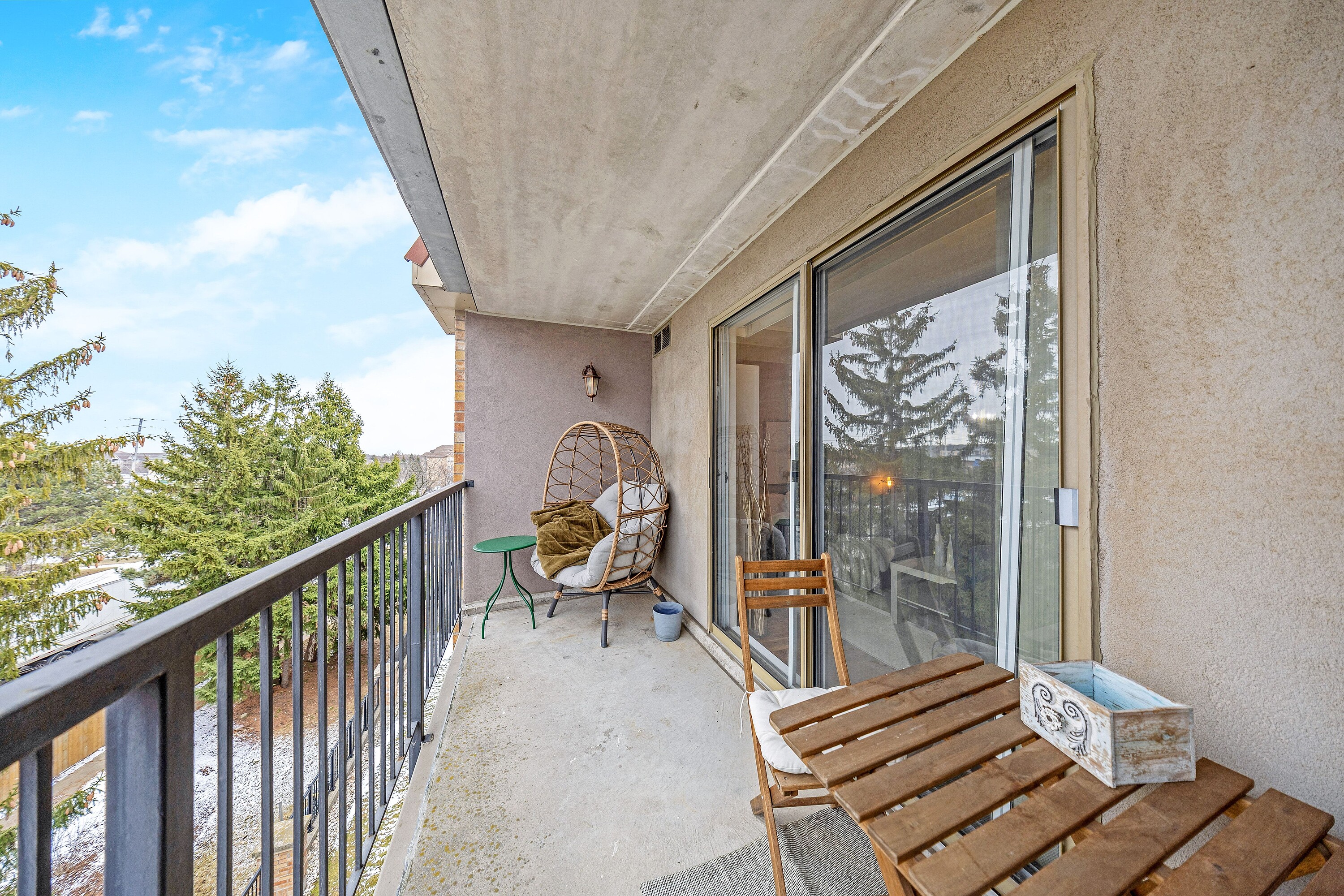 Welcome to this freshly painted top-floor condo featuring a bright open-concept floor plan and private balcony overlooking landscaped grounds. Finished in warm, neutral tones, this unit offers in-suite laundry, a locker conveniently located on the same level, and one owned underground parking space. Located in a quiet, well maintained building with excellent amenities including a meeting/party room, exercise room, common patio with barbecue, car wash station, and visitor parking. Recent building updates include a newly replaced roof with window replacements forthcoming. Ideally situated close to parks, shopping, public transit, and highway access, offering outstanding everyday convenience.