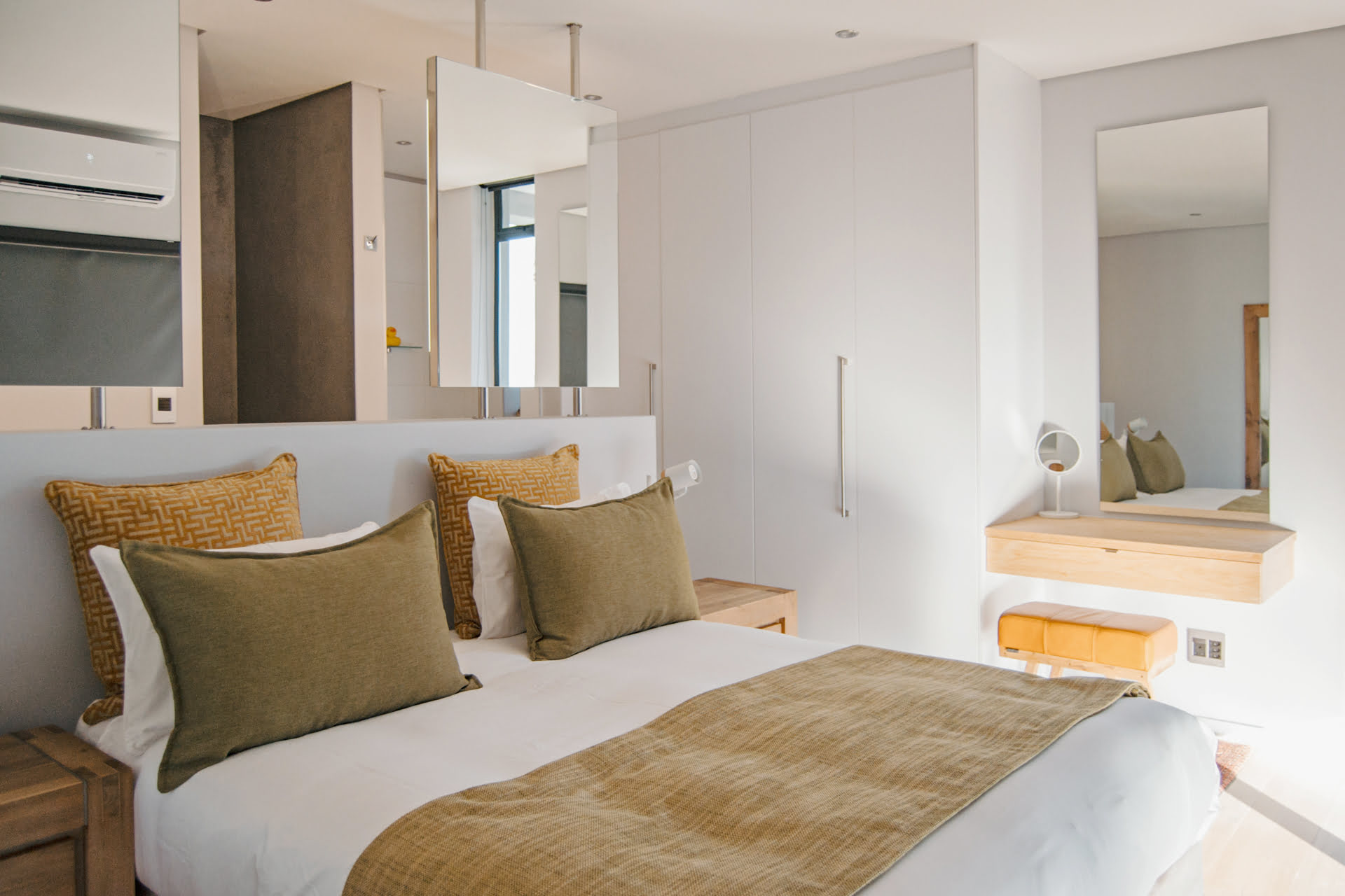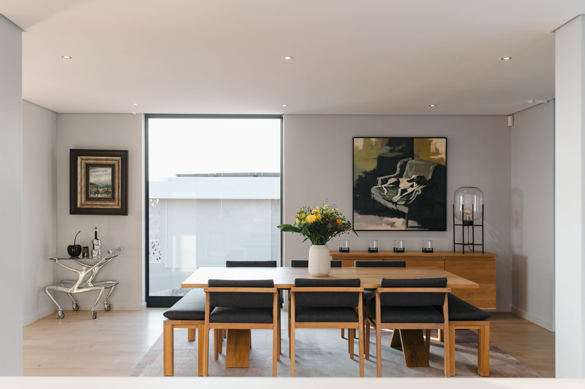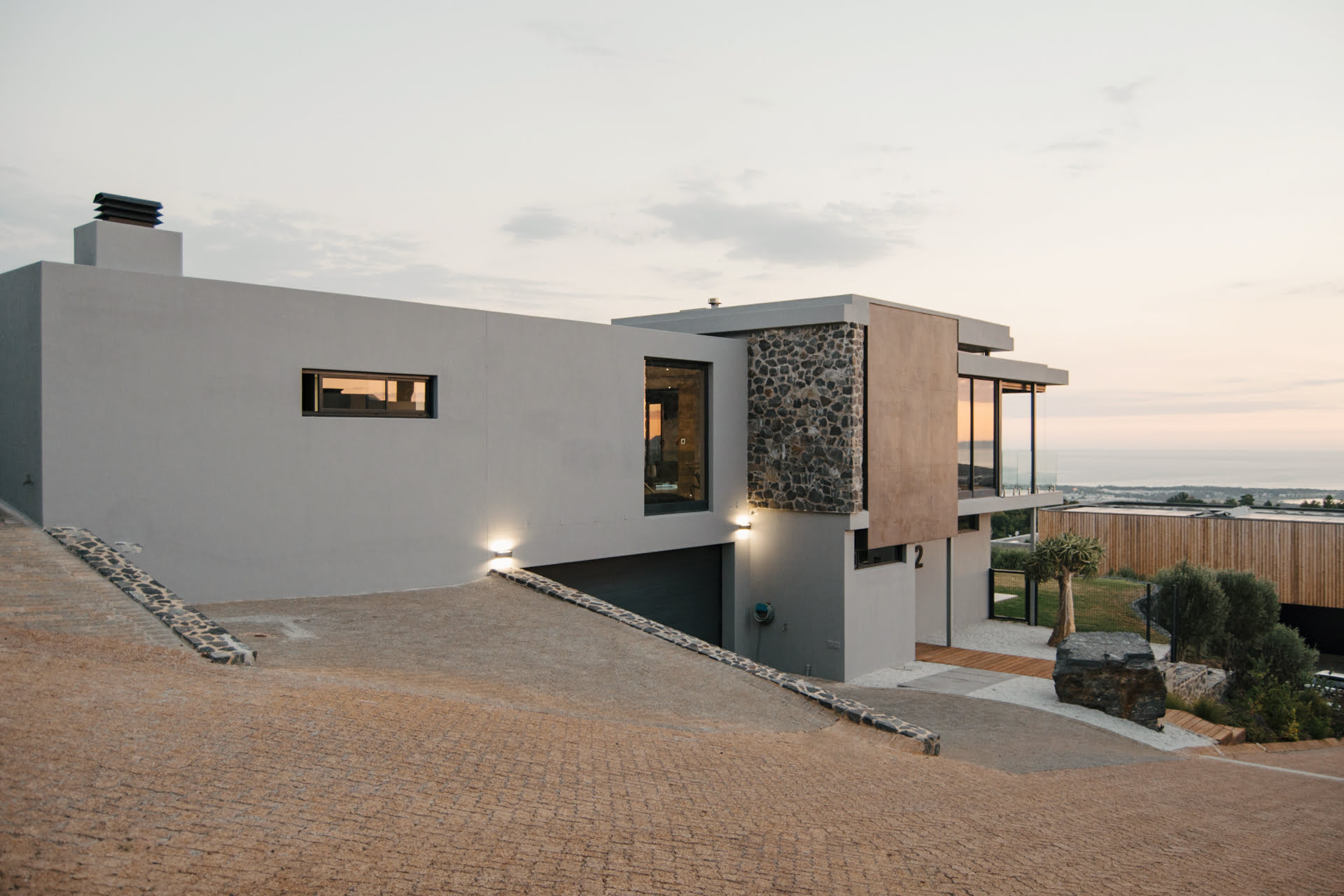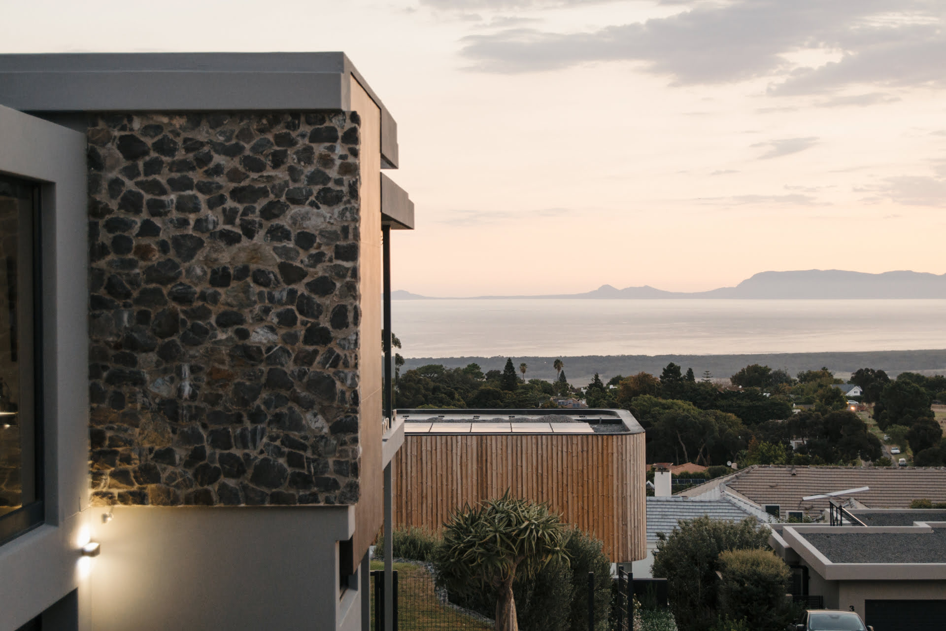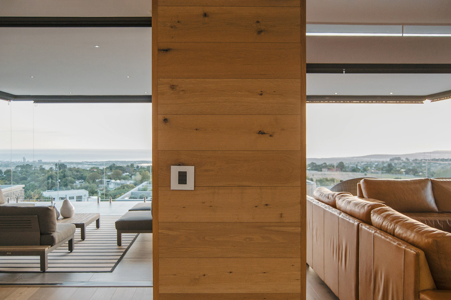 Set within a prestigious, upmarket estate, this exceptional modern residence showcases uninterrupted, panoramic views sweeping across False Bay to the iconic Table Mountain.