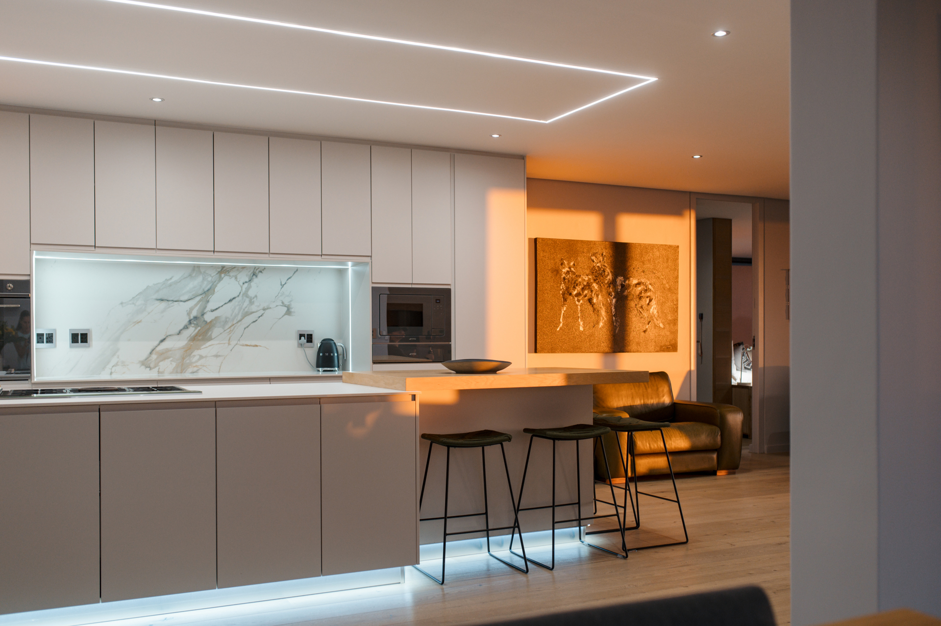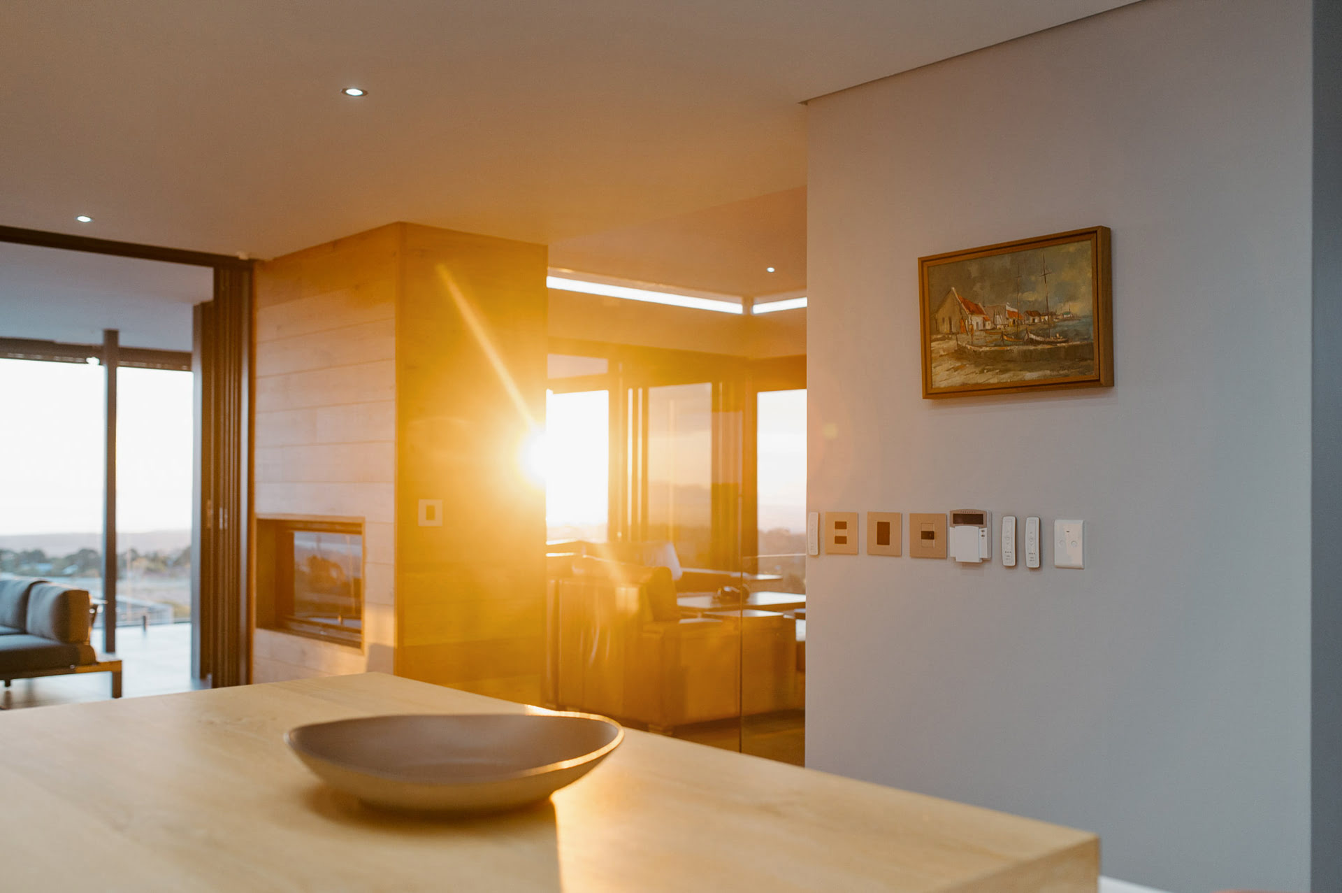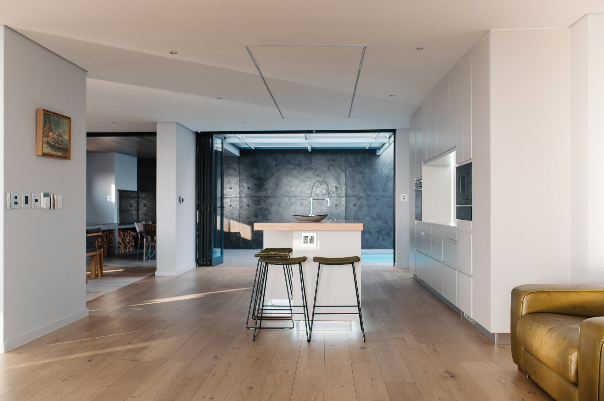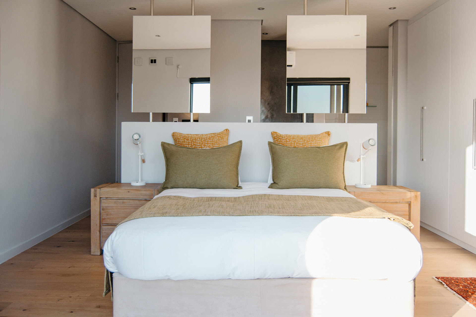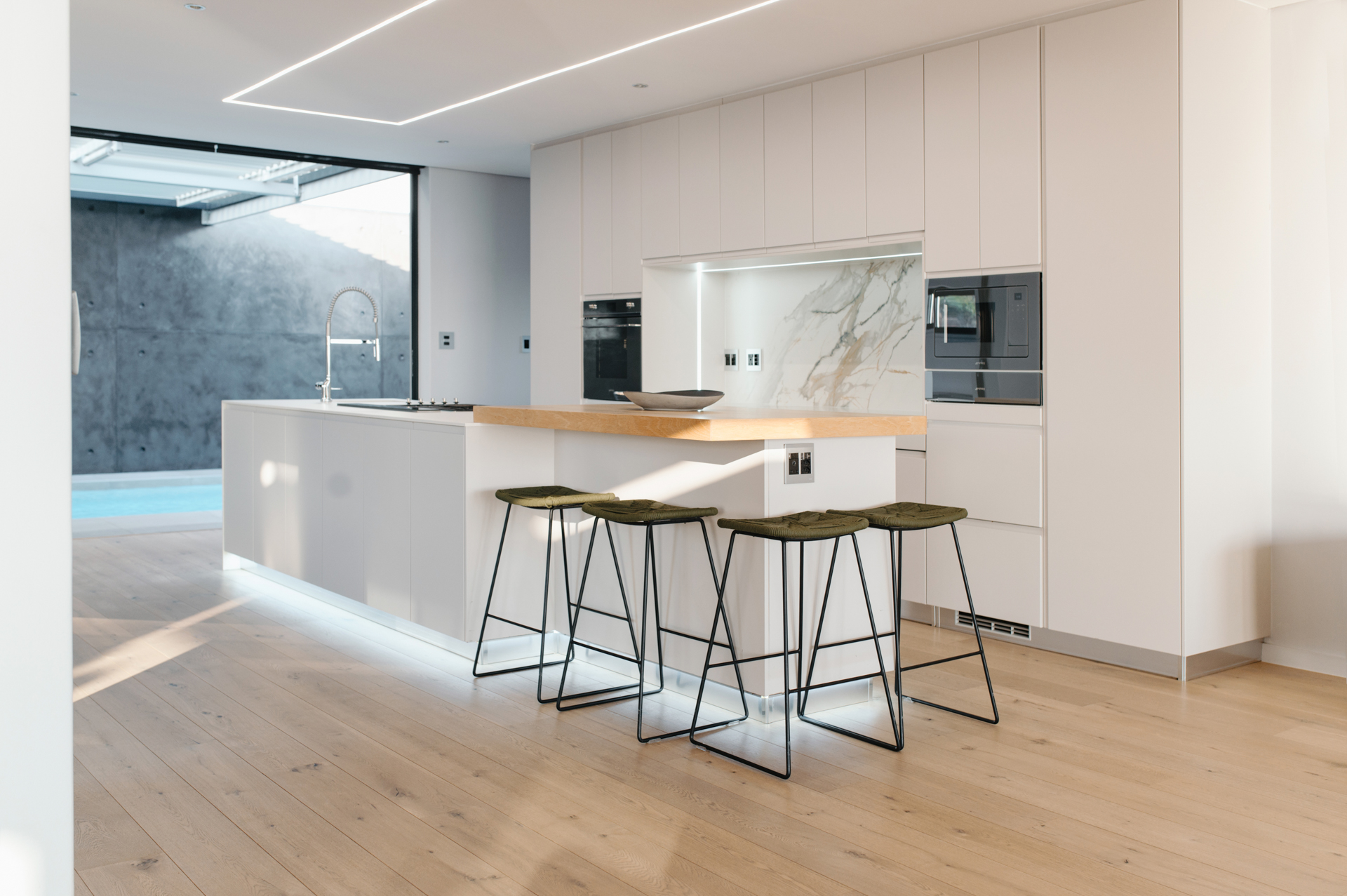 Set within a prestigious, upmarket estate, this exceptional modern residence showcases uninterrupted, panoramic views sweeping across False Bay to the iconic Table Mountain.
