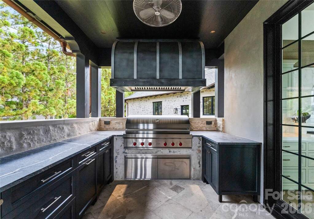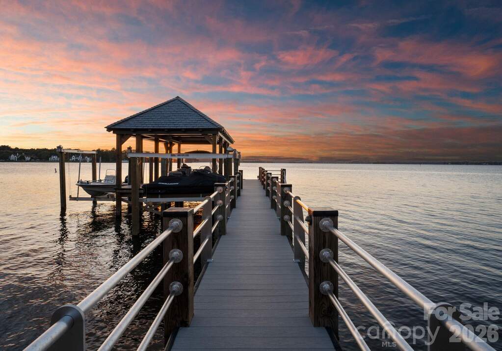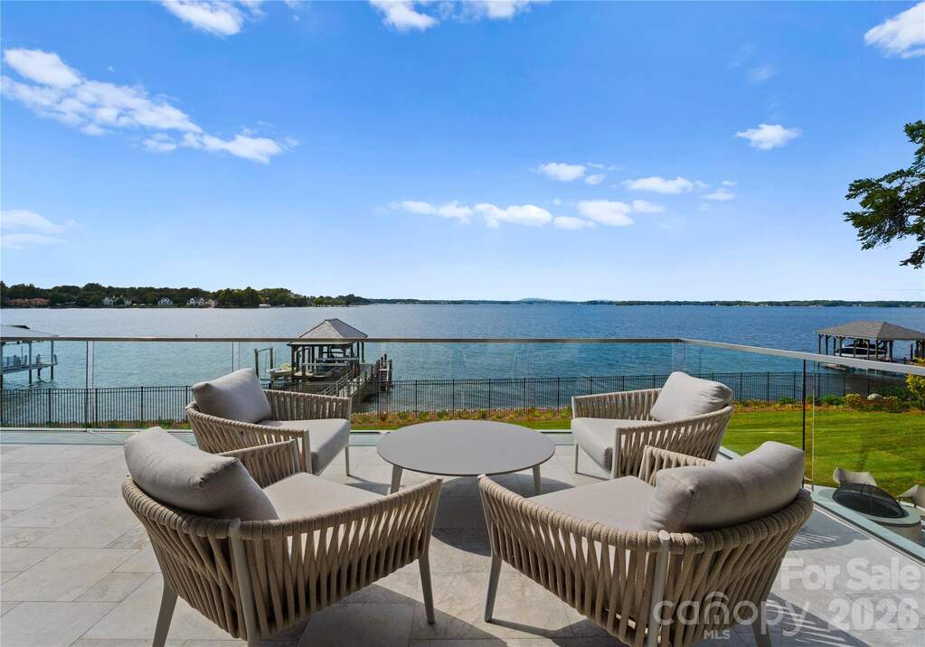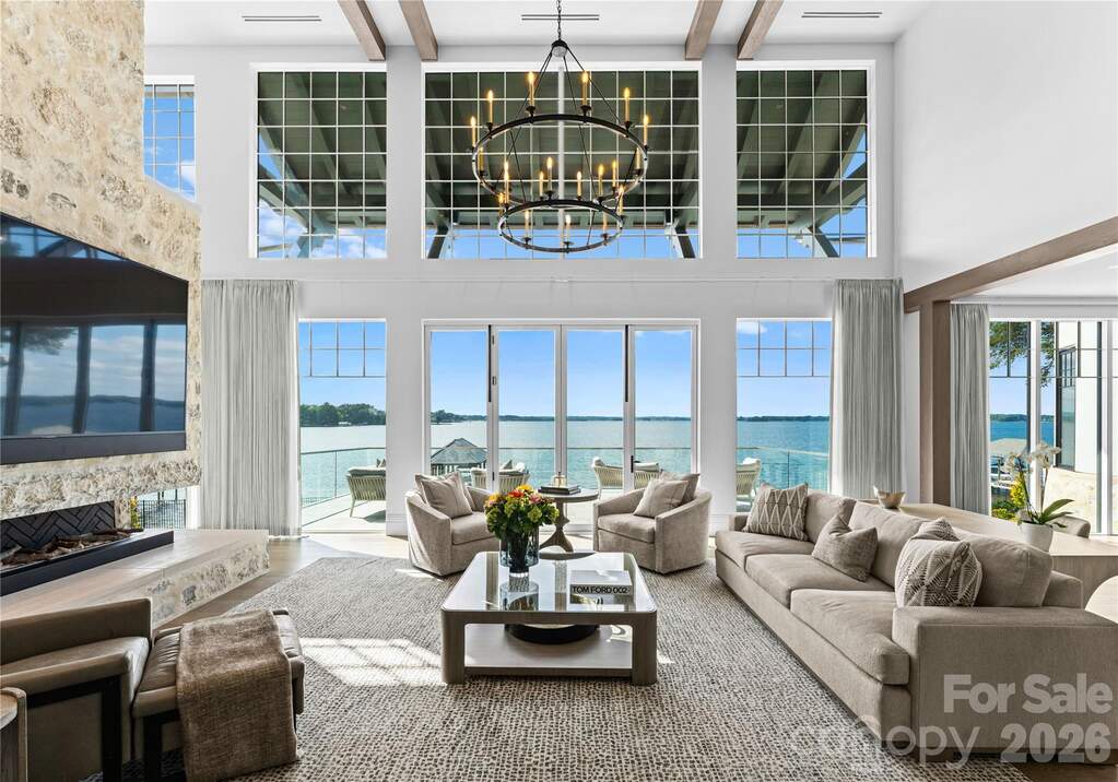 Experience a level of lakefront living where architecture, setting, and design exist in effortless harmony. Set along the shores of Lake Norman, this meticulously crafted estate captures long-range, year-round water views and a sense of quiet grandeur from the moment of arrival. A dramatic two-story foyer unfolds into a grand salon, where walls of glass and fold-away doors open to expansive terraces, blending indoor and outdoor living. Light moves throughout, highlighting refined finishes and thoughtfully curated spaces. At the heart of the home, a chef's kitchen of exceptional scale features dual islands, a fully appointed scullery, and integrated appliances-designed for both gathering and precision. A covered lakeside terrace extends just beyond, complete with a fireplace, ceiling-mounted heaters, and an outdoor kitchen with Wolf grilling. The main level is anchored by a private primary suite, thoughtfully positioned as a true retreat, offering serene lake views and a spa-inspired bath with elevated finishes and a sense of quiet separation from the rest of the home. Additional bedroom suites are thoughtfully arranged across all levels, including a main-level guest suite, a lake-level suite, and three expansive upper-level bedrooms-each designed with the scale and comfort of a private retreat, featuring walk-in closets and ensuite baths. Laundry on every level and elevator access throughout further enhance everyday ease. The lake level is designed for both relaxation and recreation, featuring a full kitchen, golf simulator, fitness studio, sauna, and wine cellar. Outdoors, a resort-style setting unfolds with an infinity-edge pool and spa, fire features, and multiple gathering spaces oriented toward the water. A private dock with dual slips and personal watercraft lifts provides immediate access to the lake. Enhanced by Control4 smart home technology, the residence offers a seamless blend of sophistication and modern convenience. Offered fully furnished with interiors curated by David Smith Interiors, along with a pontoon boat and two PWCs. Opportunity to acquire membership to The Peninsula Club further elevates the lifestyle.
