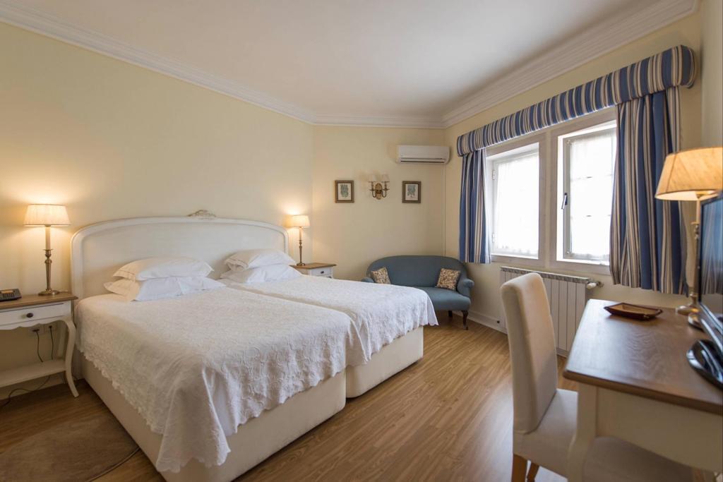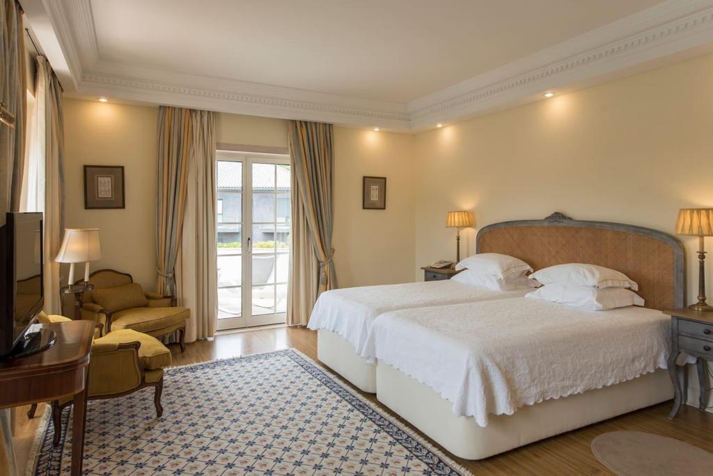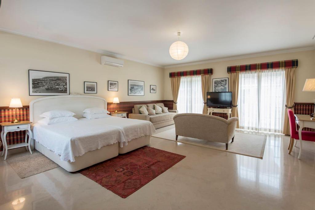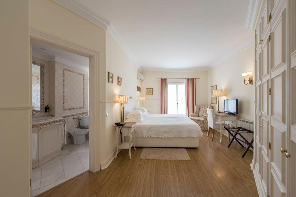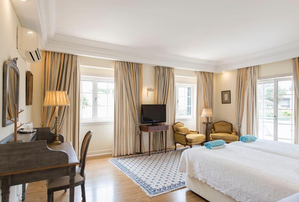 Elegant villa featuring classic Mediterranean architecture with refined Portuguese influences, distinguished by harmonious lines, spacious balconies, noble finishes, and excellent integration with the surrounding garden.Upon entering the property, a welcoming entrance hall provides practical circulation between the different areas of the house. This space includes a cloakroom area for coats and direct access to the kitchen, ensuring everyday functionality.The property offers 8 suites, including a master suite with hydromassage bathtub and private balcony, designed to provide comfort and privacy. Two additional suites in the main house also feature private balconies, offering pleasant outdoor spaces and abundant natural light.The social area is thoughtfully arranged with several living environments, including a large living room with wooden library, dining room, TV lounge, and office, creating elegant spaces for both entertaining and family living.The interiors stand out for the quality of their finishes, including decorative Portuguese tiles in the bathrooms, classic carpentry, elegant fireplaces, and abundant natural light, creating a warm and refined atmosphere.The spacious kitchen is complemented by a pantry and support areas, ensuring practicality for everyday living.Outside, the property is surrounded by a beautiful landscaped garden, where a large swimming pool and several relaxation areas create the perfect setting for outdoor living. The balconies surrounding the villa reinforce its architectural charm and provide a seamless connection between indoor and outdoor spaces.The property also includes a covered garage for two cars, as well as additional outdoor parking spaces.An independent annex with 2 suites provides ideal accommodation for guests, family members, or staff.A distinguished residence combining timeless architecture, elegance, and comfort, perfect for a refined lifestyle.