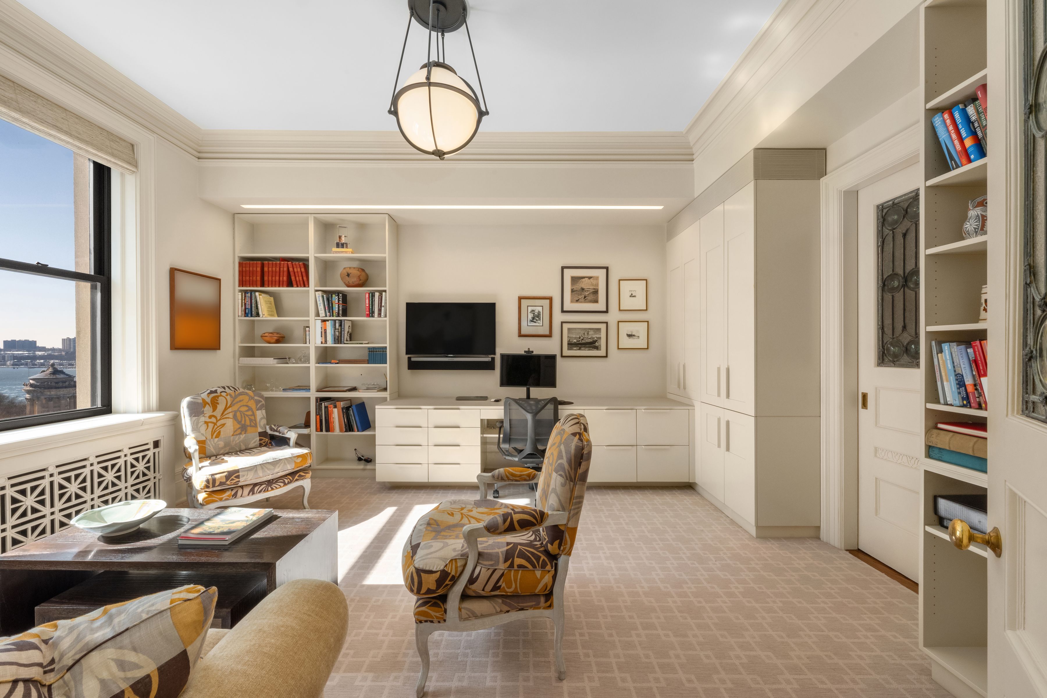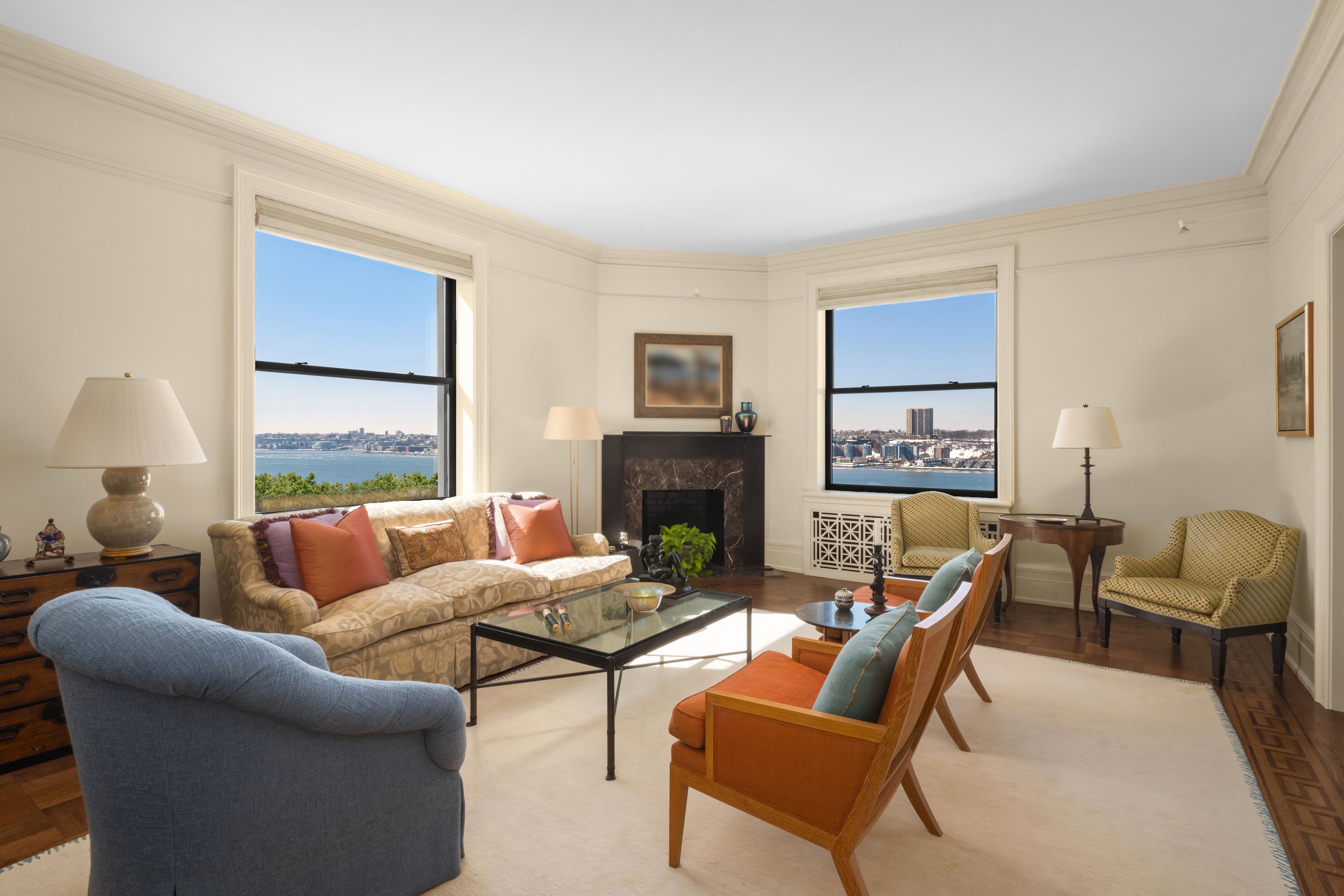 Architectural Grandeur Meets Modern Mastery & Sublime River Views: 190 Riverside Drive, Apt 11C Experience a rare convergence of Gilded Age splendor and 21st-century sophistication. Apartment 11C is a spectacular, 3,600+/-sf, 5-bedroom prewar condominium that stands as a testament to the architectural vision of architect Ralph Townsend. Originally completed in 1910, the apartment has undergone a comprehensive, "studs-out" renovation, seamlessly integrating state-of-the-art infrastructure within a pristine historical envelope. The Great Suite: Entertaining on the River. The home’s classic floorplate is anchored by a graceful central gallery, serving as the gateway to a sensational trio of entertaining rooms overlooking the Hudson River. The Living Room: Buoyed by soaring ceilings and period millwork, panoramic southwest river views perfectly frame the iconic, Lysicrates-inspired Soldiers' and Sailors' Monument. The Library & Dining Room: Elegantly flanking the living room, these chambers create a seamless flow for grand-scale hosting, bathed in the golden light of the riverfront. Artisanal Details: Every inch of the residence displays restored fin de siècle detail, from intricate white oak marquetry floors to newly installed double-glazed windows and doors framed in exquisite period millwork. Infrastructure: Every detail was addressed in the home’s meticulous renovation which includes multi-zone central air conditioning and entirely new electrical and plumbing systems. Kitchen: A culinary sanctuary overlooking the river, with artisanal stone counters, custom cabinetry, a large Wolf range, Sub-Zero refrigeration (+ additional drawer storage), and a Miele dishwasher. Support Spaces: A large pantry, a laundry, and a bright home office/bedroom. Private Quarter: The bedroom wing is an area of calm. The primary suite offers a cinematic NW view of the Hudson, stretching toward the George Washington Bridge, complemented by a lovely dressing area and a spa-like bath. An additional large sunny bedroom also contains an ensuite bath. A luminous fifth bedroom and staff room provide flexible space for guests or live-in support. Commissioned in 1908, 190 Riverside Drive is a landmarked, early 20th master work defined by its white-glove service and historic prestige. Residents enjoy 24-hour doorman & live-in resident manager, pet-friendliness, and an on-site garage (parking spaces available for separate purchase). Located on the most bucolic stretch of Riverside Drive, Apartment 11C offers an unmatched Manhattan lifestyle—a tranquil, park-side retreat with the scale and finish defining a world-class residence. Co-exclusive.