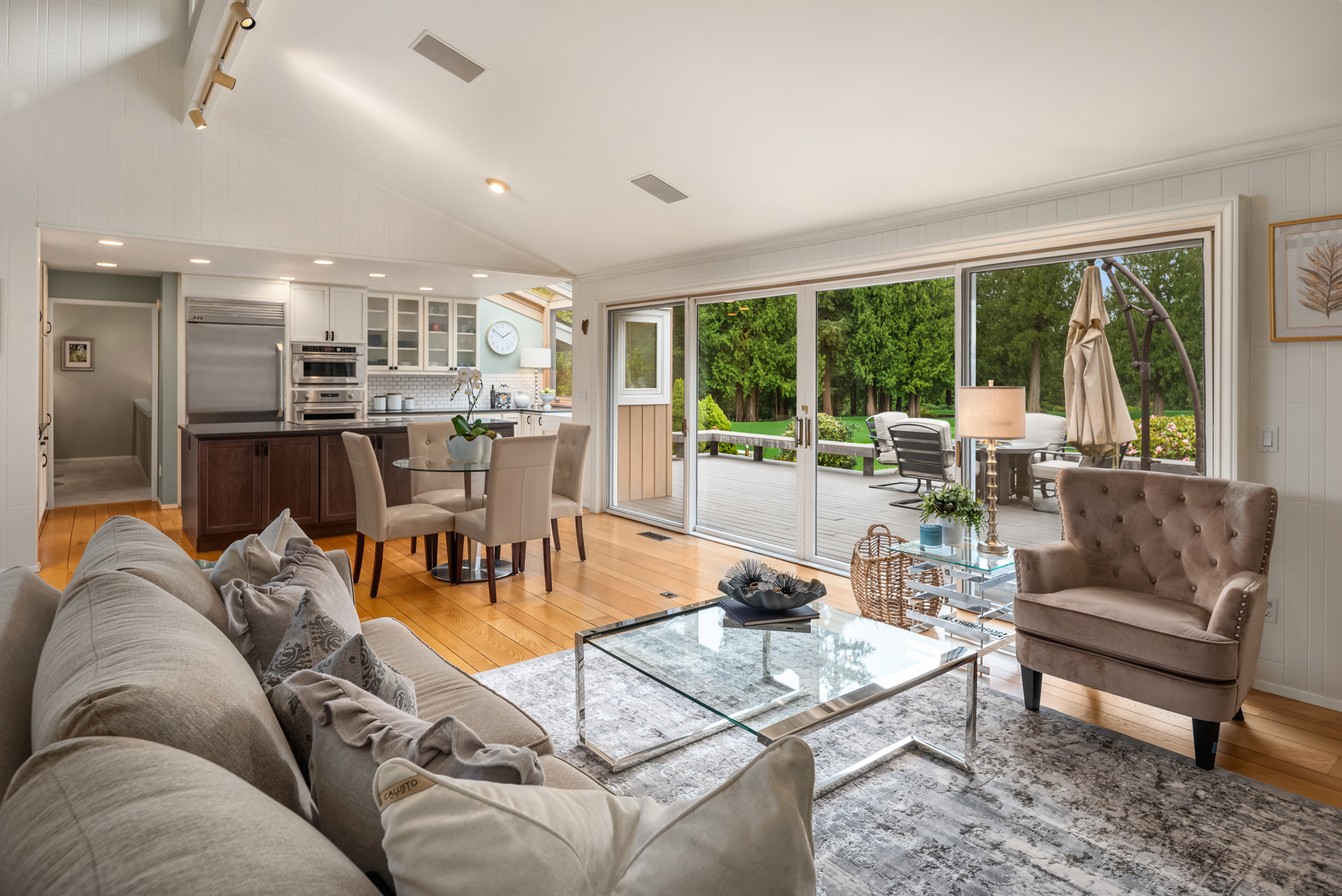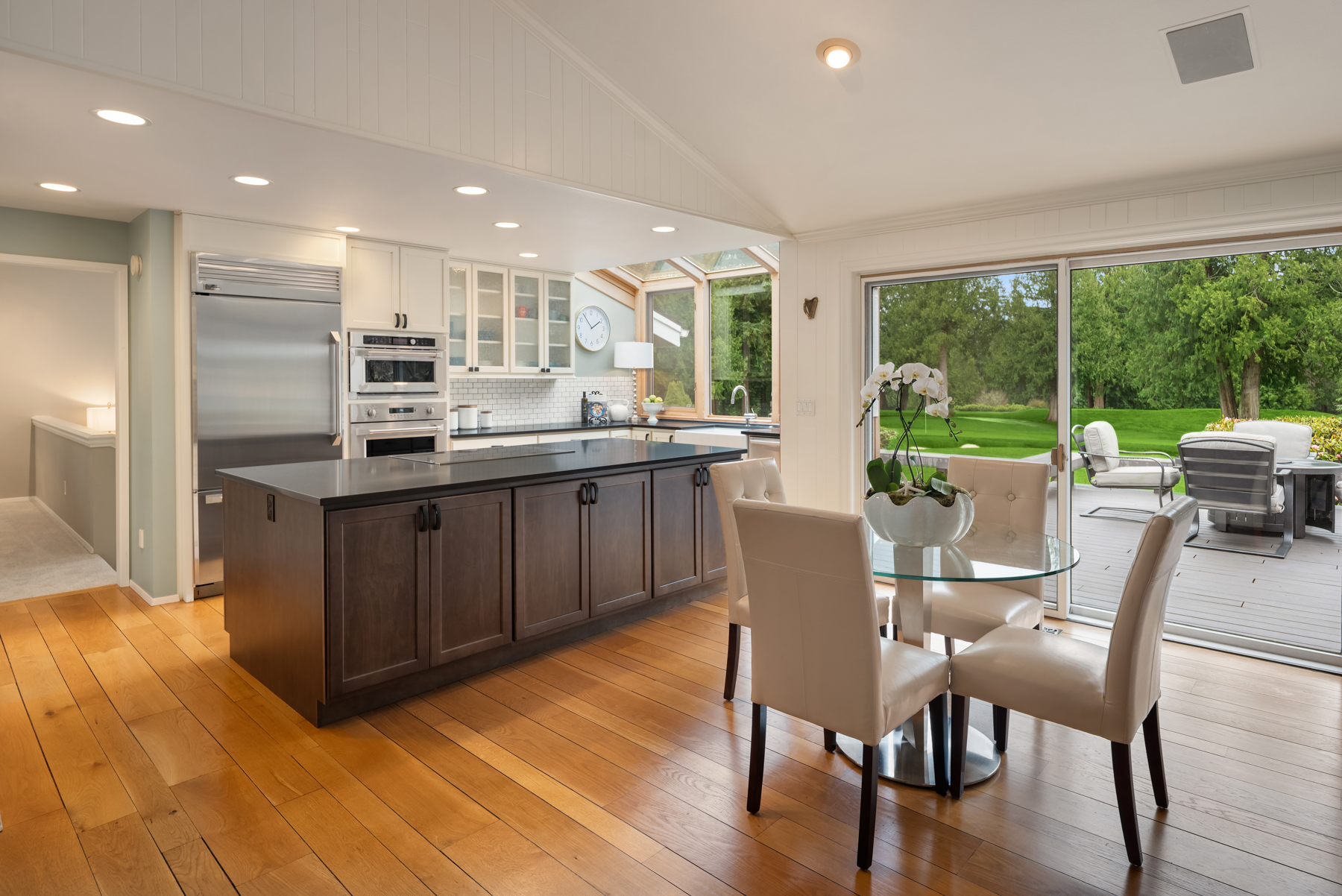 Imagine morning sunlight dancing through picturesque windows overlooking the fifth green of Sahalee’s renowned North Course. From the moment you enter, this exceptional residence welcomes you with vaulted ceilings in the formal dining room that seamlessly flow into an elegant living room, complete with a warm fireplace and sweeping golf course views.The main level offers refined comfort and effortless living, featuring an open-concept family room that blends beautifully with a designer kitchen. An expansive center island, stainless steel appliances, and walls of windows showcase serene, lush surroundings that create a tranquil, nature-filled backdrop. Vaulted ceilings, rich hardwoods, and a striking brick fireplace continue throughout, creating an inviting space ideal for both entertaining and everyday living.Retreat to the luxurious main-level primary suite, showcasing custom-built-in bookcases, a wardrobe dresser, cozy fireplace, and a spacious walk-in closet. Step out onto the expansive deck to enjoy peaceful mornings with a cup of tea. The spa-inspired primary bath features dual sinks and a walk-in shower. Two additional generously sized bedrooms with ample closet space complete the main floor. Upstairs, discover a versatile bonus room with a wet bar, an inviting reading nook with built-in bookcases, and a fourth bedroom perfect for guests. This level also includes a full bath with a jetted tub and a private sauna, offering a relaxing retreat within your own home.The backyard features an incredible expansive deck designed for unforgettable summer gatherings, peaceful mornings, and evenings spent overlooking the golf course. Enjoy watching golfers pass by while being surrounded by curated gardens that create a vibrant and private retreat. Year-round beauty unfolds through mature landscaping, offering a sense of tranquility in every season. Ideally located near Redmond, you’ll enjoy convenient access to the light rail, Microsoft, and everyday essentials, including Trader Joe's and Metropolitan Market. This home captures the lifestyle you’ve been searching for, where comfort, community, and connection come together beautifully.