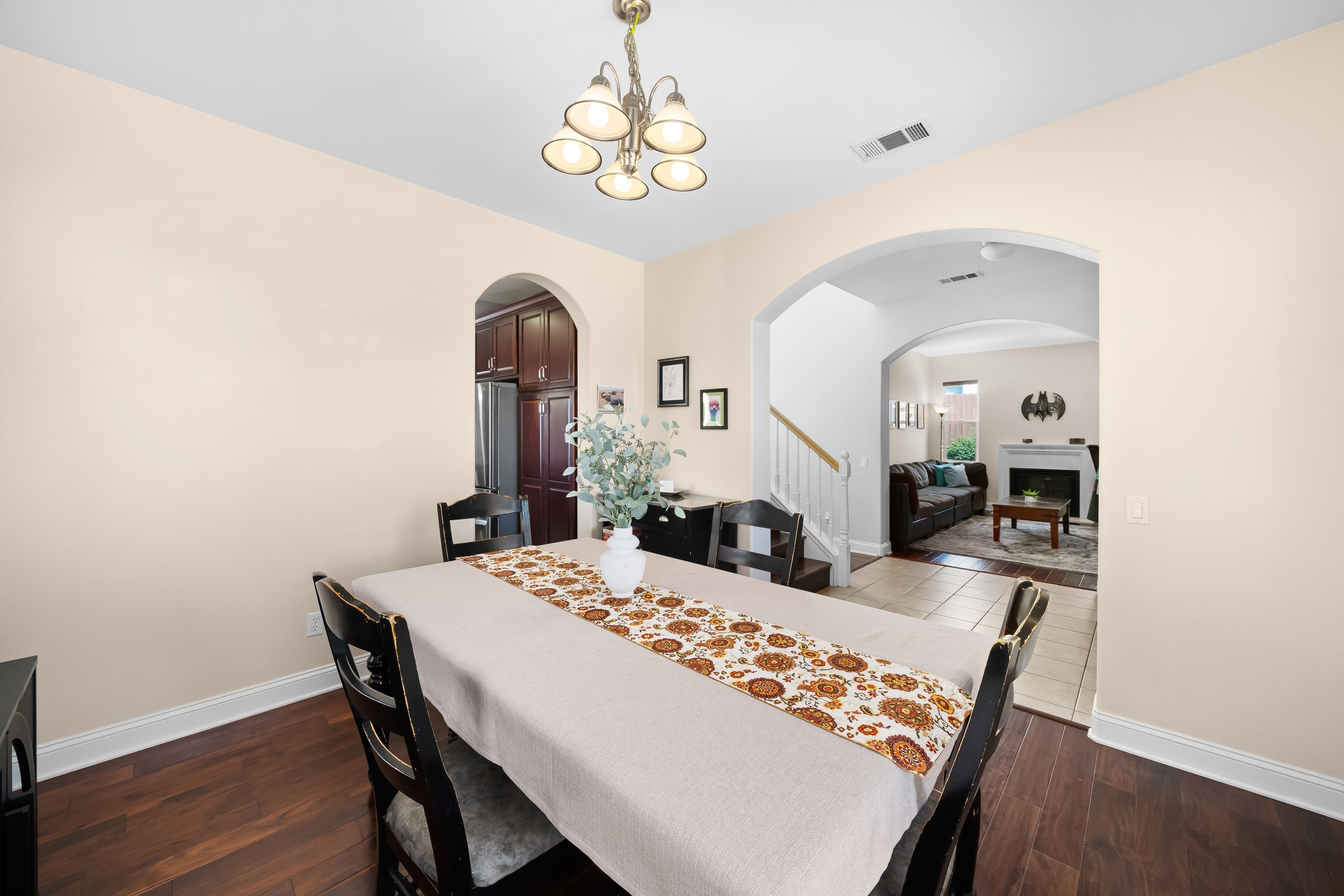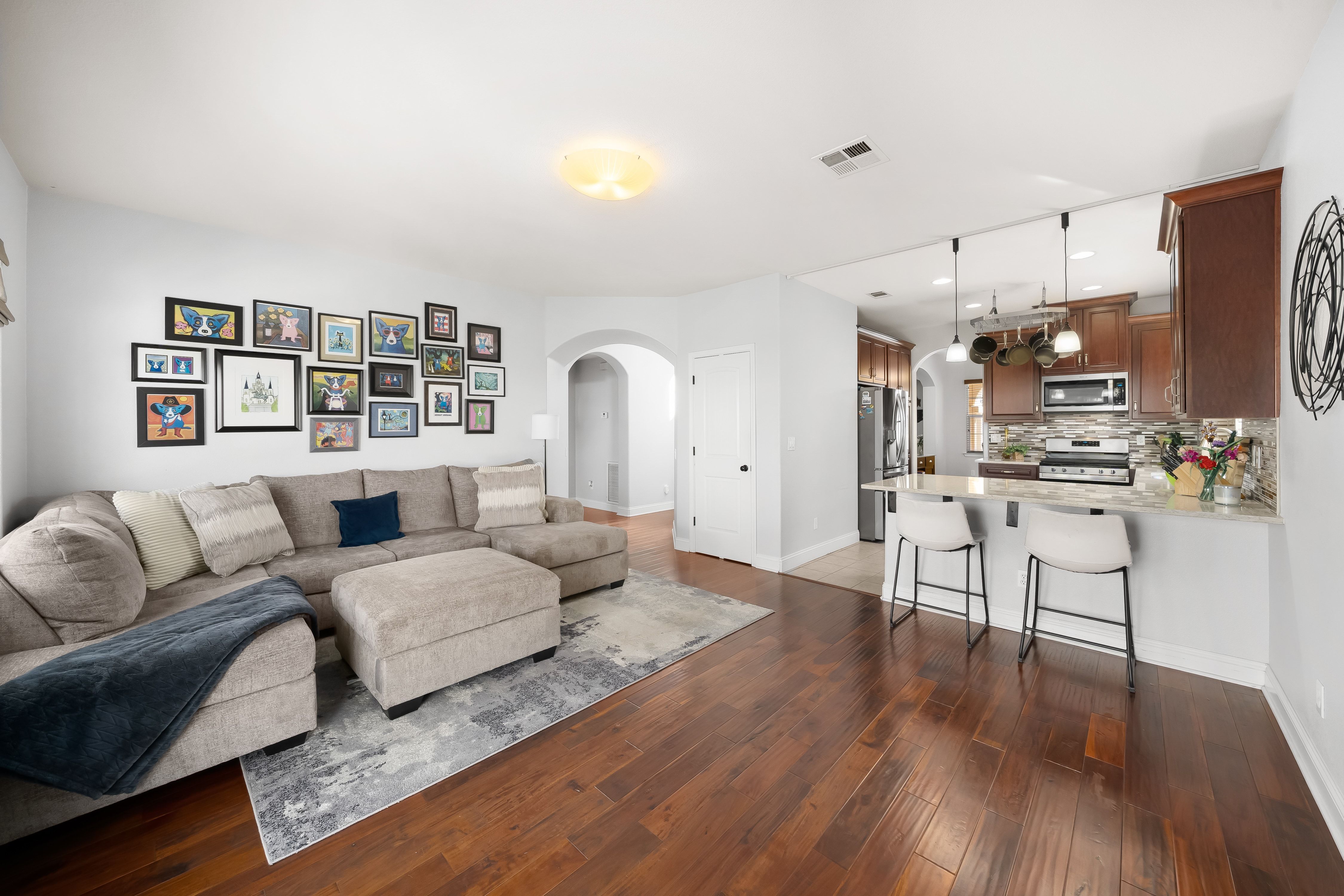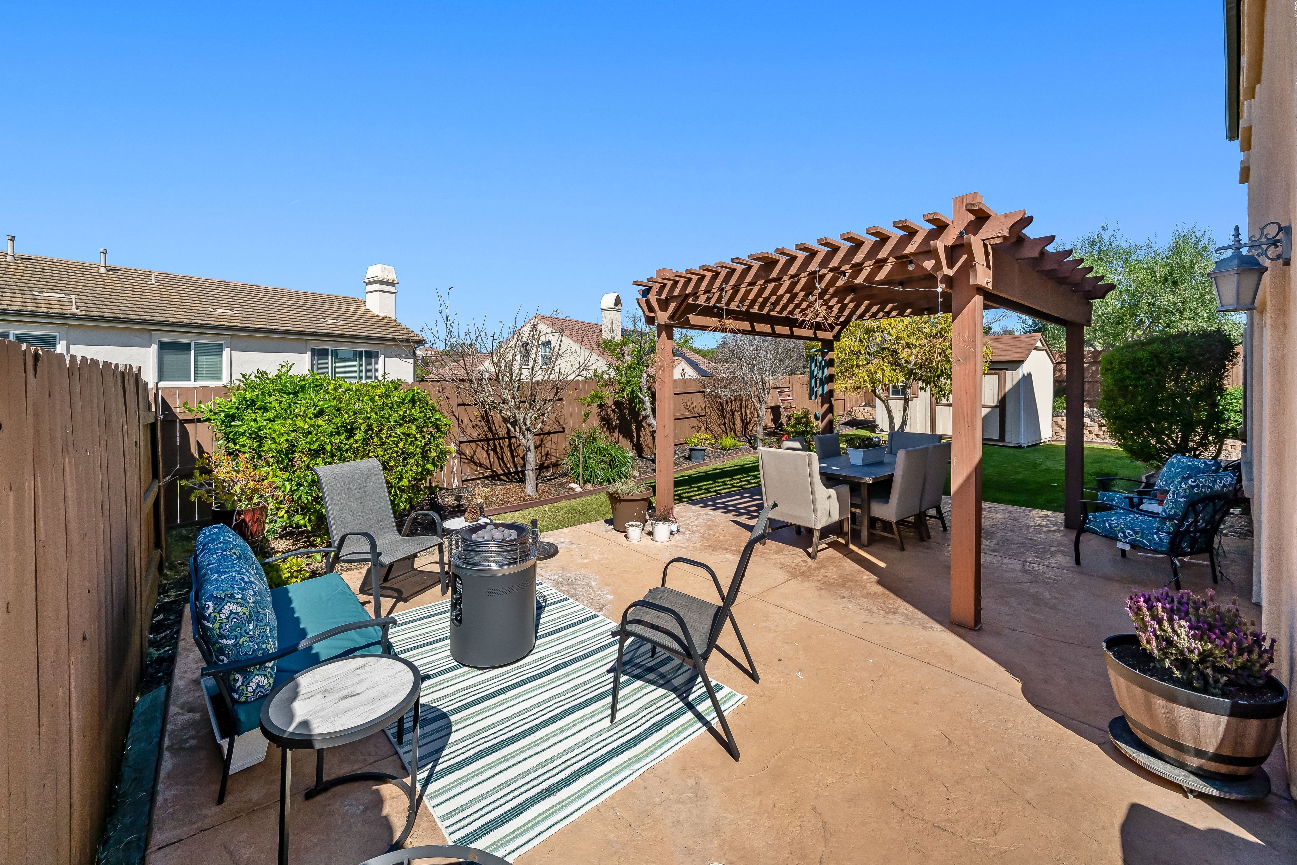 Thoughtfully designed to offer a refined blend of comfort, flexibility, and style, this property is ideally positioned to embrace the Central Coast lifestyle, with convenient access to surfing at Jalama Beach, hiking at La Purisima Mission State Historic Park, golf at the Mission Club, and renowned wine tasting in the Santa Ynez Valley. Situated on a 7,405 square foot lot, the residence offers 2,320 square feet of living space, featuring four bedrooms—including primary suites on both levels—and four bathrooms, ideal for multi-generational living and guests. The inviting floor plan balances formal and casual spaces, enhanced by engineered wood flooring throughout much of the main level and an abundance of natural light. The living room is centered around a gas fireplace with a pre-cast concrete surround, creating a warm and welcoming setting, while the formal dining room is highlighted by a hanging fixture, ideal for gathering around the table with friends. The comfortable family room features built-in media cabinetry and opens to the rear yard, creating a seamless indoor-outdoor connection. Perfect for creating your favorite recipes, the gourmet kitchen showcases quartz countertops with a mosaic backsplash, a ceiling-mounted pot rack, and a package of quality appliances, including a Whirlpool five-burner gas range, KitchenAid dishwasher, Whirlpool microwave, and LG smart refrigerator. A breakfast bar with attractive pendant lighting provides a casual dining space. The private main level primary suite offers a walk-in closet and a luxe bath with soaking tub, tiled shower, and dual sink vanity with a mosaic liner detail. The upper level includes a second primary suite with a walk-in closet and bathroom with soaking tub, tiled shower, and dual sink vanity, along with two additional secondary bedrooms conveniently located adjacent to a well-appointed full bath. Additional highlights include window coverings, a laundry room with a Maytag washer/dryer, upper and lower cabinetry, and a sink, as well as a two-car garage with 220-volt service and an EV charger. The rear yard features a stamped concrete patio, portico, lush lawn, fruit trees, flagstone walkway, and a garden shed, offering an amazing setting for weekend BBQs and relaxation. Community amenities include a clubhouse, pool and spa, tennis courts, multi-use sports fields, playgrounds, walking paths, and fitness stations.