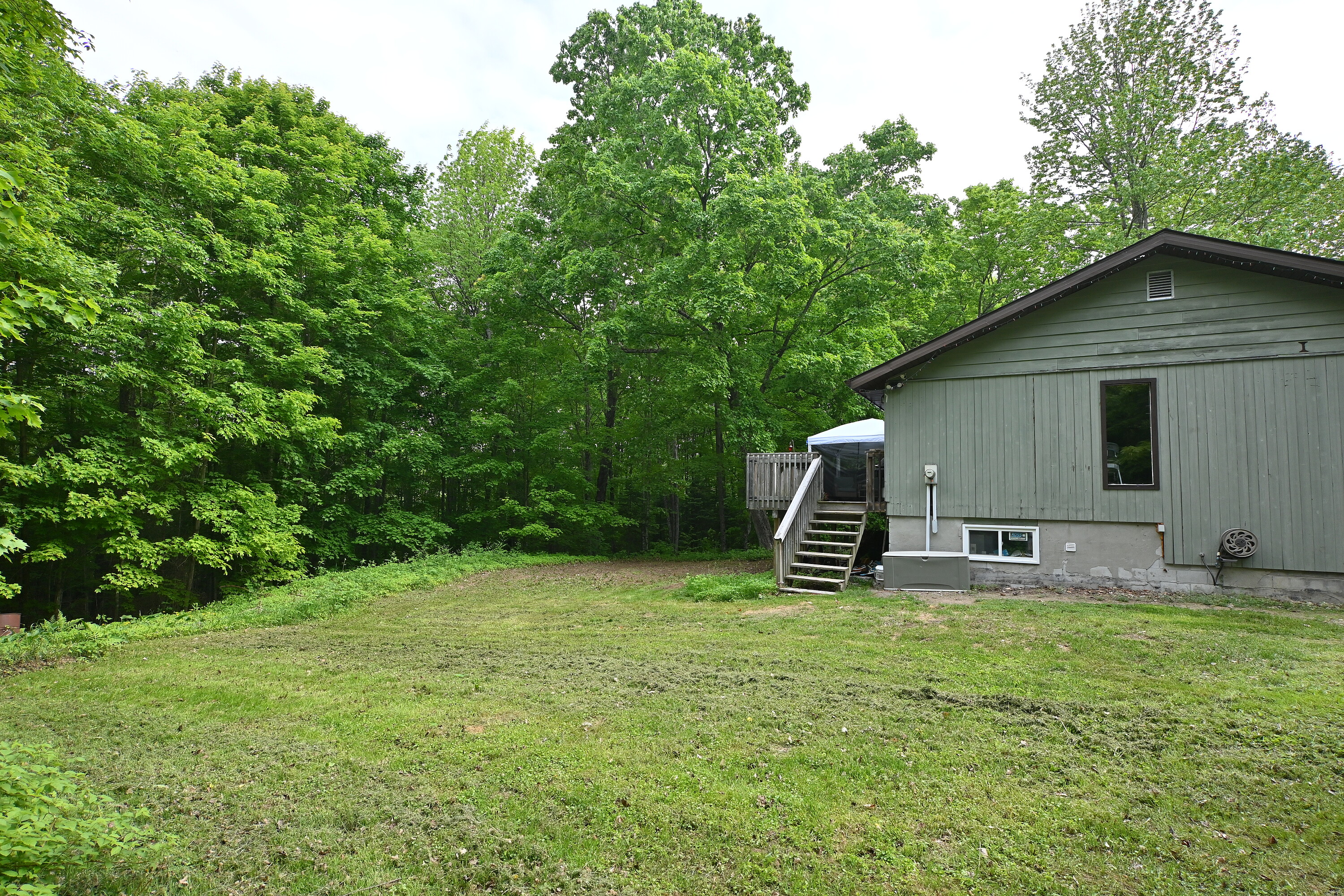 Looking for a property with a little bit of privacy but still close enough to town? Set back from the road on a 1.5 acre lot sits this three bedroom, two bathroom home with over 1600 square feet of living space on two levels. The primary rooms offer up an updated kitchen, dining area and large living room with wood burning fireplace with two decent sized bedrooms and your main bath completing the main floor of this comfortable house. The lower level offers up another large bedroom with ensuite bath and walk in closet and office and a small family room. The exterior of this home has plenty of open area and is surrounded by mature forest. Miller Drive is a dead-end road leading only to a number of seasonal and year-round cottages. Deeded access to a shared parcel with launch on Harris Lake and close enough to plenty of other lakes. All this and less than 15 minutes to all that Parry Sound has to offer.