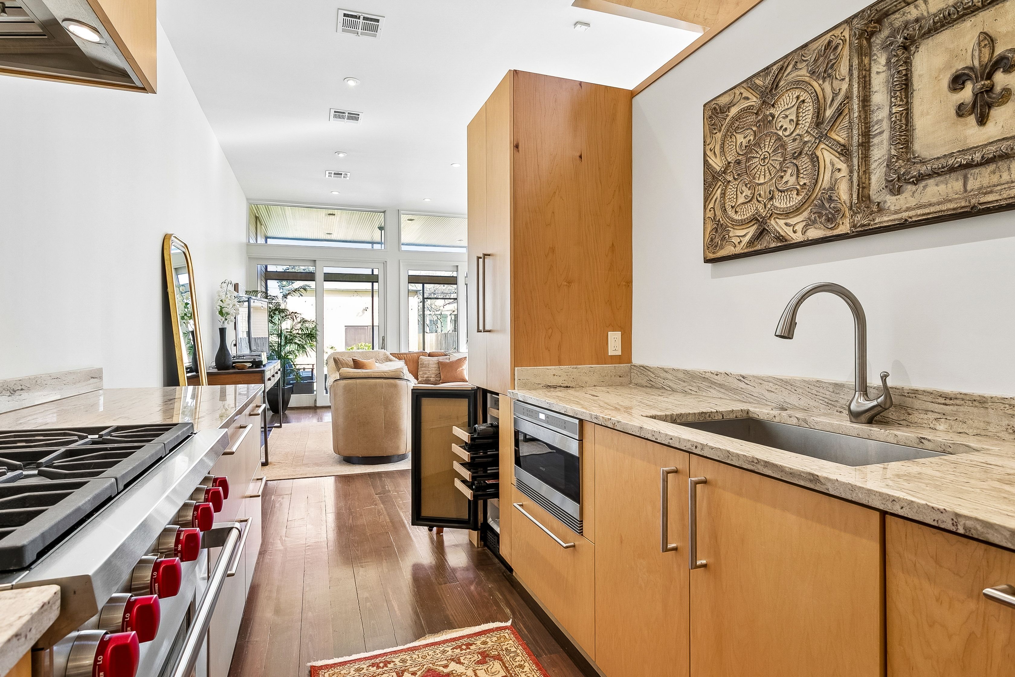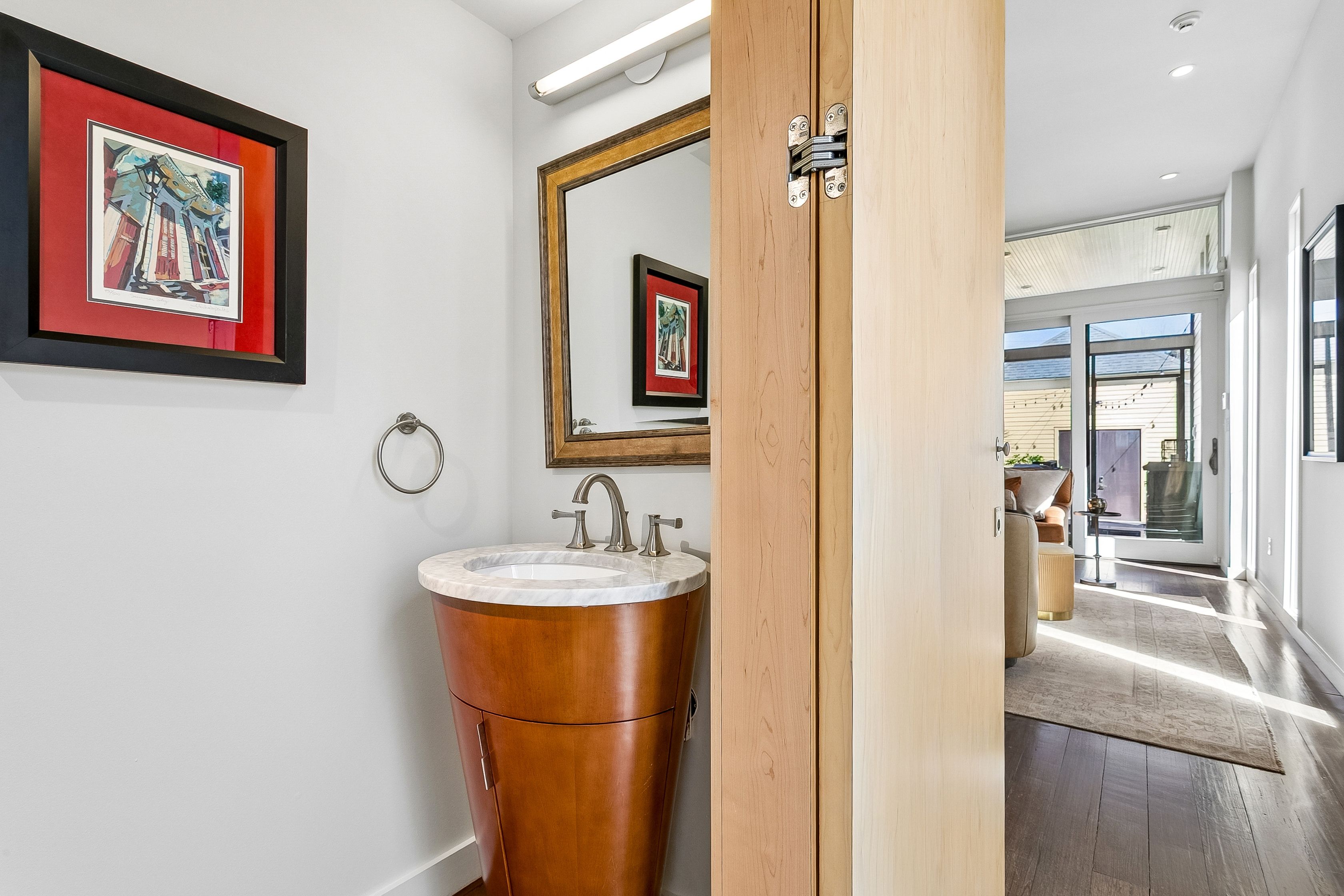 Camelback cottage near Esplanade Avenue, City Park, and Bayou St. John, reimagined through a thoughtful renovation and addition.The original front of the home remains intact, while the interior opens into a more expansive and contemporary layout beyond. High ceilings, exposed brick, and original details transition into clean lines, custom cabinetry, and integrated storage that define the newer spaces.The main living area extends to a screened porch overlooking the yard, creating a natural connection between indoor and outdoor living. Detached garage with storage and a half bath.Three bedrooms and two and a half baths, arranged with an emphasis on light, openness, and functionality.Set just off the Fairgrounds and Jazz Fest, in a part of the city that draws music lovers and locals alike, with a collection of long-established neighborhood restaurants, cafés, and everyday conveniences just steps from the front door.