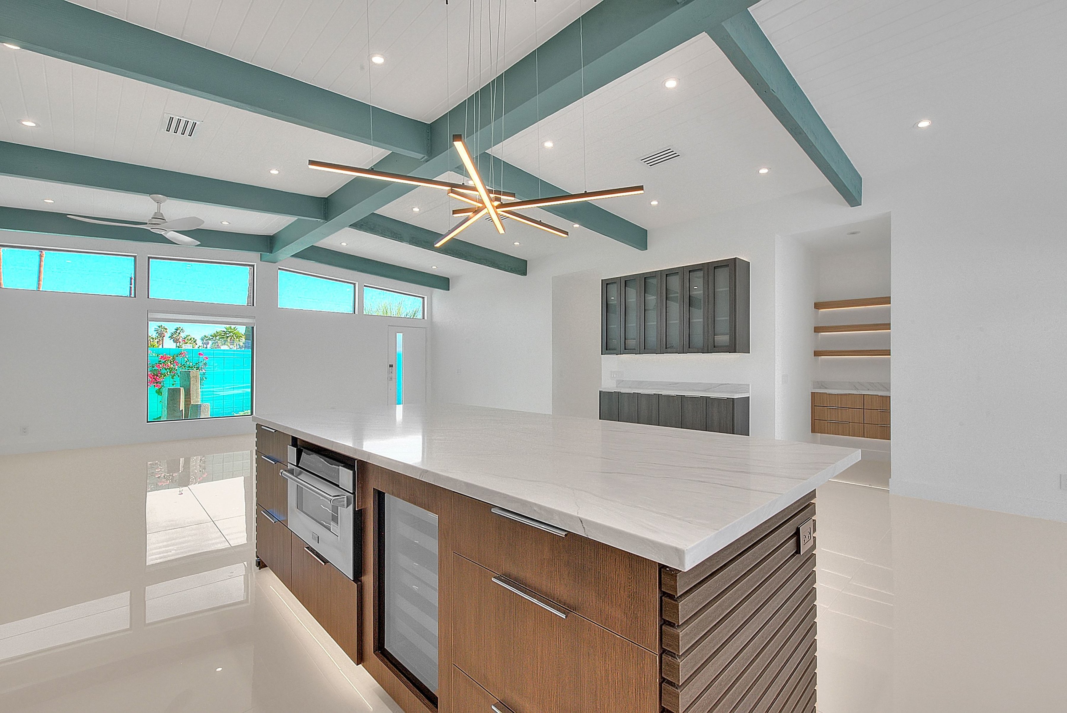 Step inside this gorgeous home and prepare to be impressed. This reimagined William Krisel-designed Alexander beauty truly has that WOW factor. Extensively remodeled and expanded while preserving its iconic mid-century modern architecture, this residence blends architectural pedigree with contemporary desert luxury. Walls of glass and folding patio doors frame dramatic mountain views and seamlessly connect the open-concept interior to the private resort-style backyard featuring a new pool with tanning shelf, spa, outdoor kitchen, and firepit. Highlights include a fully appointed attached ADU, RV parking with hookups, two-car garage, tankless water heater, whole-house water filtration, wine refrigeration, fee-simple land, and no HOA. This rare, turnkey Krisel masterpiece is ready for immediate enjoyment. Call for your private showing.