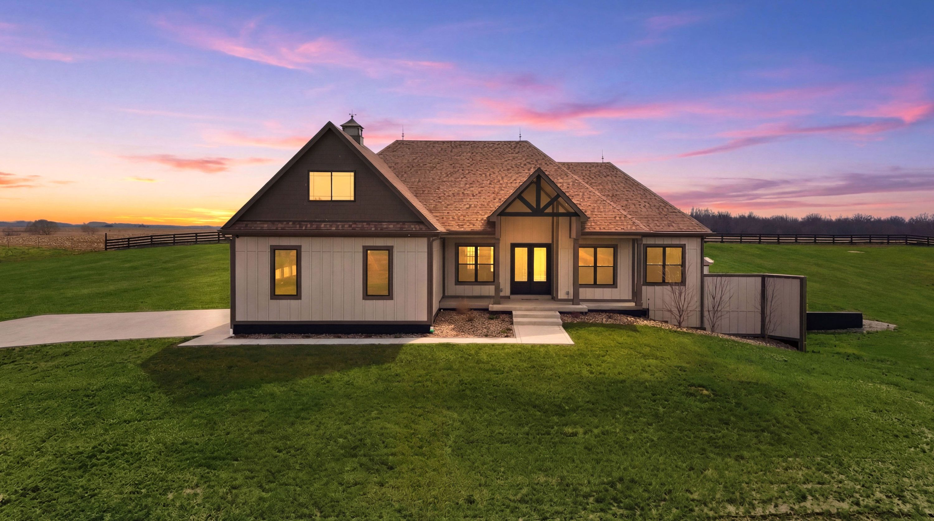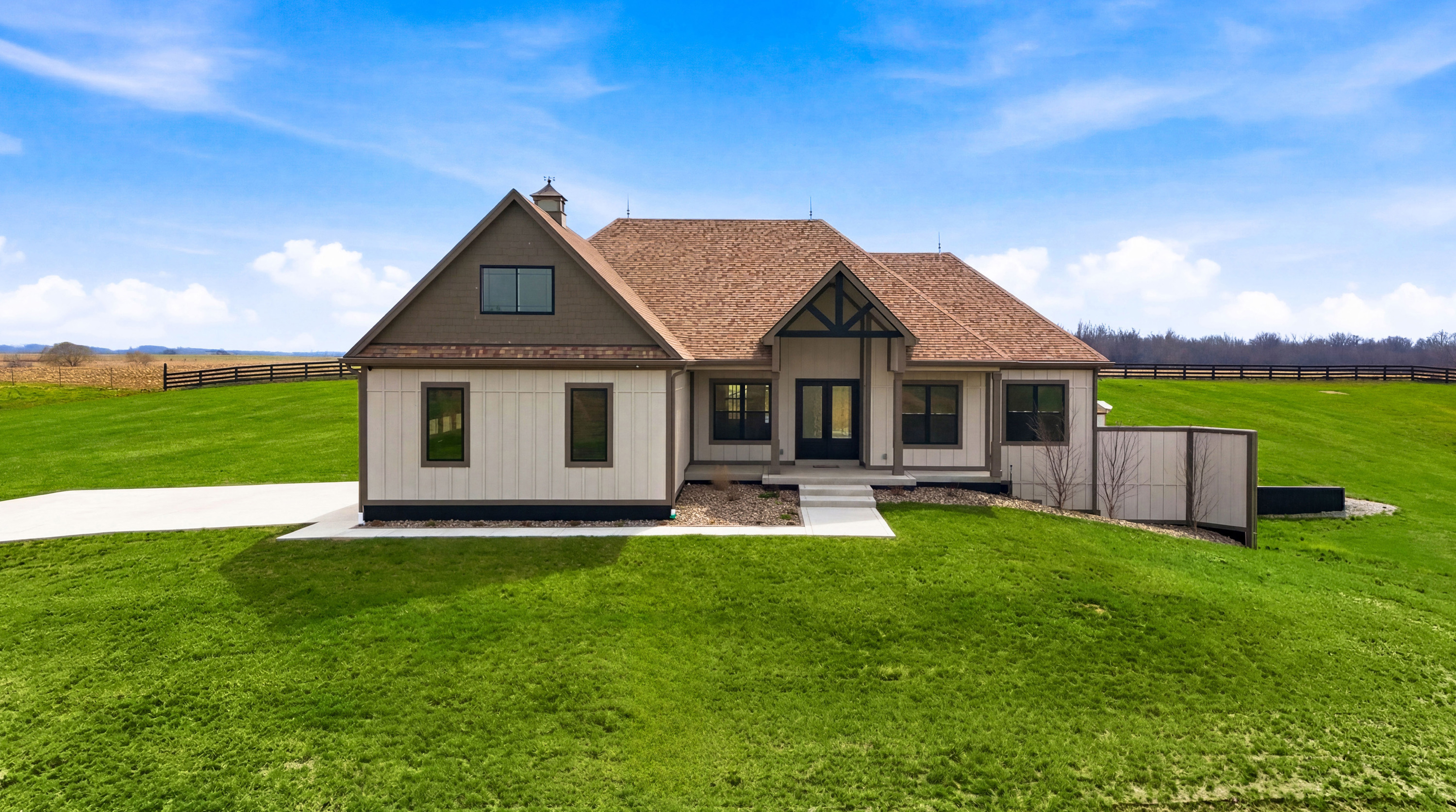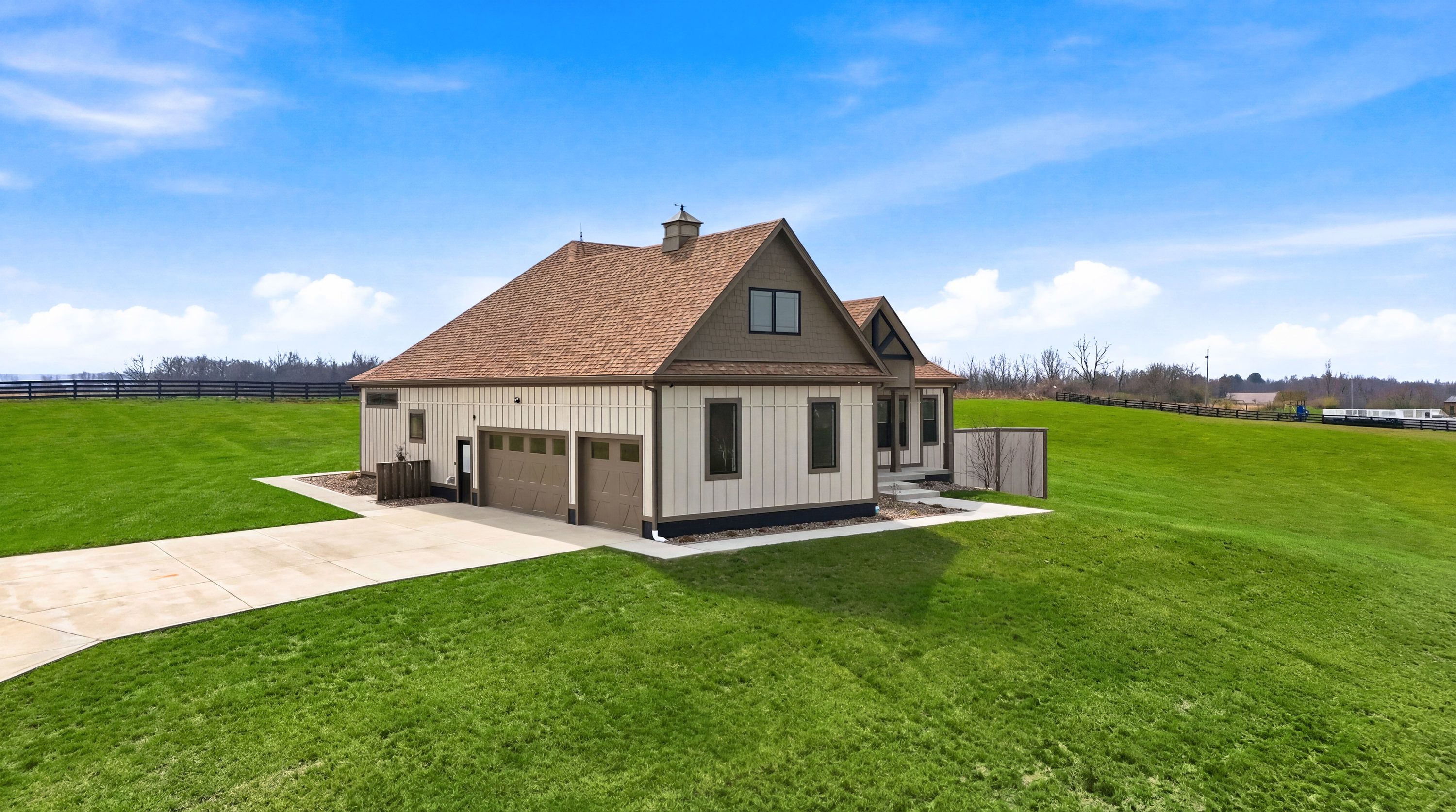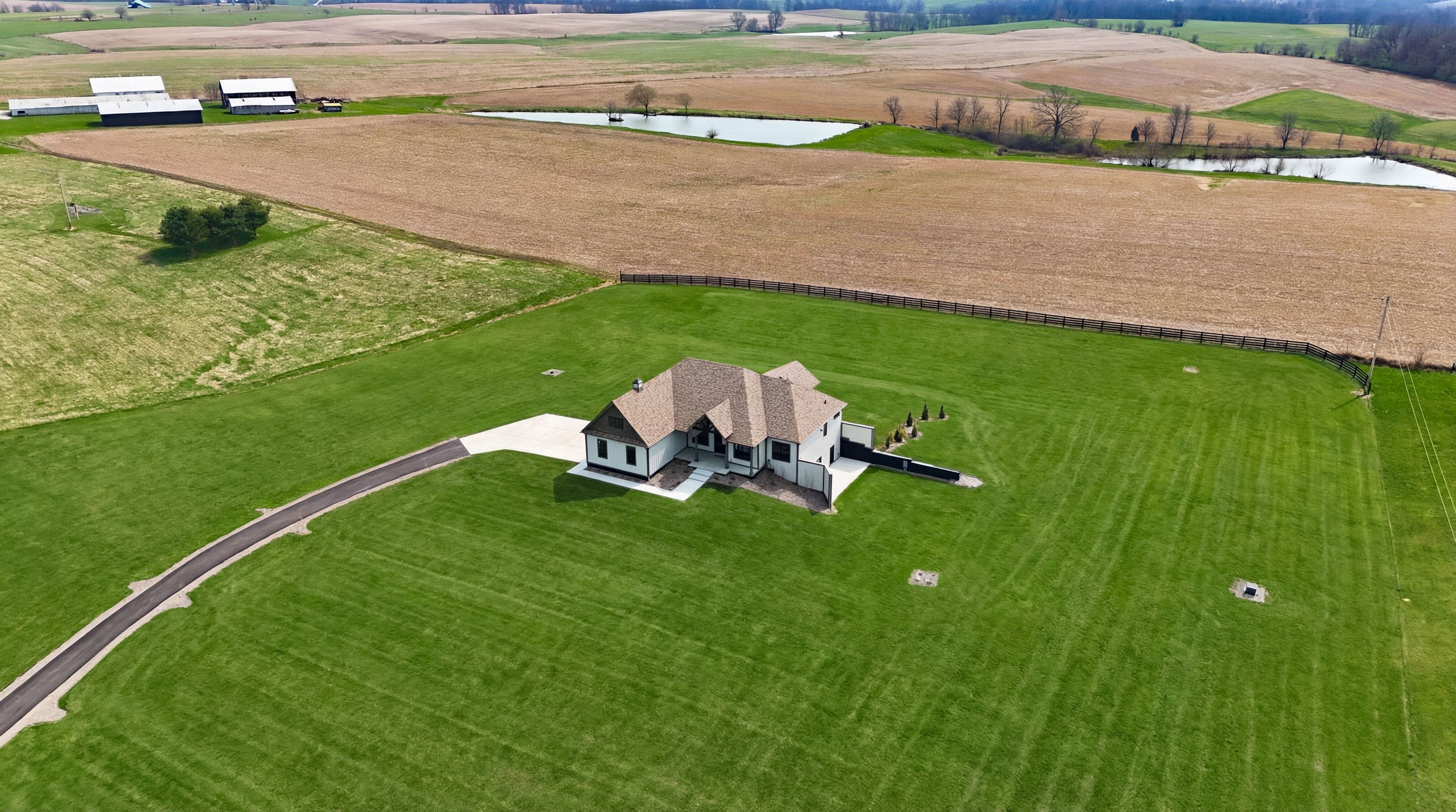 Have you ever wished for an inspired, elevated residence with all the appointments of a sleek, sophisticated urban home - set amid the bucolic beauty of Kentucky's horse and bourbon country? Look no further. This is it! Thoughtfully designed and constructed to the highest standards, this exceptional new-construction estate is set on five picturesque acres in Shelby County and offers a rare blend of modern luxury and countryside tranquility. With over 6,250 square feet of impeccably finished living space, this 5-bedroom, 4.5-bath walkout ranch delivers effortless single-level living while easily accommodating multigenerational living or unparalleled guest quarters. Upon entering, the scale and design features will absolutely take your breath away. From the engineered European white oak flooring to the soaring ceilings and all of the custom trim, designer lighting and elements in between you will be impressed. An entertainer's dream - the custom chef's kitchen has 35+ ft of quartz countertops, abundant cabinets, high end GE Monogram appliances, a beverage center and bar area and the all-important pantry. The open concept plan makes the dining room and great room blend seamlessly into the kitchen and bar area. A sleek 60" linear gas fireplace defines the accent wall across the great room. The owner's suite is one to be coveted, offering pastoral views, a spacious custom closet, and a spa-like en suite bath complete with dual vanities, walk in shower and soaking tub. It is just steps to the center of the home yet tucked away for ultimate privacy. The entire home has several smart and green home elements, including (but not limited to) Starlink Internet service, a hybrid HVAC system with 4 zones, spray foam insulation as well as rockwool insulation between floors, tankless water heater and recirculation, James Hardie Board siding, Lifetime Class 3 Roof covering and more. The lower level has a separate full kitchen, bedroom, full bath, media room and flex space. Outdoor living is equally well-considered, with a covered patio equipped with radiant heaters for cool evenings, a lower-level patio, a paved driveway with ample parking, an oversized three-car garage, and classic four-board horse fencing that beautifully frames the home's striking façade. The sunrises and sunsets at 4130 Vigo Road are nothing short of spectacular. Come for a visit - stay for a lifetime!