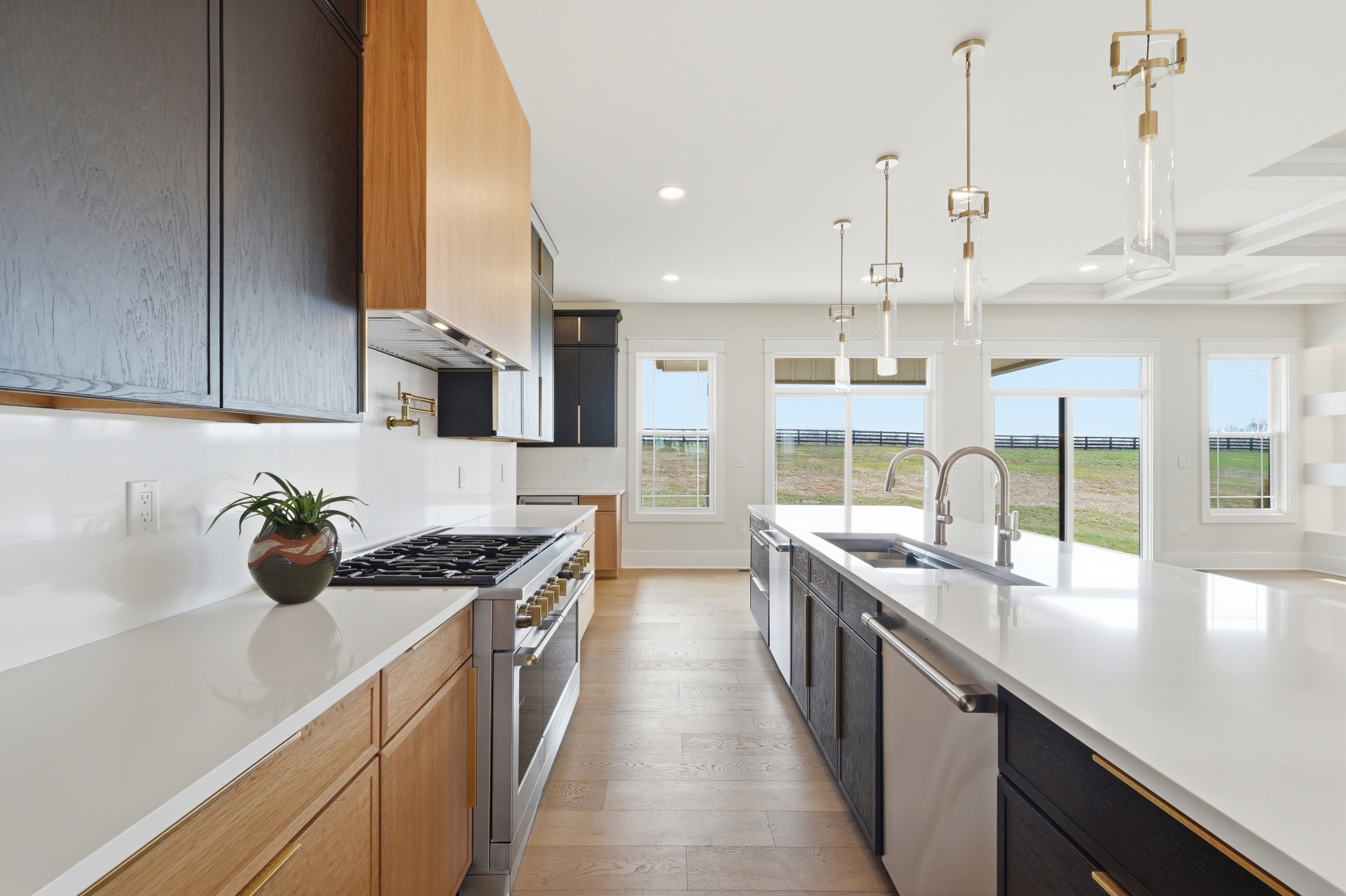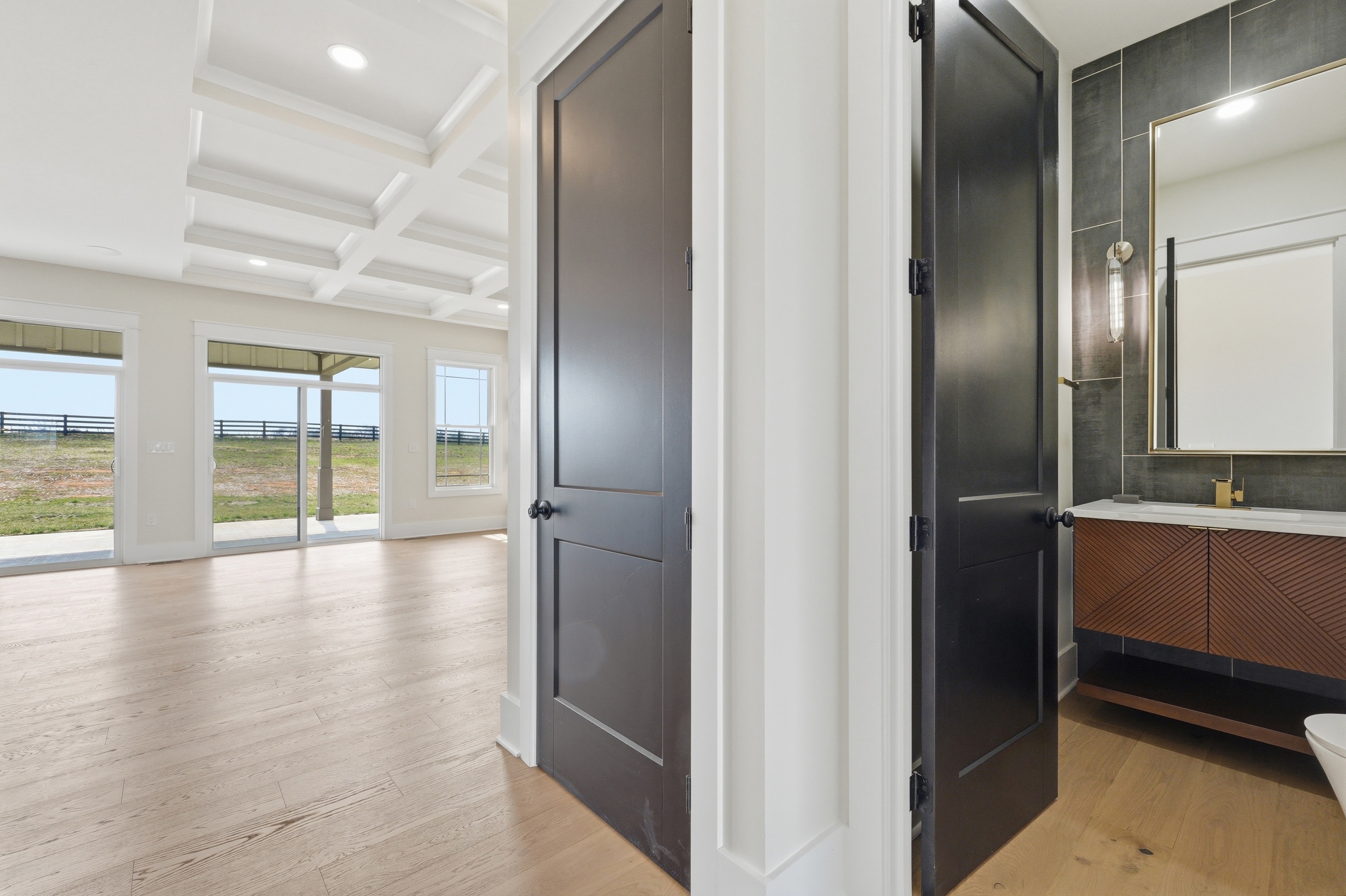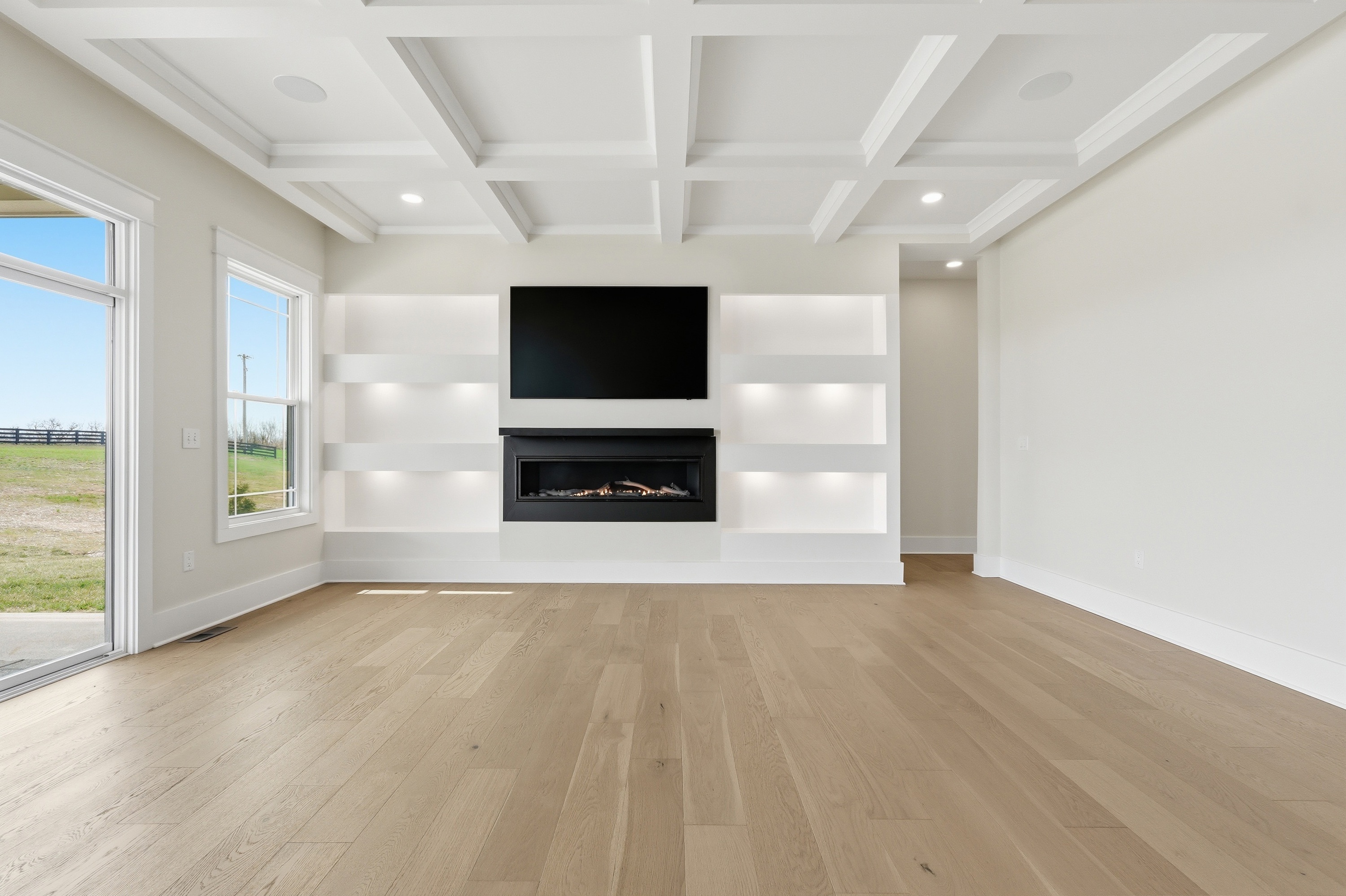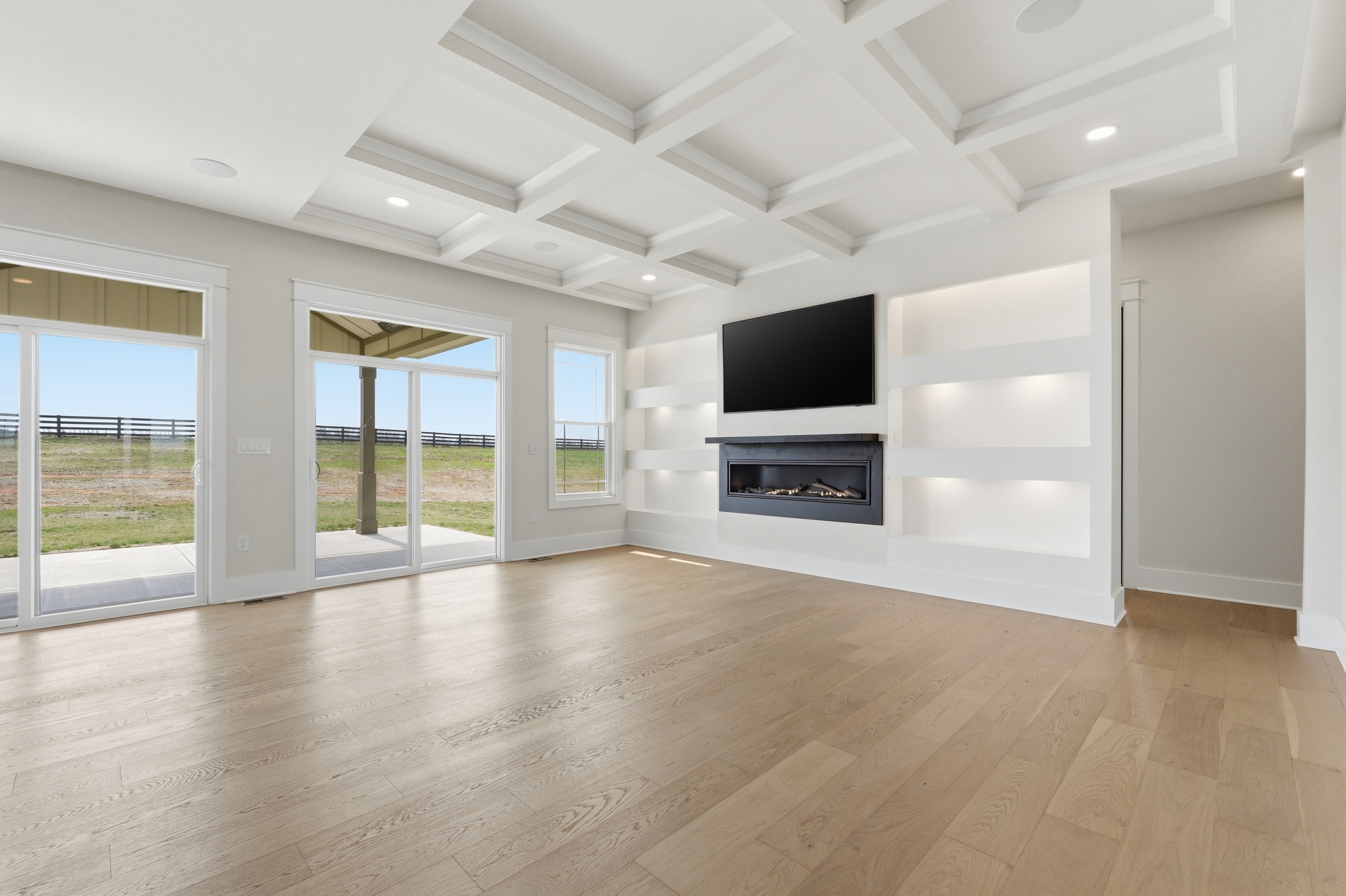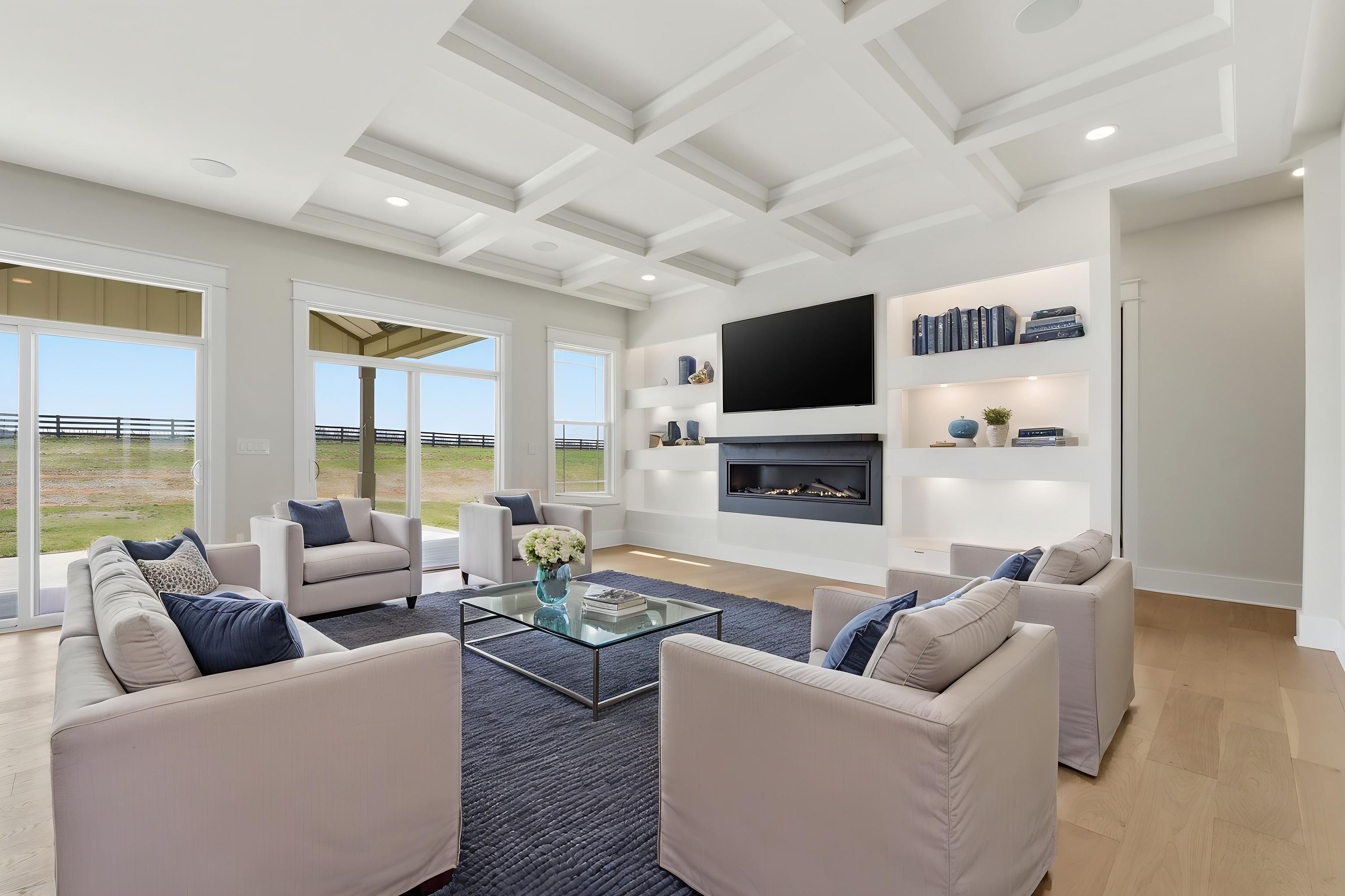 Have you ever wished for an inspired, elevated residence with all the appointments of a sleek, sophisticated urban home - set amid the bucolic beauty of Kentucky's horse and bourbon country? Look no further. This is it! Thoughtfully designed and constructed to the highest standards, this exceptional new-construction estate is set on five picturesque acres in Shelby County and offers a rare blend of modern luxury and countryside tranquility. With over 6,250 square feet of impeccably finished living space, this 5-bedroom, 4.5-bath walkout ranch delivers effortless single-level living while easily accommodating multigenerational living or unparalleled guest quarters. Upon entering, the scale and design features will absolutely take your breath away. From the engineered European white oak flooring to the soaring ceilings and all of the custom trim, designer lighting and elements in between you will be impressed. An entertainer's dream - the custom chef's kitchen has 35+ ft of quartz countertops, abundant cabinets, high end GE Monogram appliances, a beverage center and bar area and the all-important pantry. The open concept plan makes the dining room and great room blend seamlessly into the kitchen and bar area. A sleek 60" linear gas fireplace defines the accent wall across the great room. The owner's suite is one to be coveted, offering pastoral views, a spacious custom closet, and a spa-like en suite bath complete with dual vanities, walk in shower and soaking tub. It is just steps to the center of the home yet tucked away for ultimate privacy. The entire home has several smart and green home elements, including (but not limited to) Starlink Internet service, a hybrid HVAC system with 4 zones, spray foam insulation as well as rockwool insulation between floors, tankless water heater and recirculation, James Hardie Board siding, Lifetime Class 3 Roof covering and more. The lower level has a separate full kitchen, bedroom, full bath, media room and flex space. Outdoor living is equally well-considered, with a covered patio equipped with radiant heaters for cool evenings, a lower-level patio, a paved driveway with ample parking, an oversized three-car garage, and classic four-board horse fencing that beautifully frames the home's striking façade. The sunrises and sunsets at 4130 Vigo Road are nothing short of spectacular. Come for a visit - stay for a lifetime!