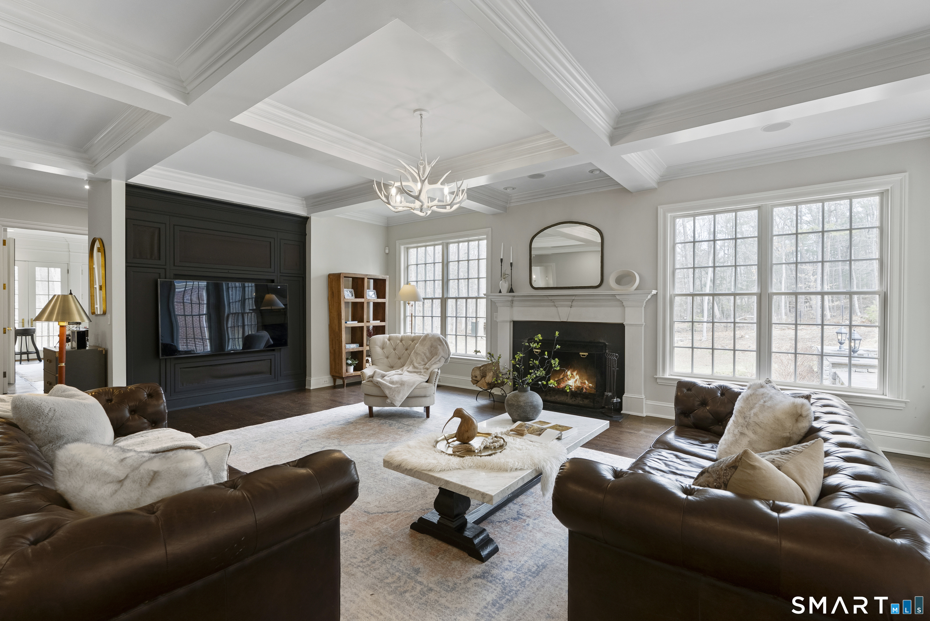 A luxury estate awaits on 6.7 private acres at the end of a quiet cul-de-sac. This remarkable Avon residence offers more than 10,000 square feet of refined living space designed for both elegant entertaining and everyday comfort. A circular driveway framed by stately pillars welcomes you to the residence, where a dramatic two-story foyer with sweeping staircases introduces the elegant interior. Newly installed hardwood flooring flows throughout the home, enhancing the warmth and continuity of the gracious living spaces. Thoughtfully designed rooms include a distinguished wood-paneled library with fireplace, elegant formal rooms, and expansive gathering areas filled with natural light. At the heart of the home is a beautifully renovated chef's kitchen, featuring premium appliances, custom cabinetry, and a striking cathedral window overlooking the surrounding landscape. The primary suite functions as a private retreat, complete with boutique-style custom dressing rooms and a luxurious bath. Additional bedrooms and living spaces offer flexibility for family and guests. The newly refinished walk-out lower level provides exceptional additional living space, including a recreation area and an additional bedroom ideal for extended guests, a nanny suite, or private accommodations. Outdoors, the property transforms into a resort-inspired setting with expansive stone patios, a stunning in-ground pool, and beautifully landscaped grounds that create remarkable privacy.