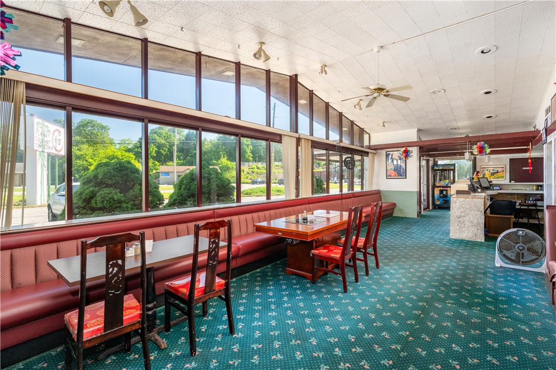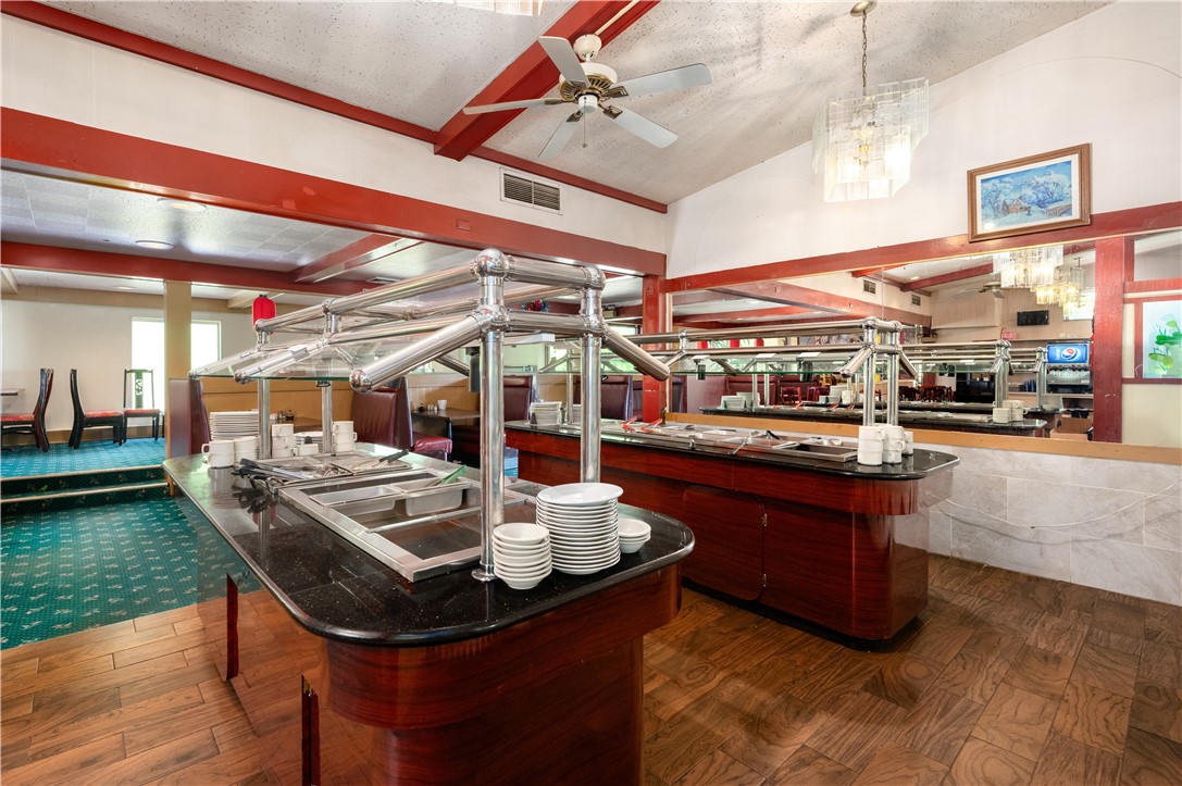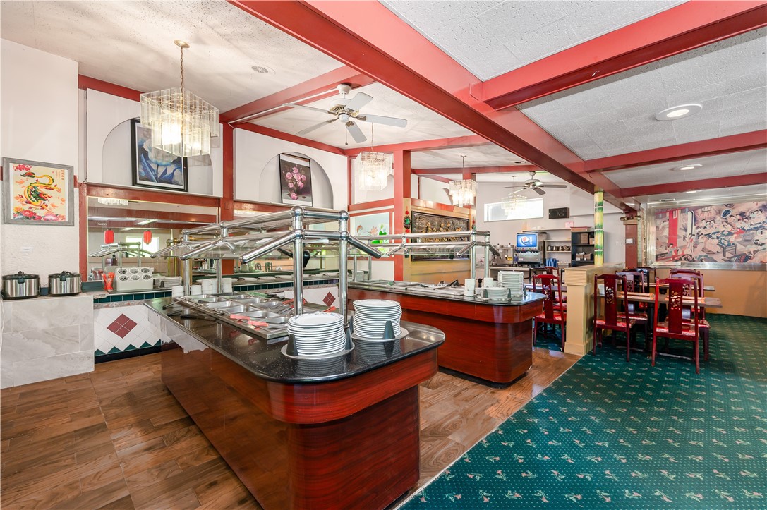 Excellent opportunity to have your own restaurant along a busy road. This restaurant can seat up to 120 people with ample parking. Large entrance area perfect for takeout and waiting area. This establishment has a large restaurant space that can be setup with three functional buffet stations or use the space for additional seating. Lots of room for Catering as well. There is a full basement underneath for additional storage or office area. Large outside sign in front for good visibility.