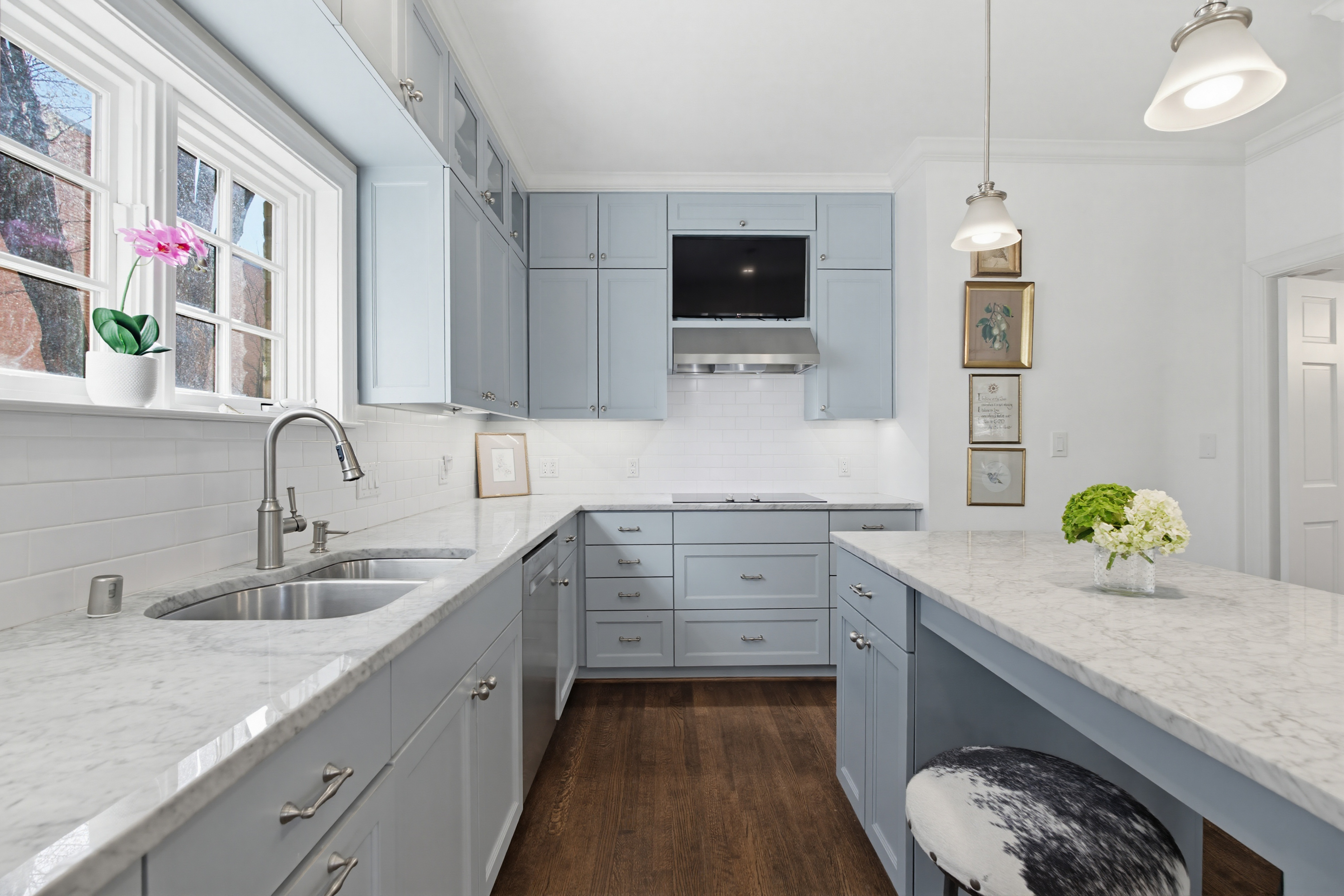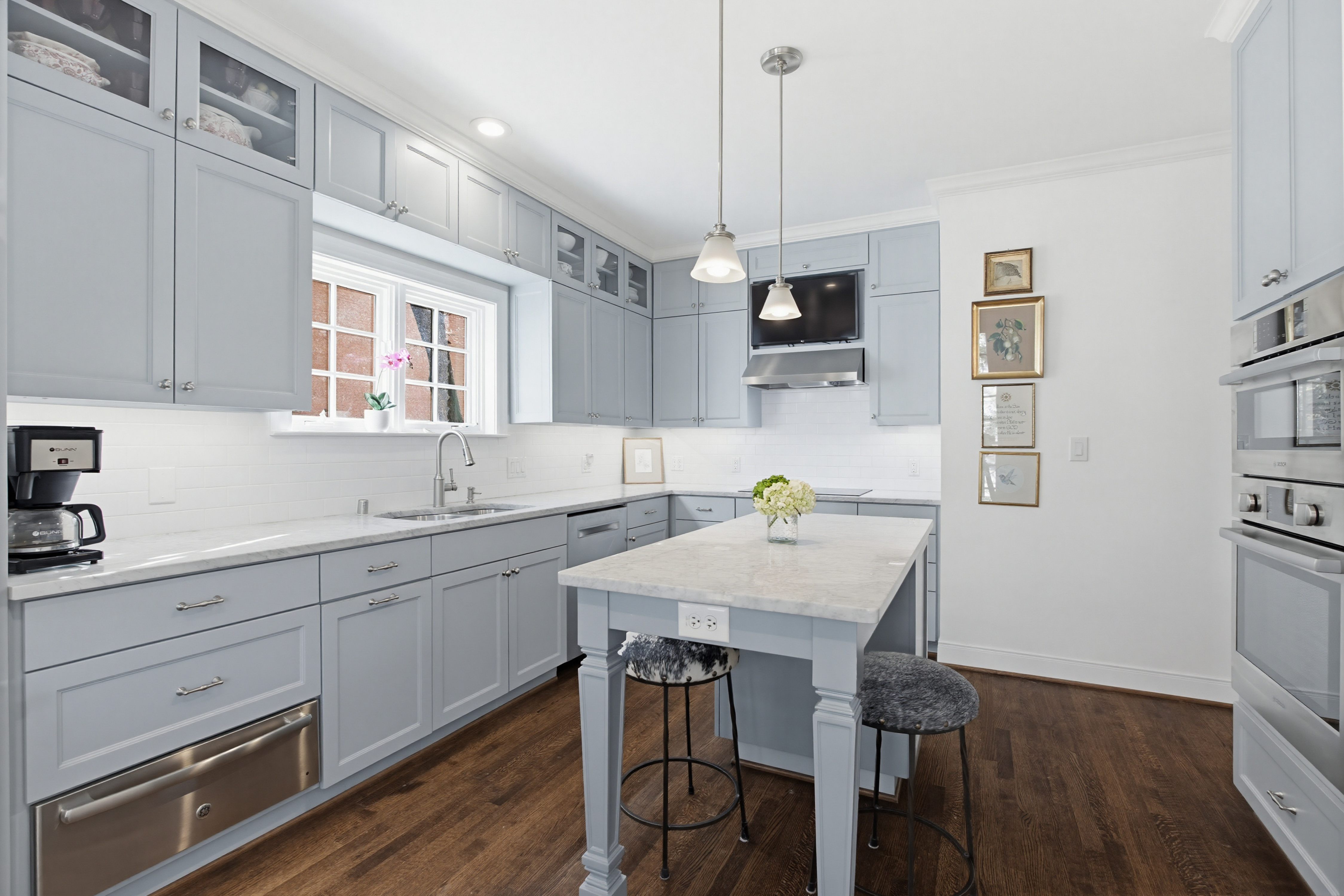 What an opportunity to own an exceptional front corner one-story residence in the coveted nineteen-unit Savoy Condominium in Highland Park and renown Highland Park ISD. On a tree lined street, welcome to a home with traditional charm, modern updates, and thoughtful design. A convenient location within walking distance of shops, dining, and Whole Foods Market, enjoy living in the Town of Highland Park with exceptional city services, parks, and library plus near iconic Highland Park Village and minutes from Downtown Dallas and Love Field.With the largest floor plan in one of only six front corner units in The Savoy, this 2,033-square foot home has a smartly curated floor plan that provides effortless living and entertaining. The open design with hardwood floors offers an abundance of natural light throughout with tall windows and views on three sides. The private covered front terrace balcony in the treetops is accessed off a gracious living room with fireplace that flows into the dining room with silver closet and dry bar with quartz counters, glass shelves, cabinets, and gold penny round backsplash. A “cook’s” kitchen with kitchen island seating features Carrara marble countertops (sealed with Tuffskin), subway tile backsplash, solid wood cabinetry, stainless Bosch appliances including dishwasher, electric cooktop with double oven/microwave combination, GE warming drawer, and French door Frigidaire refrigerator, custom pantry, and utility closet.The spacious primary bedroom enjoys a sitting area and large walk-in closet with built-in cabinets. An ensuite spa-like bath is a delight with designer wallpaper, quartz dual vanities with shelves, drawer and cabinets; walk-in shower with multiple shower heads and glass door; and modern lighting and fixtures. Two more updated bedrooms (one with ensuite full bath), and a half bath complete the great floor plan. The third bedroom can also be a study or home office. Large closets provide good storage space in addition to two assigned storage closets, one outside the front door and one in garage.The many amenities at The Savoy make living easy! The HOA monthly dues of $1,575 cover all water and gas utilities plus all management fees, management of structure, insurance, and security with shared areas including two serene courtyards, one with fountain, and beautiful lawn and landscaping maintained by Lawns of Dallas. The main lobby and adjacent mail room are nicely furnished by the Homeowner’s Association, and each homeowner has a security fob providing access for courtyard door, elevator, and garage. Each home has two assigned, wide parking spaces in the underground garage. A convenient elevator accessed right outside the courtyard door from the front lobby is dedicated for only the front units and opens directly outside each unit’s front door as well as to downstairs garage parking and storage. Enjoy “lock and leave” ease of living in lovely Highland Park!