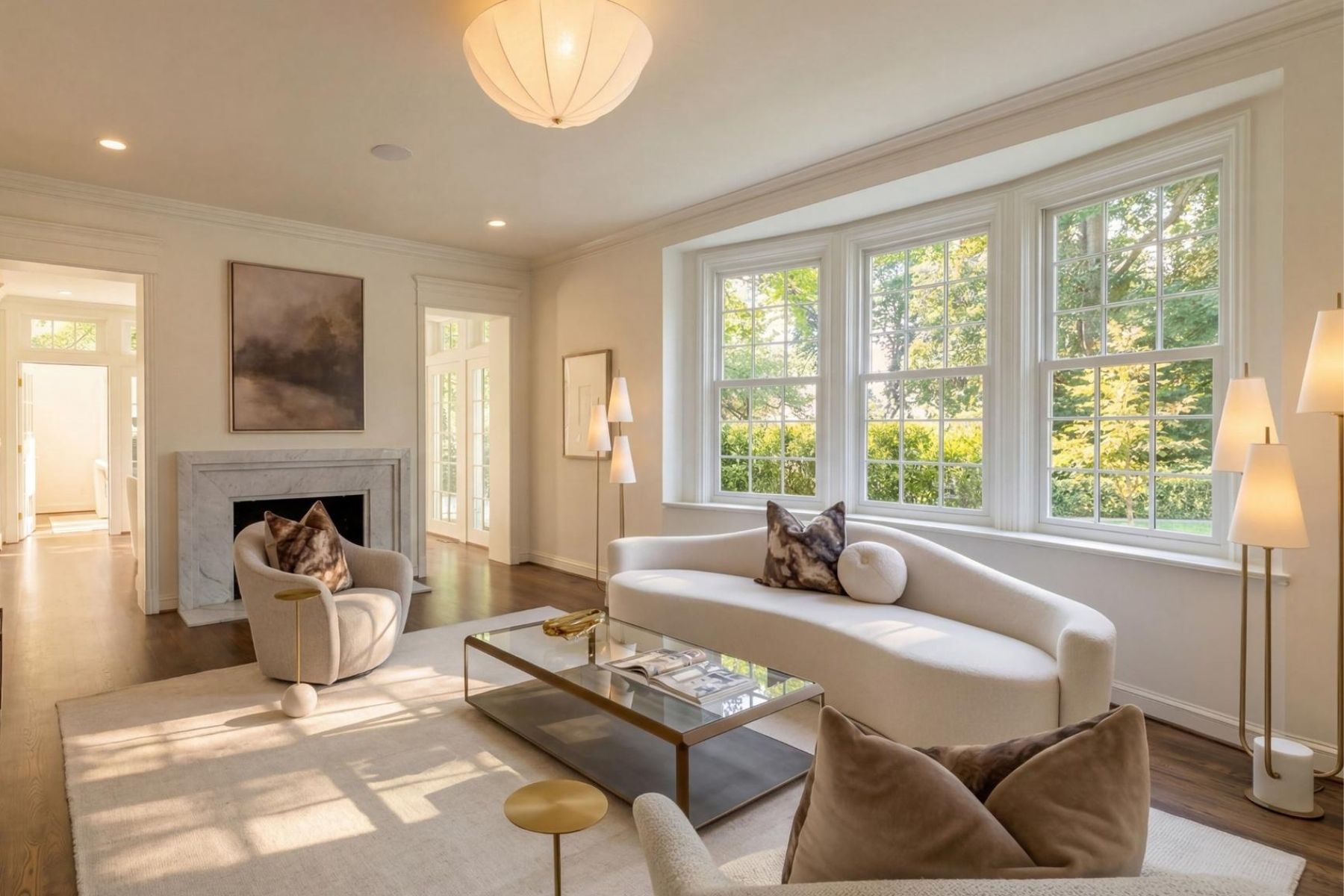Gracefully set on a beautiful parcel in the heart of coveted Massachusetts Avenue Heights, 2825 McGill Terrace NW is a classic 1929 home reimagined with sumptuous contemporary elegance, all while honoring its timeless ethos. A visionary masterpiece by Kent Construction & Development, this residence is the result of a meticulous collaboration with acclaimed interior designer Zoe Feldman and renowned landscape architect Joseph Richardson. Together, they have left no detail untouched in crafting one of Washington’s most distinguished luxury homes. A thoughtfully designed entry reveals the rejuvenated historic brick façade, now finished in a light, refined hue and accented by new Andersen windows. A slate and copper roof adds stately contrast, while an attached two-car garage is discreetly tucked away. A flagstone walkway offers a suitably regal welcome to the foyer. Inside, original parquet floors and a formal powder room with a freestanding Italian marble vanity introduce the floor plan, which spans over 5,000 square feet across four levels of refined living. Finishes from Baldwin, Restoration Hardware, Forbes & Lomax, Waterworks, and Rejuvenation speak to the no-expenses-spared approach throughout. Step down into the formal living room, a nearly 26-foot-long, embassy-sized space featuring dark walnut-stained oak floors, a custom Italian marble fireplace, and elaborate crown molding. A Sonos sound system envelops the main level, perfect for entertaining. The adjacent dining room is bathed in natural light from two walls of glass and connects seamlessly to the kitchen via a serene breakfast room. At the heart of the informal spaces lies the chef’s kitchen, an architectural statement anchored by a custom arched hood lined with imported Australian clay tiles. Custom inset cabinetry, unlacquered brass hardware, unbroken slabs of Taj Mahal quartzite, a walnut island topped in black soapstone, and top-tier appliances from Sub-Zero, Wolf, and Miele define the space’s exquisite functionality. The adjoining family room features custom built-ins and an L-shaped bar with Brazilian quartzite countertops, perfect for relaxed gatherings. The main staircase leads to a central upper-level vestibule. The primary suite occupies its own wing, with a private IPE balcony and two custom walk-in closets. Outfitted with a dedicated Sonos zone, the suite offers a serene, fully integrated retreat. Inspired by the world’s finest spas, the bath showcases bold Moroccan hand-made Zellige tile, Waterworks fixtures, a floating tub, dual vanities, and a walk-in glass shower with two large rain shower heads and body spray. Two additional ensuite bedrooms and a laundry room complete this level. The expansive top floor offers a full bath, a cedar closet, and two additional bedrooms – ideal for guest space, an office, or a yoga studio. Downstairs, the nearly 48-foot-long recreation room creates a generous space for entertaining or lounging. A powder room, second laundry, and gym occupy one end, while a soapstone bar and glass-enclosed wine room with adjacent open wine lounge elevate the opposite side. Behind the scenes, smart systems include Nest thermostats for three new efficient, gas-fired Carrier HVAC systems, a new 80-gallon electric water heater, and a comprehensive ADT security system with security cameras throughout. Fenced and shaded by a lush canopy, the private grounds complete this extraordinary offering. Rich in history, reimagined with precision, and elevated to modern luxury’s highest standard, 2825 McGill Terrace NW stands peerless among Washington’s most exceptional homes.