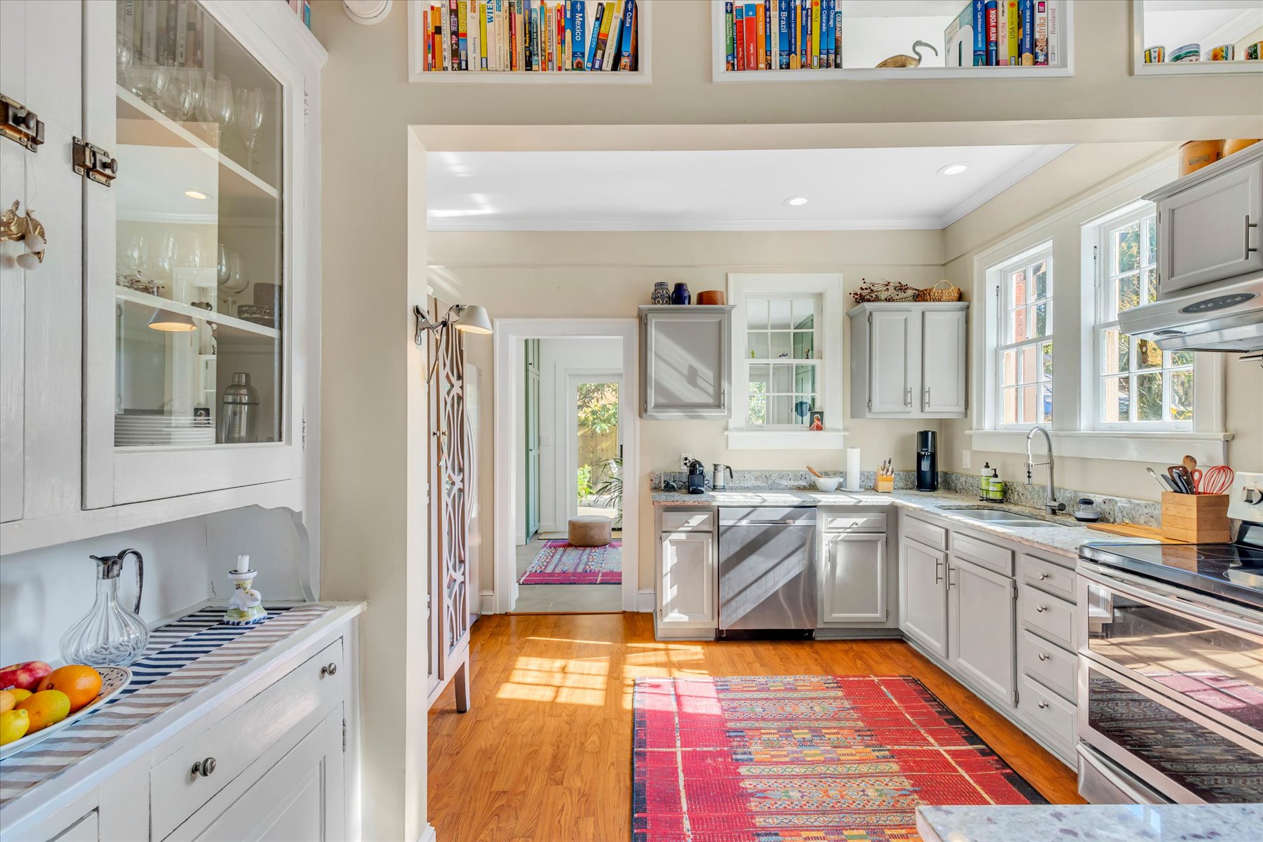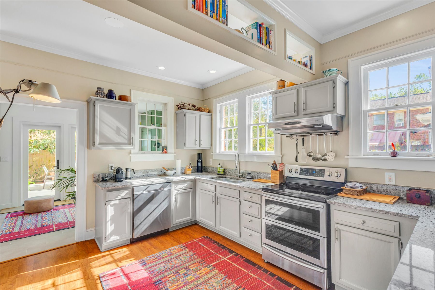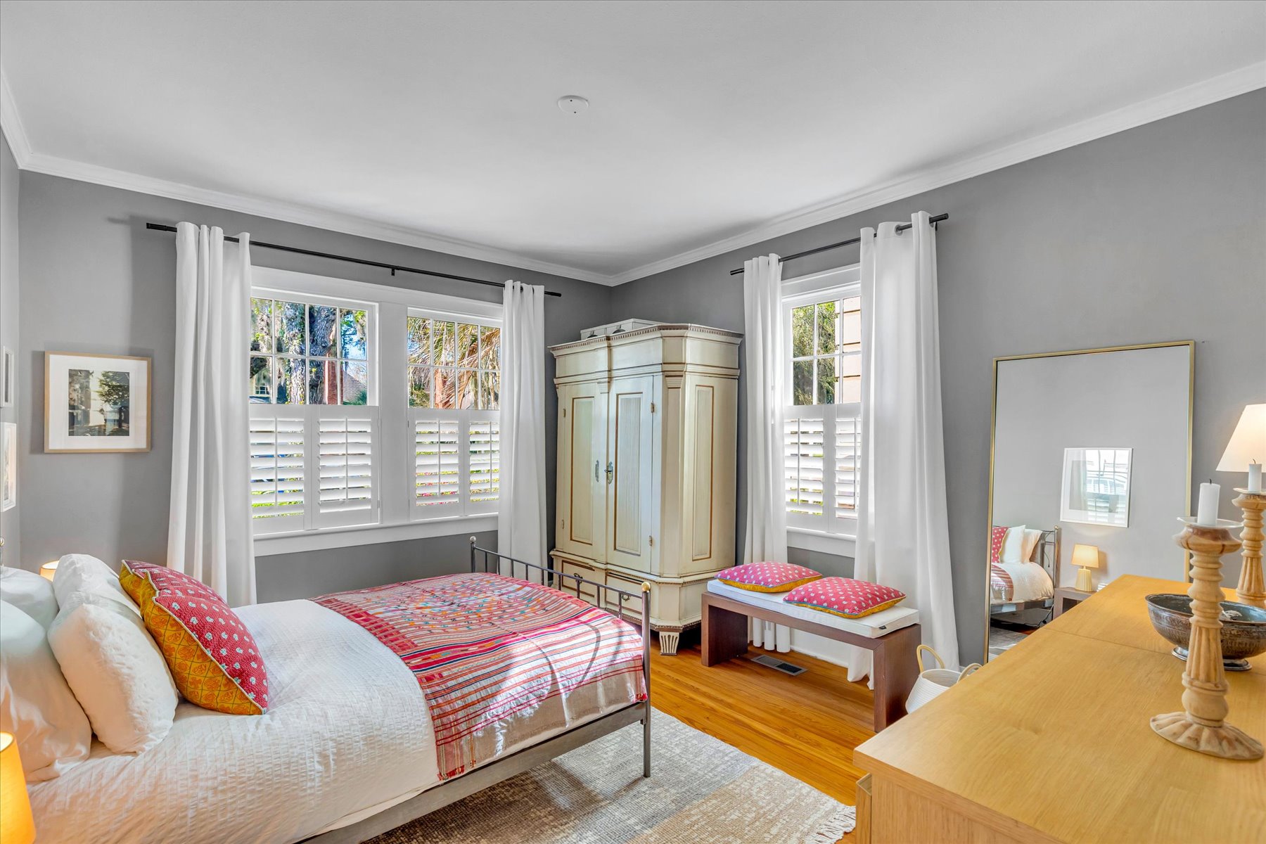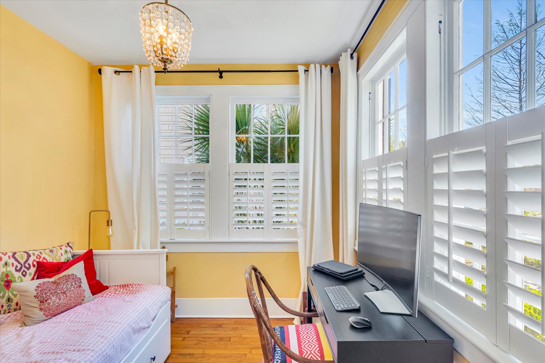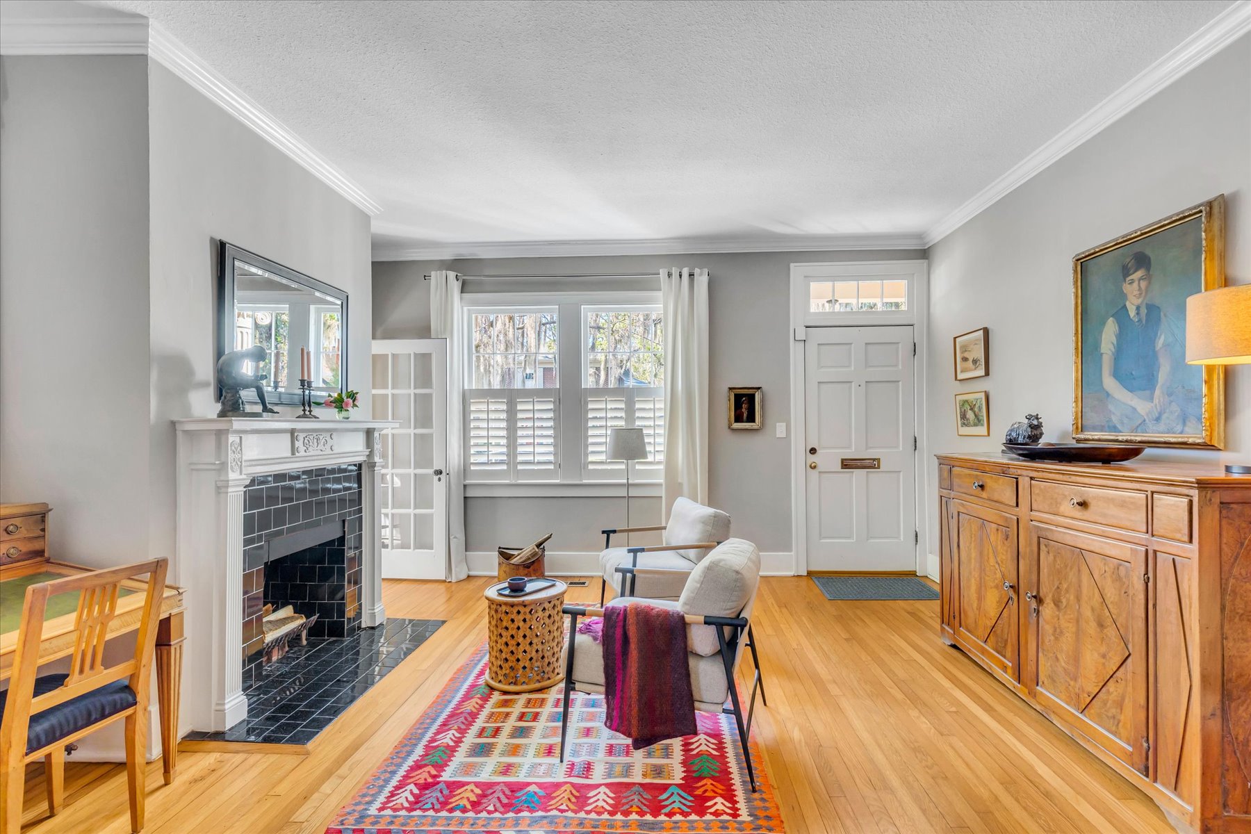 Welcome to one of the most sought-after streets in Ardsley Park. This beautifully updated 1935 bungalow is steps from Daffin Park and features a stunning 2025 modern addition that seamlessly expands the home to 3 bedrooms and 3 full baths, with lots of storage. The new wing includes a spacious primary bedroom, a gorgeous spa-style bathroom, a sitting room, and a laundry with a stackable washer/dryer. The home offers multiple living spaces, including a living room and a TV room—both with built-ins—and the TV room features a vaulted ceiling. The charming sunroom provides flexible use as an office, playroom, or guest space. The kitchen retains its original butler’s pantry cabinet, adding character to the updated layout, with all stainless steel appliances and a gas range. A wood-burning fireplace in the living room and plantation shutters throughout add warmth and timeless appeal. All bathrooms have been thoughtfully upgraded. The back patio features long-lasting composite decking, perfect for outdoor entertaining, with beautiful plants and flowers. The backyard includes a powered shed ideal for gardening, storage, or a potential she-shed (power connected; no water). The attic offers high ceilings and the potential for future expansion with the addition of stairs. Also included are 6 sump pumps: 4 under the home and 2 in the yard (this is not in a flood zone). 1 HVAC unit was installed in 2025, and the 2nd is about 5 years old. Located minutes from downtown Savannah and the islands, this home blends historic charm with modern comfort in one of Savannah’s most desirable neighborhoods.