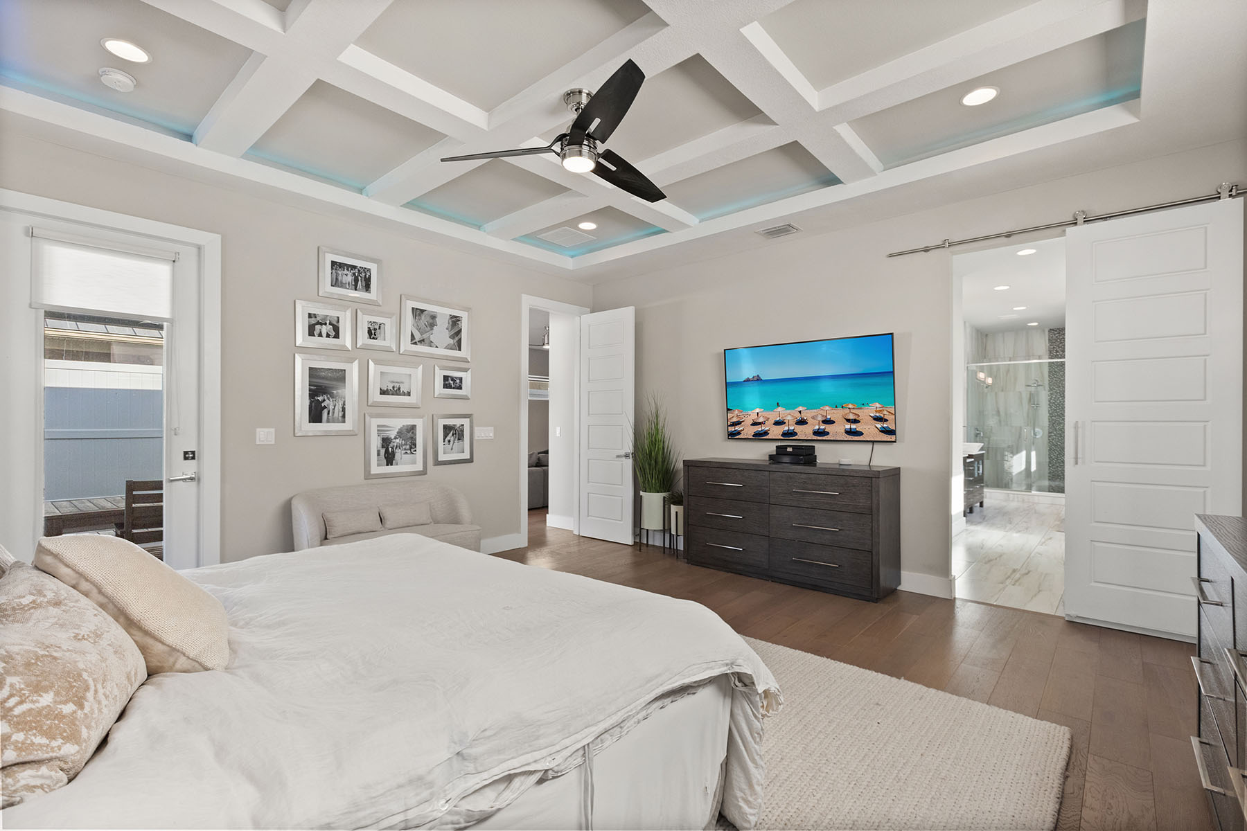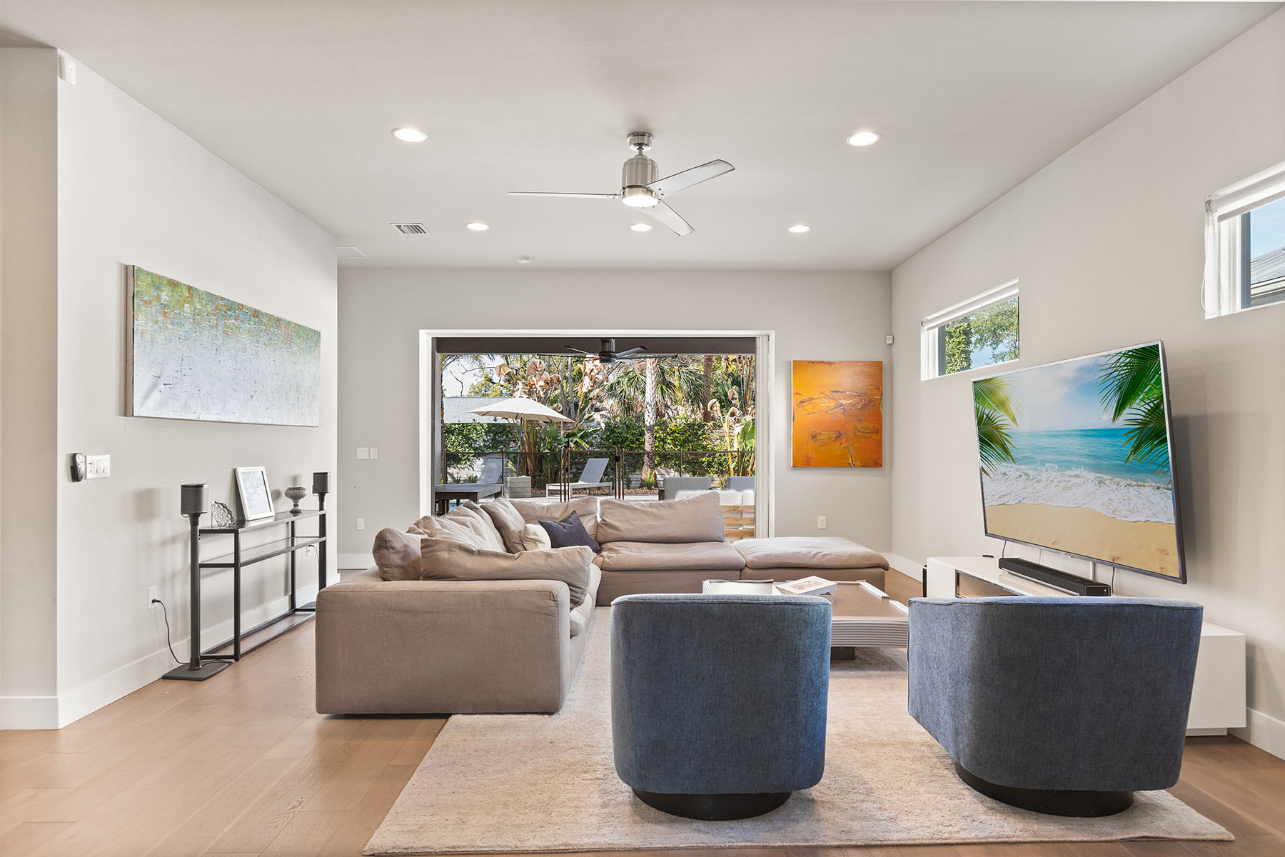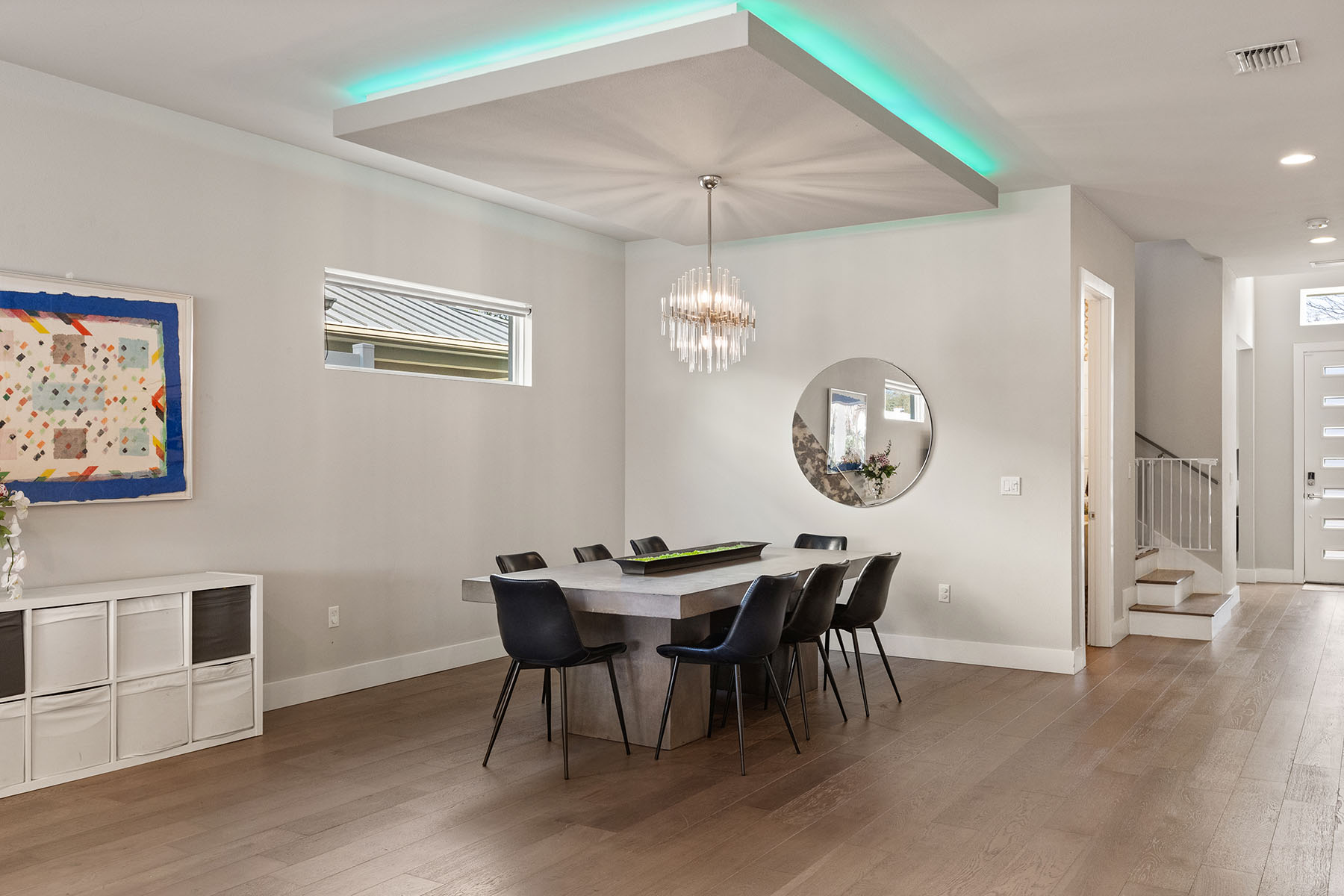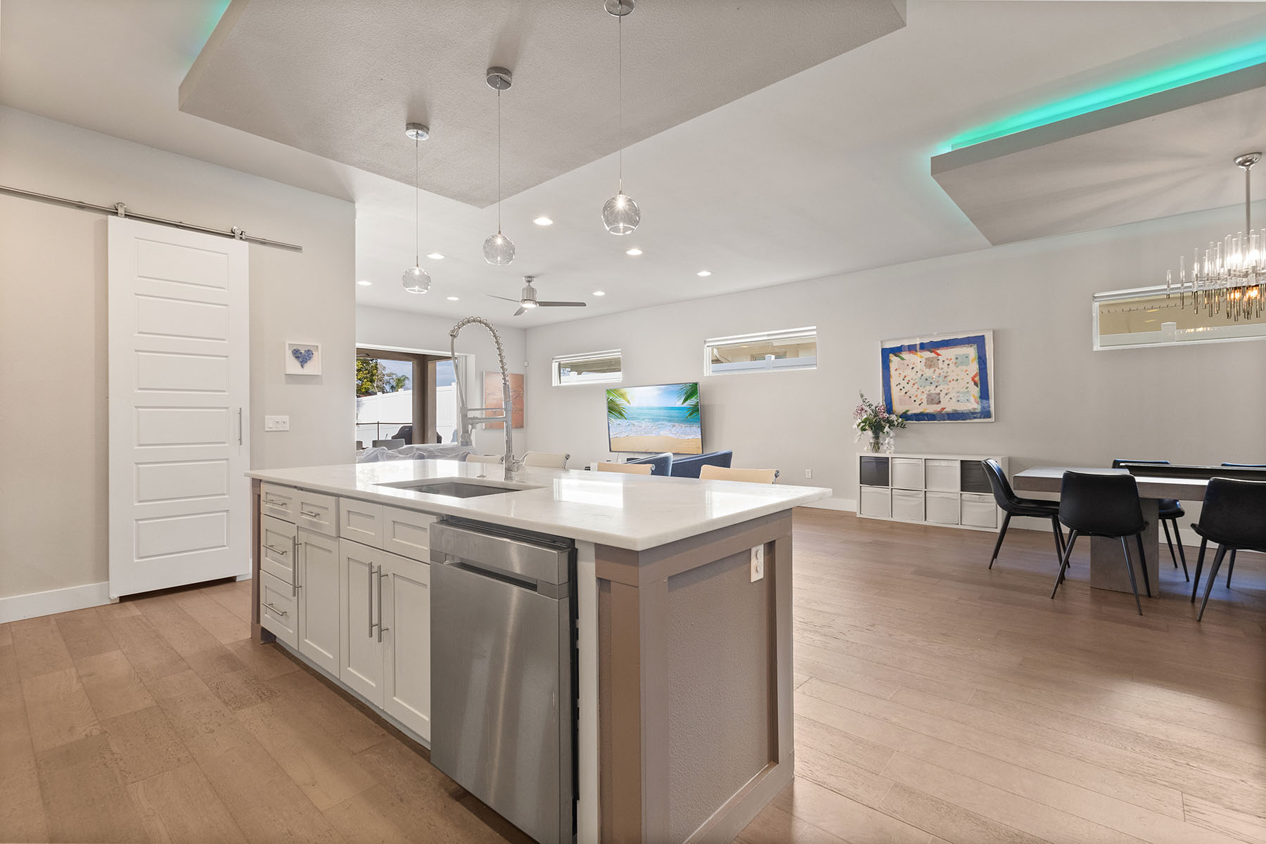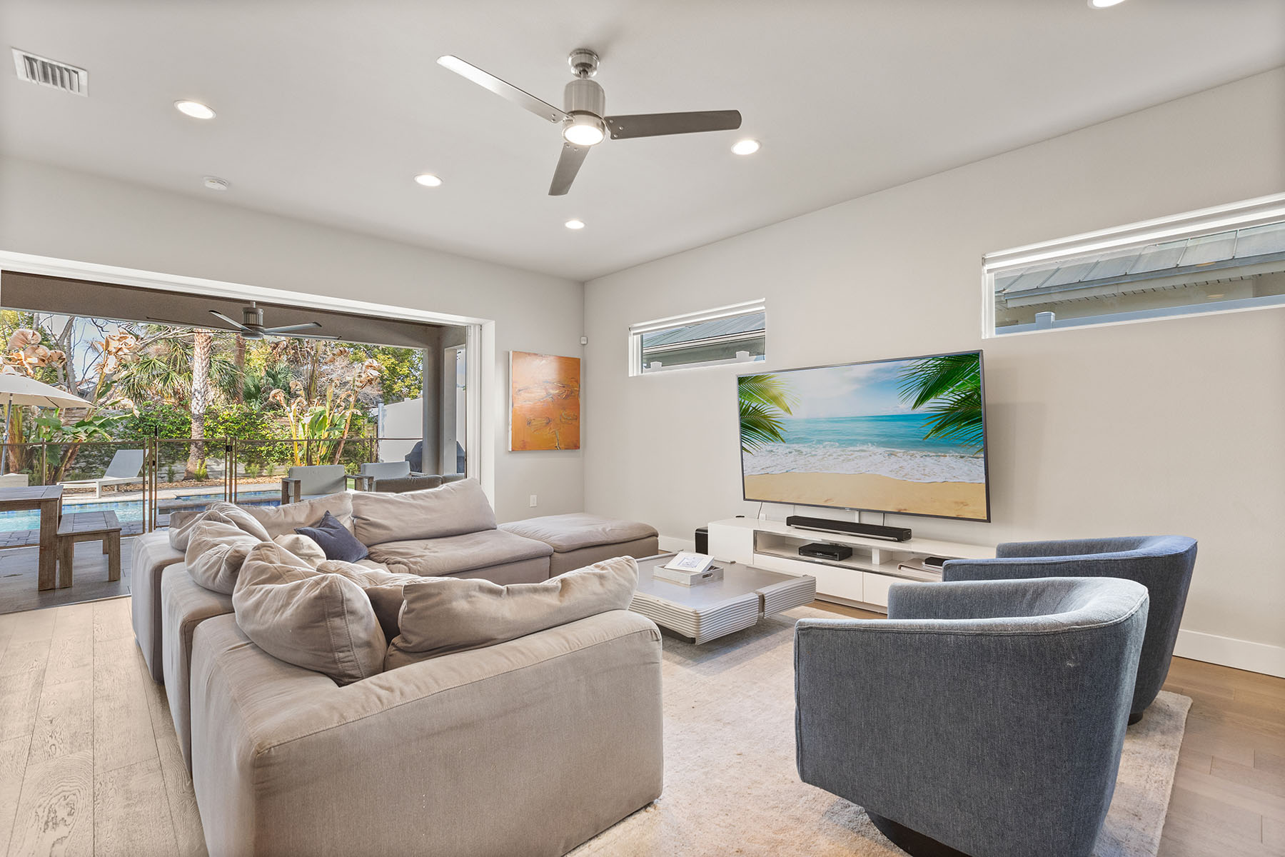 Discover Orwin Manor, one of Winter Park's established neighborhoods centrally located within an easy distance to the Orange Avenue WP corridor and minutes to downtown Orlando. Transitional architecture with modern leaning influences, this home is designed for ease of living. This four-bedroom 3.5-bath home stretches across nearly 3,200 square feet and features open kitchen to dining and living spaces that all blend into a covered porch to backyard retreat. The kitchen is the center of the home with custom double-stacked cabinetry to ceiling, upgraded appliances, large pantry with barn door, center island with bar seating, and full granite slab backsplash and counters add to the artistry of the kitchen. Ceilings are upgraded throughout with floating box details with ambient lighting that gently wash the ceilings and colors can be changed as you wish. Dining and living spaces are generous, and lined with transom windows for privacy and natural light that creates a beautiful backdrop to gather and entertain in. Invisible back doors fully open to the lanai and slide into the wall, staying hidden, an elegant upgrade. Covered porch with tongue and groove ceiling overlooks saltwater pool with hot tub and spillway. Professionally landscaped includes a turfed putting green for the golf enthusiast. Additional main floor flex space can be additional living or home office. Secondary bedrooms are upstairs with generous bonus space and laundry. First-floor primary suite is light and bright, with coffered ceilings and a large walk-in closet. Primary bath is neutrally appointed with dual floating vanities with vessel sinks, a soaking tub, and walk-in shower with seamless glass. A transom window provides privacy and a glow of sunshine and warmth. Lots of seller upgrades. This property is turnkey. Orwin Manor is a special neighborhood blending historic homes with new builds and great neighborhood park to go to. It is also a strategic location, minutes to Park Avenue in Winter Park, known for its upscale dining, elevated cafés and luxury local shopping, also a short distance to Orange Avenue corridor in WP featuring Foxtail Coffee & Buttermilk Bakery and more, and minutes to the Mills district, Advent Health on Rollins as well as major roadways. Great schools, zoned for Edgewater High, known for its magnet program and close to Lake Highland and many other private school options.