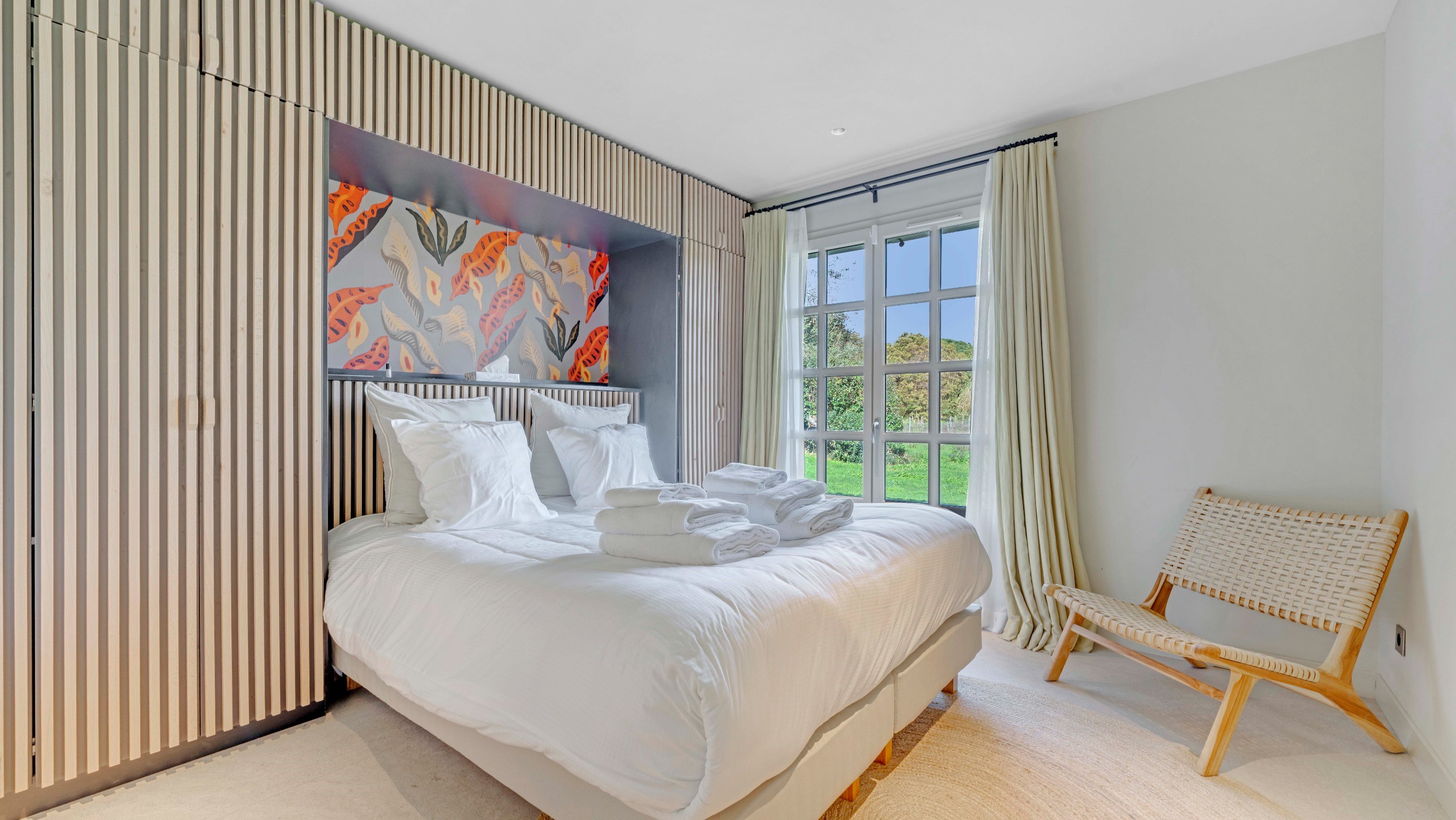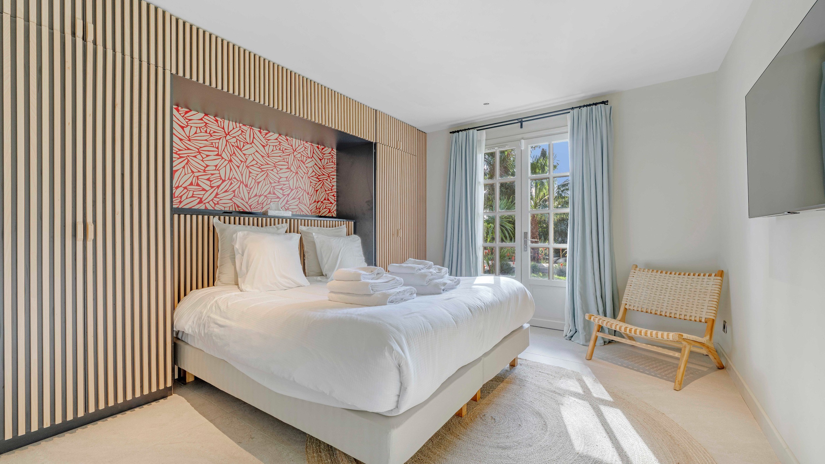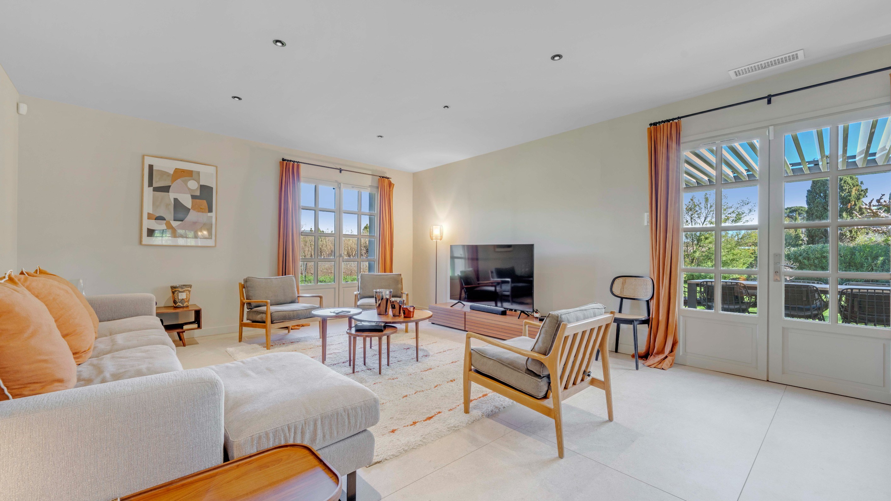 Ramatuelle Pampelonne villa 162 sqm land 7130 sqm vineyard setting pool near beach This property located in Ramatuelle, close to Pampelonne beach, offers approximately 162 sqm of living space on a 7,130 sqm plot including vineyard areas. Reception Areas The main house includes a 56 sqm living area with open plan kitchen and direct access to outdoor terraces. Bedrooms The property offers four bedrooms, each with en suite bathroom and private outdoor access, as well as an independent studio. Outdoor Spaces The exterior includes a heated swimming pool, landscaped garden, pétanque area and terraces, all within a natural environment surrounded by vineyards. Additional Features Private access via a dedicated path, security systems and proximity to the beach within minutes. This property represents a rare opportunity for a secondary residence or investment in one of the most sought after areas of Saint-Tropez. Location Prime location in Ramatuelle, close to Pampelonne beach and Saint-Tropez. For further information or to arrange a private viewing, please contact Côte d’Azur Sotheby’s International Realty, your expert in Ramatuelle.