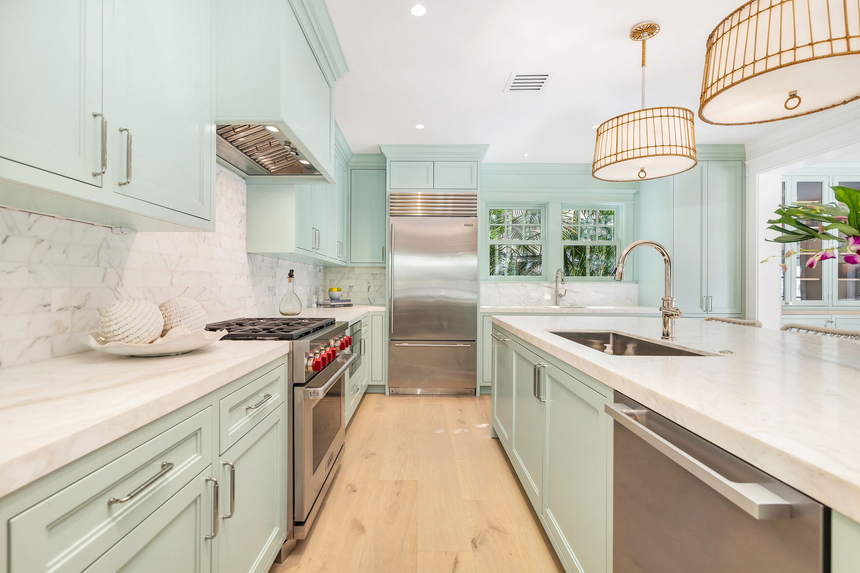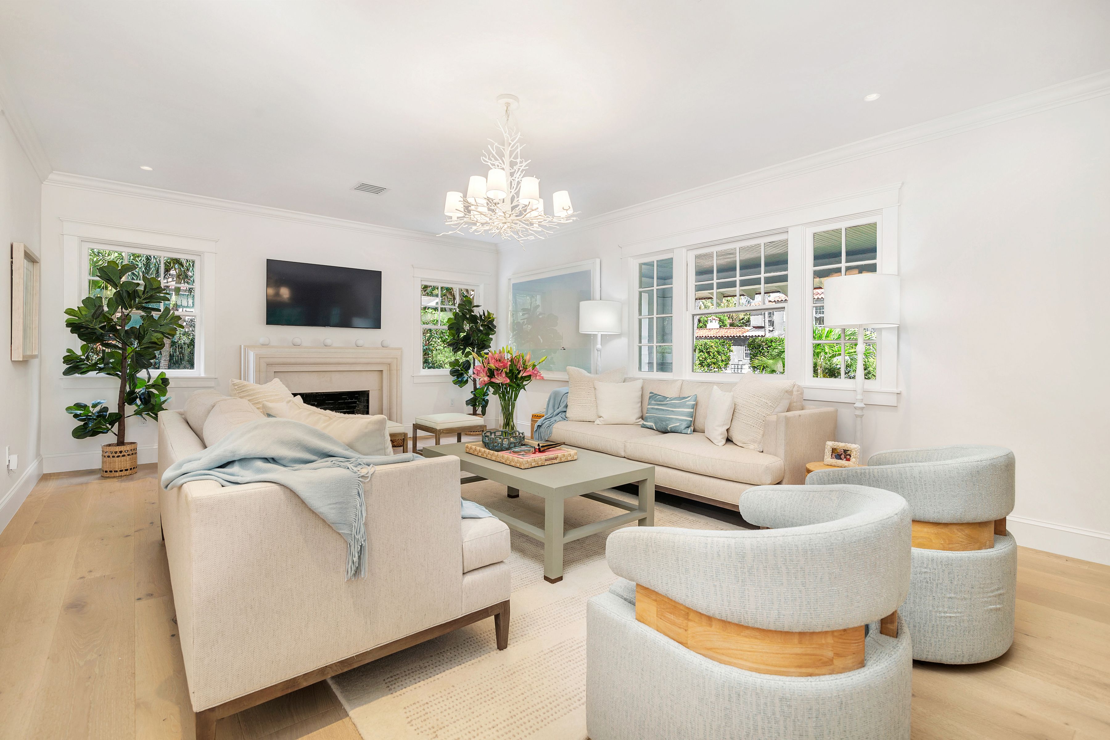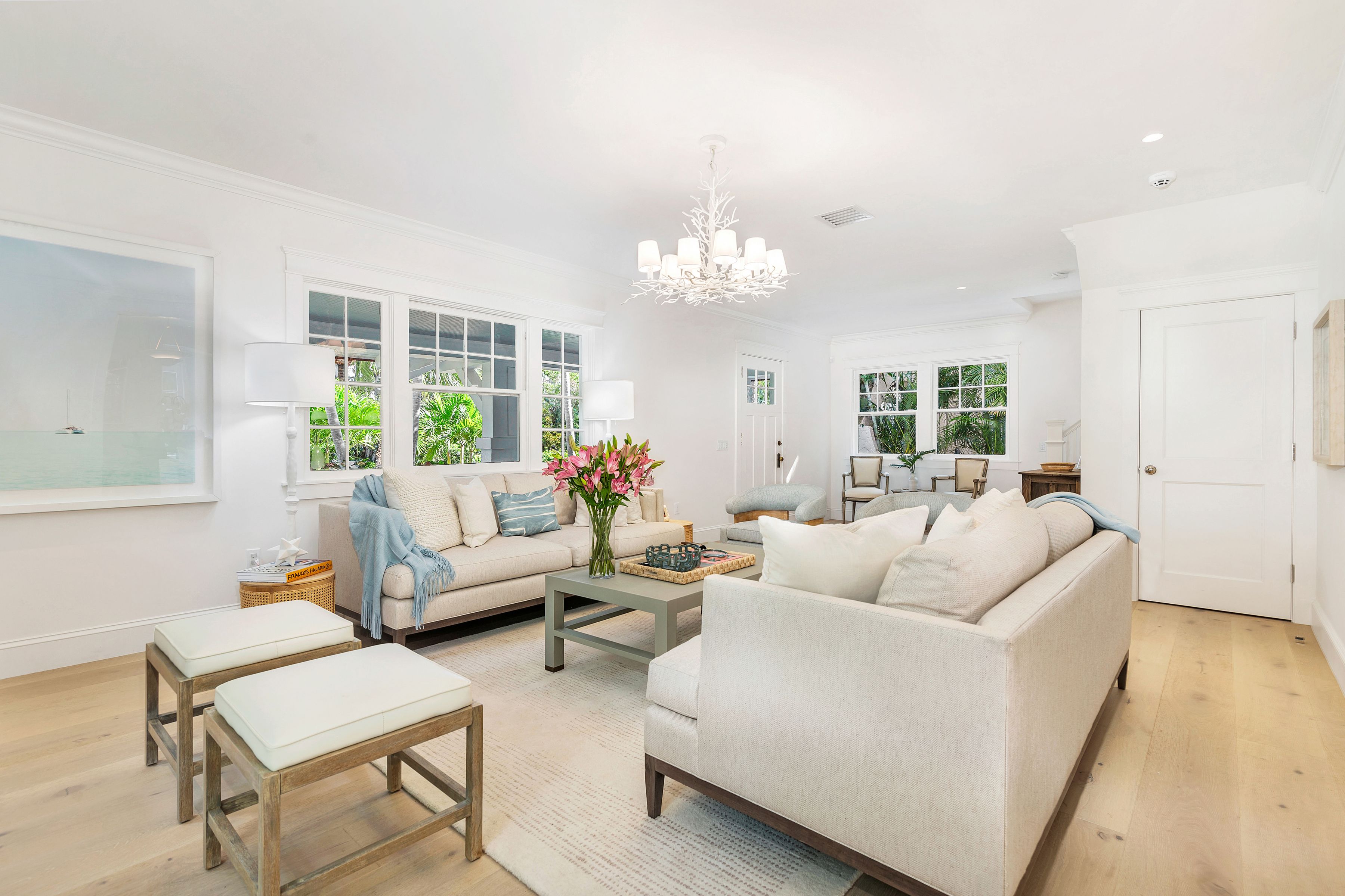 Reimagined by Smith Kellogg Architecture with interiors by Carolyn Roy of CR Studio, this renovated bungalow-style cottage is the ultimate Palm Beach Rental. Spanning 3,201 +/- square feet, this home has been meticulously renovated with high end finishes. The stunning kitchen is equipped with top-of-the-line appliances that include a Sub-Zero refrigerator, Wolf gas range and oven, and Miele dishwasher. The kitchen effortlessly flows into a dining area and family room, overlooking a sparkling heat pool that invites relaxation and entertainment. A gracious living room with fireplace, further enhances the allure of this home. The main house boasts three generously sized bedrooms.