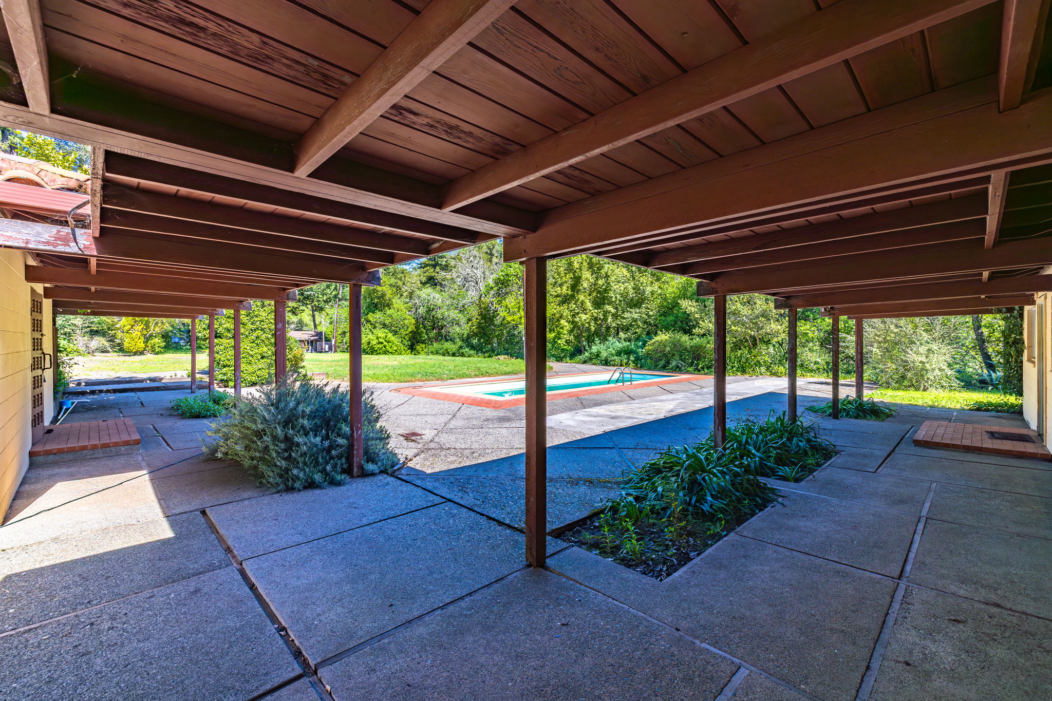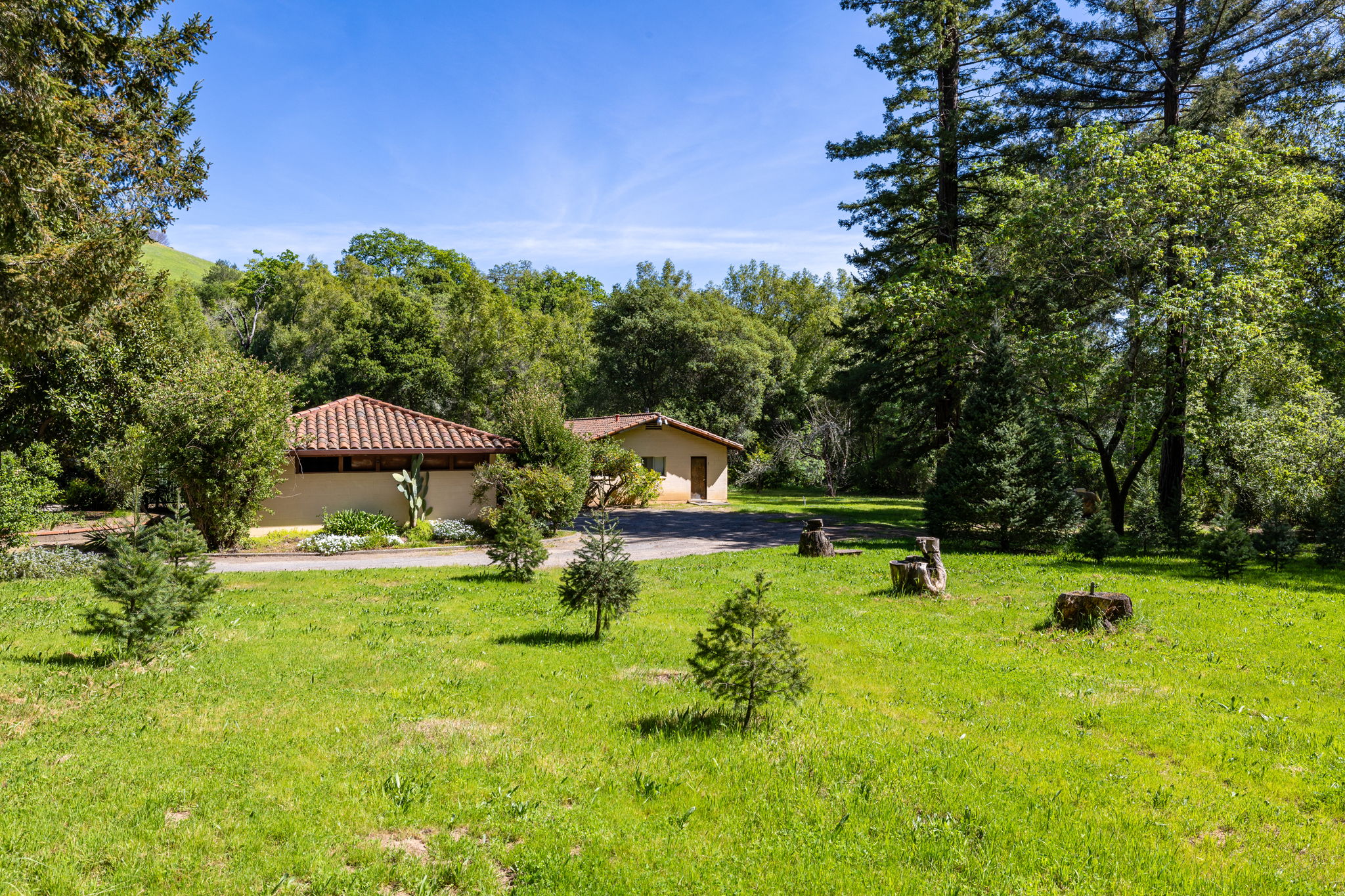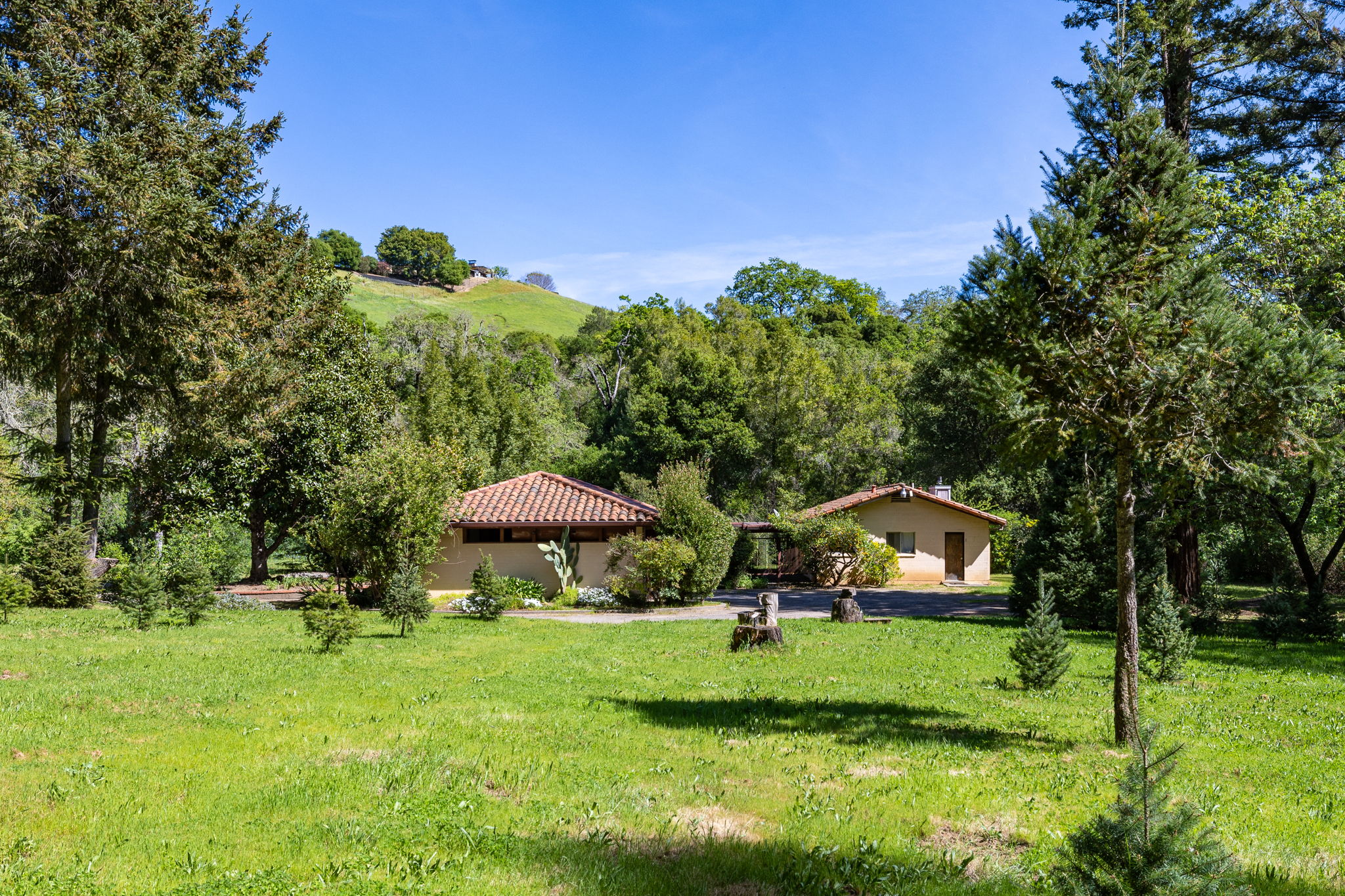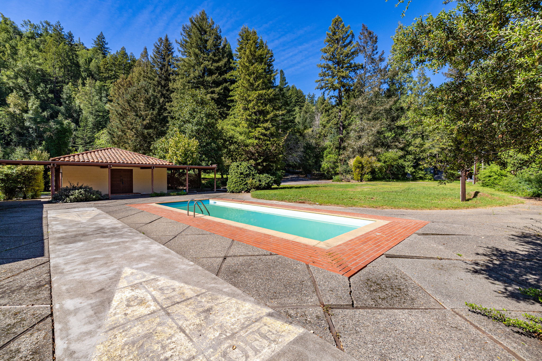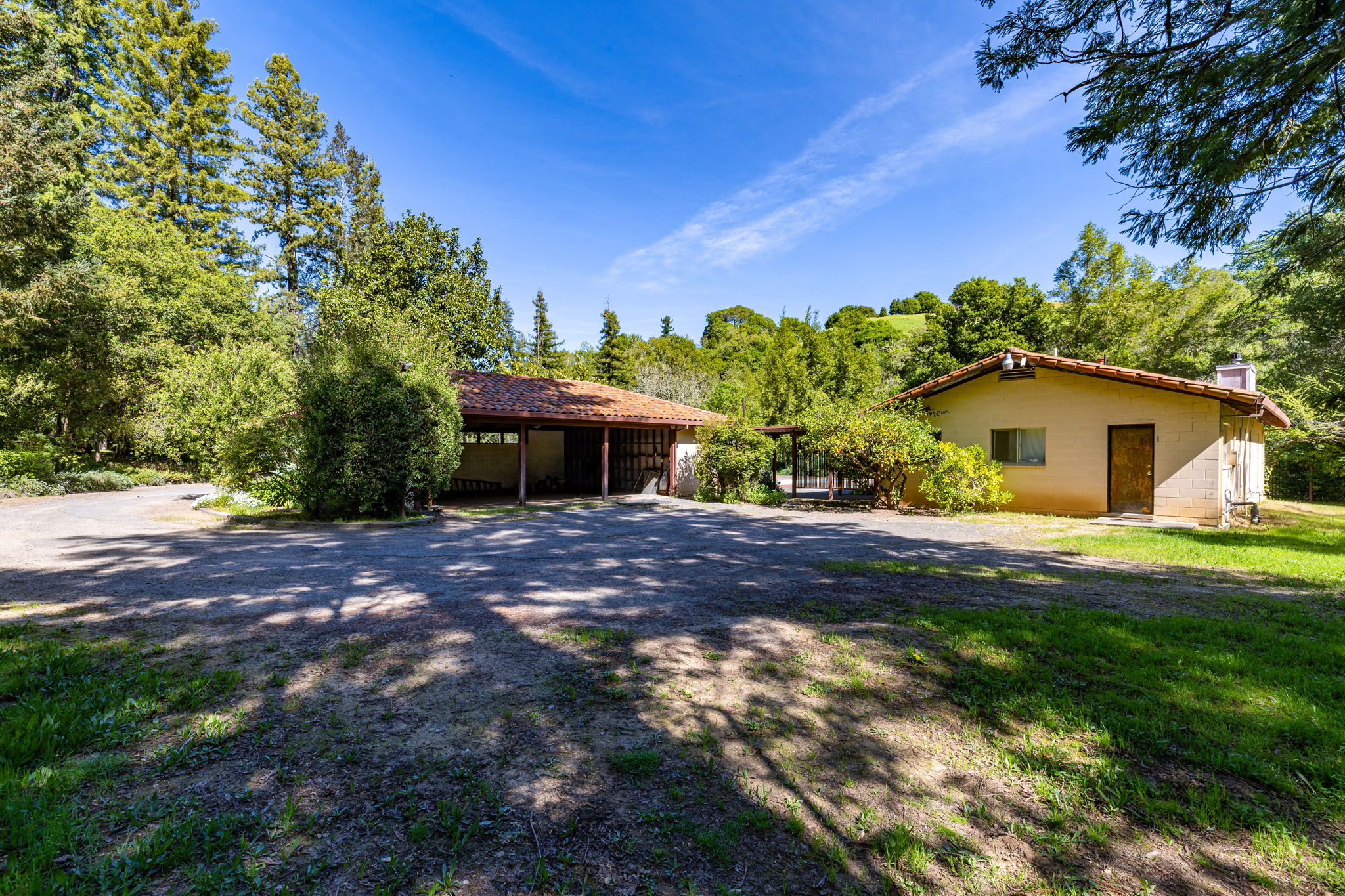 Set on approximately 2.7 acres along one of Napa Valley's most storied rural corridors, this is a rare opportunity to steward a place where California history, architectural pedigree, and land legacy converge. For more than six decades, the property was owned and carefully stewarded by the Brusstar family, whose name is woven into the fabric of Napa Valley's agricultural heritage. The site was home to Brusstar's Christmas Tree Farm widely regarded as Napa's last remaining cut-your-own farm a living remnant of the valley's quieter, pre-boom era defined by family stewardship, continuity of ownership, and deep respect for the land. Warren Brusstar, a former Major League Baseball player and member of the 1980 World Series-winning Philadelphia Phillies, later inducted into the Napa Valley College Athletic Hall of Fame in 2011, adds a distinctly human dimension to a provenance already rich in meaning. Equally significant is the property's documented architectural lineage. In the late 1950s, the landscape was designed by Thomas D. Church widely regarded as the father of modern California landscape architecture and the defining voice of California's indoor-outdoor living ethos. The Brusstar project is formally recorded in the Thomas D. Church Collection at UC Berkeley's Environmental Design Archives, with original drawings and manuscripts preserved. Verified Church landscapes in private hands are extraordinarily rare, and in Napa Valley, virtually nonexistent. The original main residence has been removed. What remains a detached studio with kitchen and bath, a garage, and a built-in pool set among redwoods and bordered by a seasonal creek offers a compelling and practical foundation. The studio functions beautifully as a full-time residence while a future main home is thoughtfully designed and built, subject to county approvals, allowing the next owner to live within the land before committing it to architecture. Zoned Agricultural Watershed and designated a Rural Homestead, this is not a development play. It is an invitation to those who understand that the rarest properties are not measured in square footage, but in story, soul, and the weight of what came before.