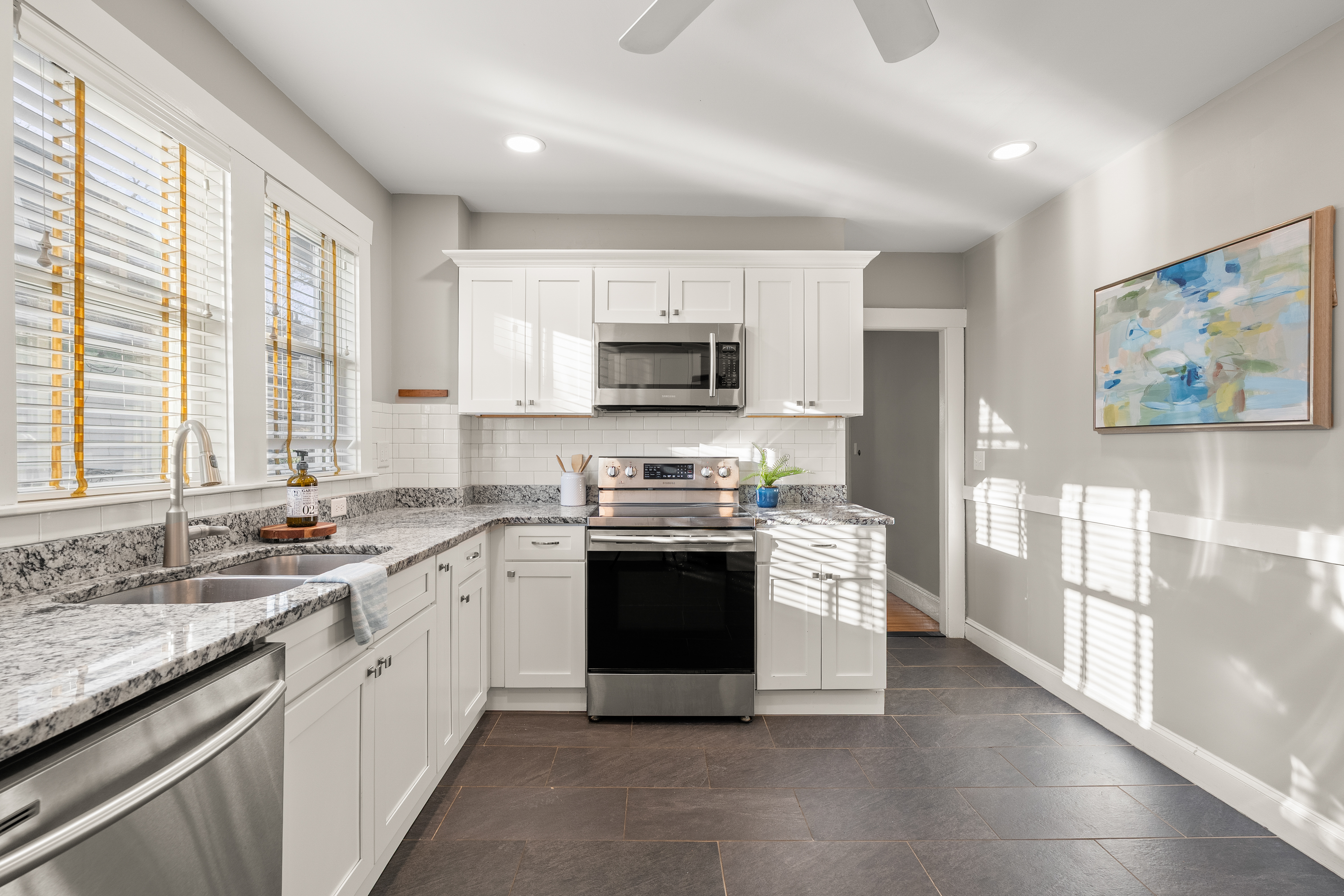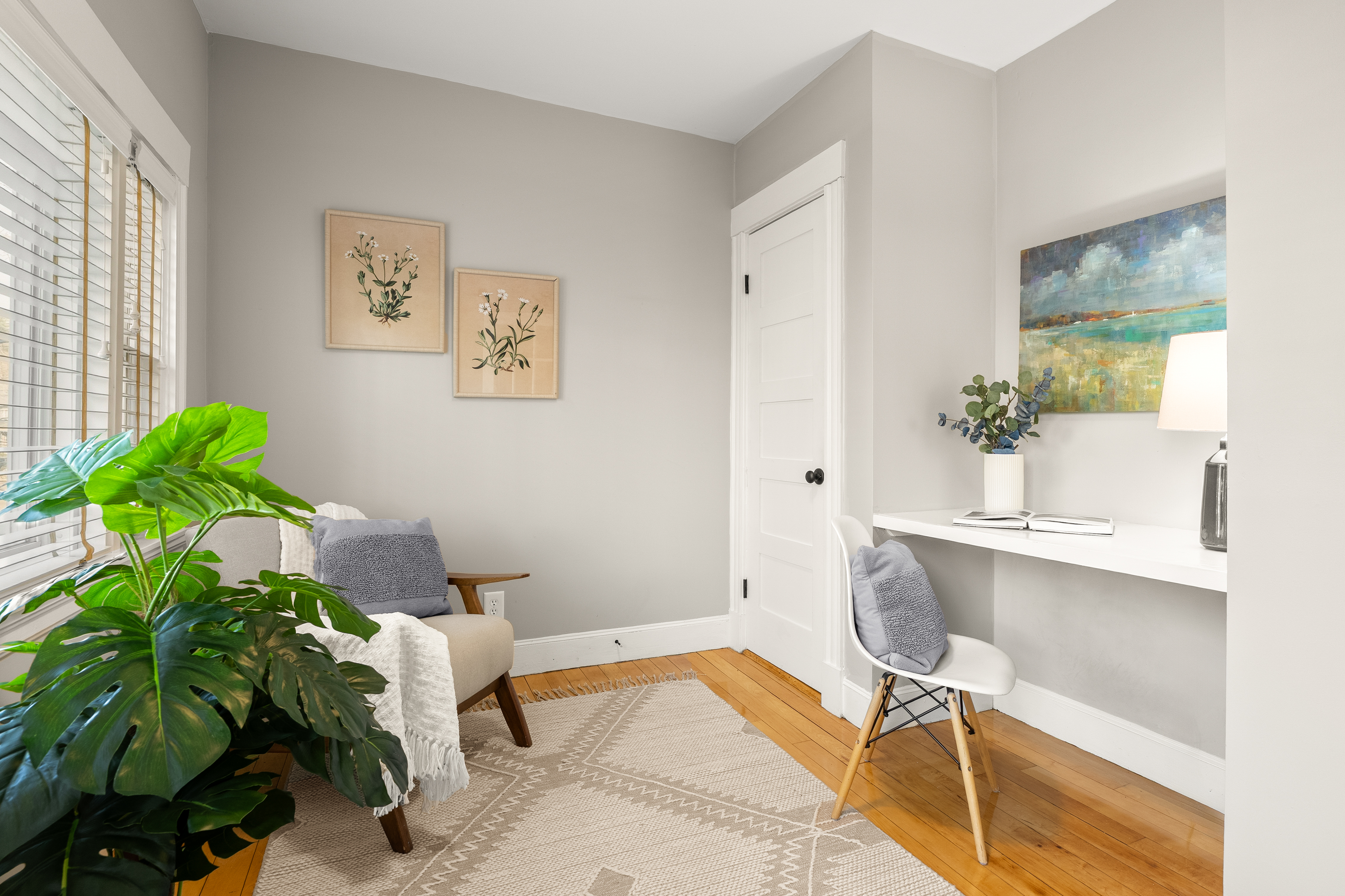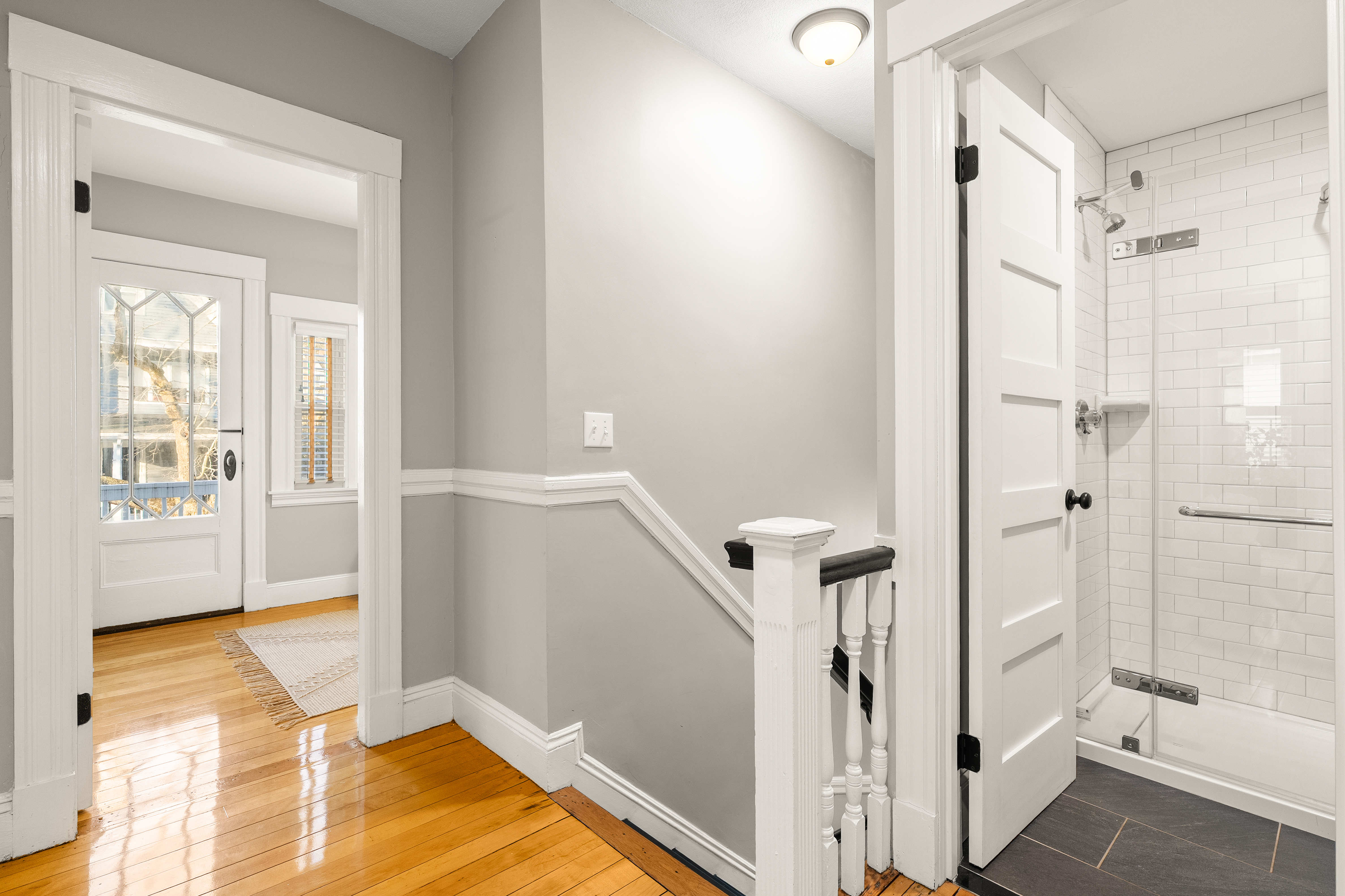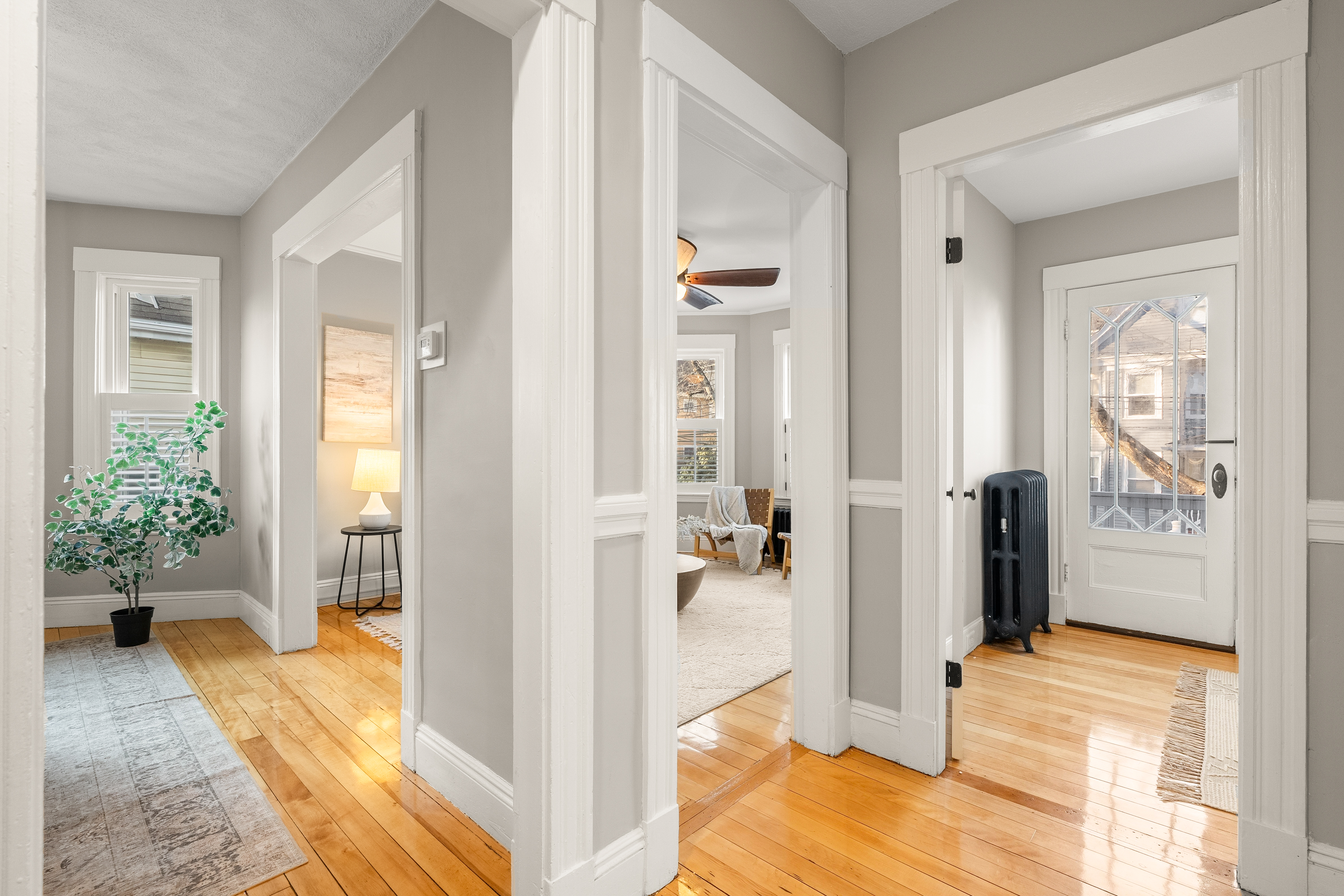 This sun-filled two-level condo blends historic charm and modern updates. Gleaming hardwood floors, custom built-ins and abundant windows fill the home with light throughout the day. The remodeled kitchen features generous counters, ample cabinetry, granite, stainless steel appliances and a five-burner range—perfect for entertaining friends and family or enjoying casual meals at home. The open living and dining area, with a stunning stained-glass window, creates a warm gathering space, while a bright home office with built-in desk enjoys sunlight. An enclosed back porch and private front porch overlooking the tree-lined street offer relaxing spots to unwind or enjoy morning coffee. The upper level includes three spacious bedrooms with built-ins and a large bath. Being close to Mass Ave provides easy access to shops, restaurants, the Minuteman Bike Trail, major commuter routes and public transportation, in the sought-after Brackett School neighborhood.