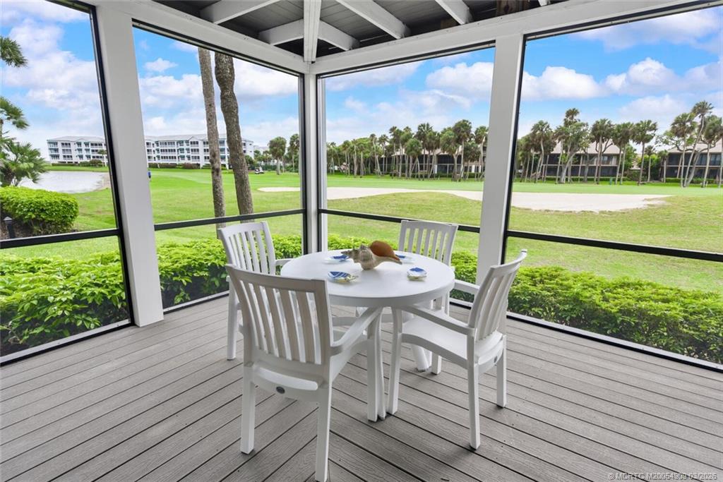 Experience relaxed living in this immaculate condominium, designed to provide comfort and tranquility. Situated in Fairway Villas, a low-density community of 32 condominiums, the property offers an environment akin to single-family home living. This first floor end unit provides exceptional views of the manicured golf course and pristine lake, with amenities including a heated pool and barbecue area conveniently nearby. The owner has invested in new furnishings, beds, bedding, and appliances, including a GE Profile all-in-one washer/dryer, a new range, refrigerator, microwave, and fresh paint throughout. Kitchenware is included for turnkey accessibility. Additional upgrades feature a new air A/C (2024), new hot water heater (2026), impact hurricane glass, and a 50 TV in the main bedroom. Optional Ocean Club membership is available, offering tennis, pickleball, golf, fitness facilities, private beach club, dining venues, and more.