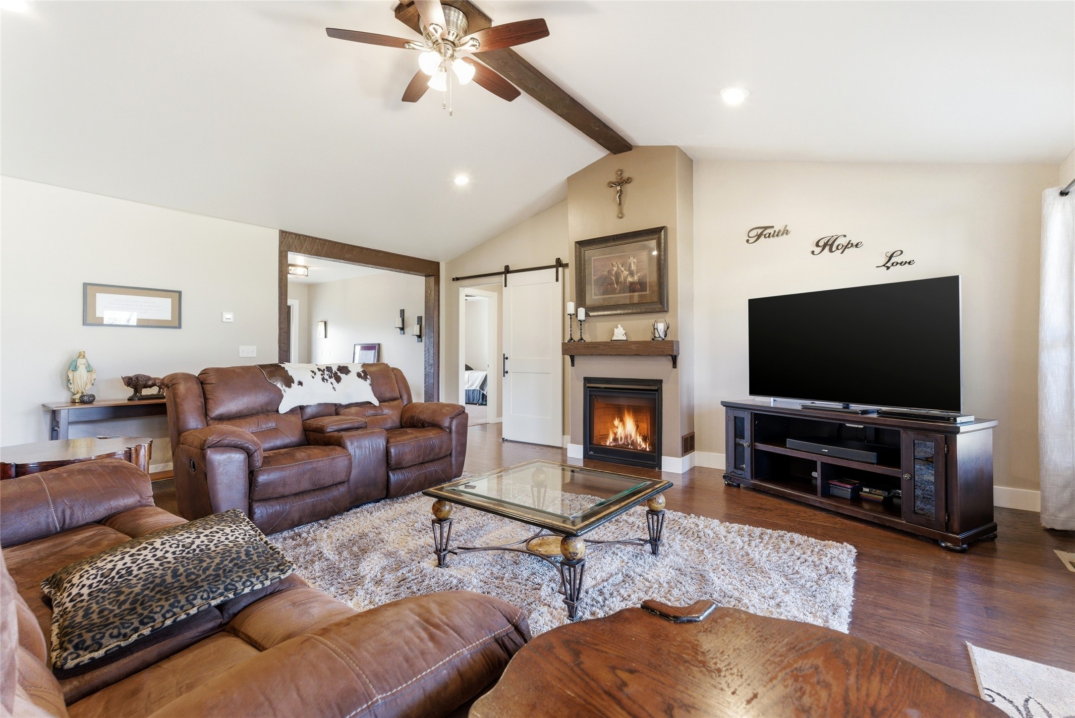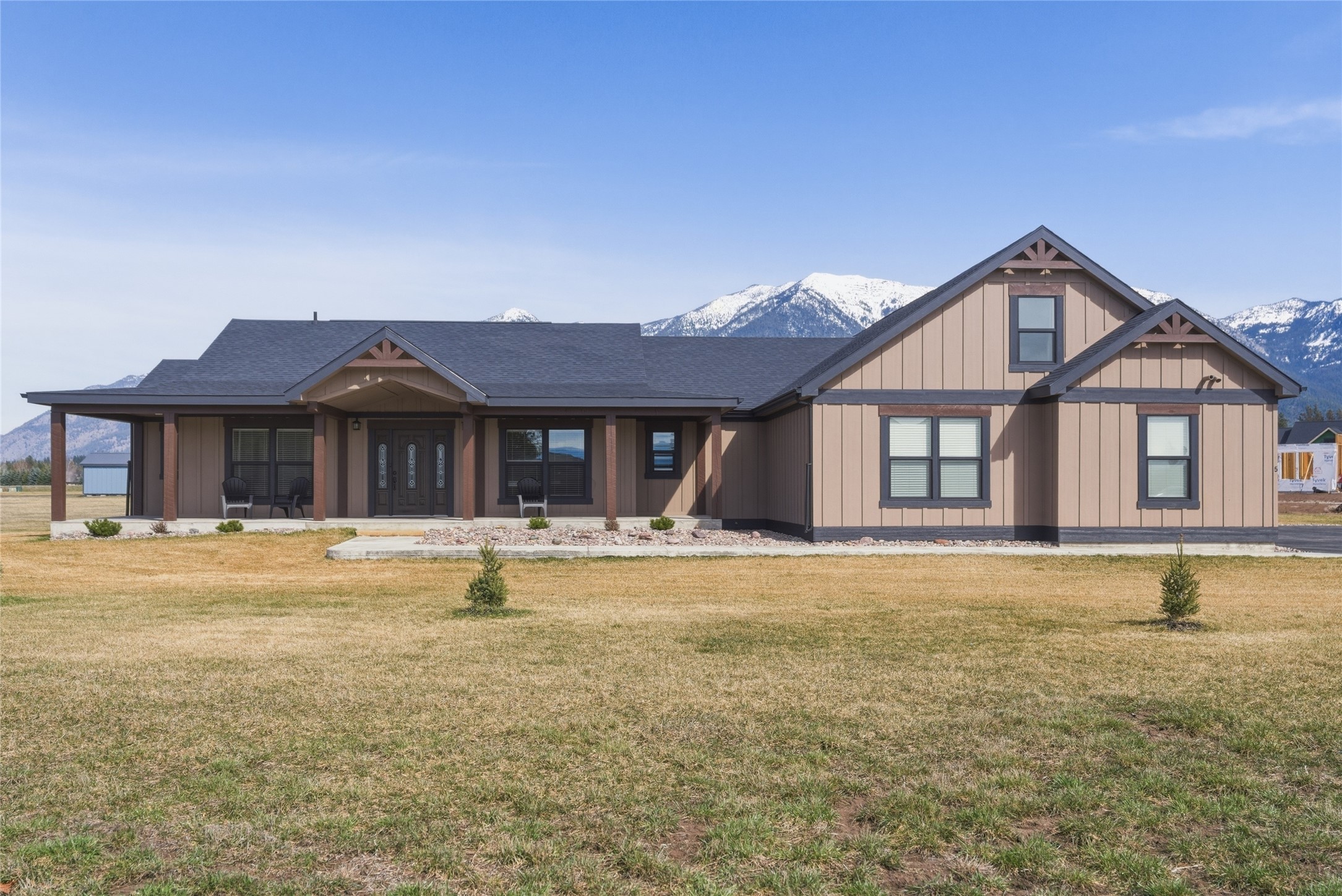 Welcome to Sweetgrass Ranch, a highly sought-after neighborhood known for its large lots, serene setting, and 2.5 miles of paved community walking trails. This beautifully maintained 4-bedroom, 3-bath home sits on an impressive 1.96-acre lot and showcases stunning, up-close views of the Swan Mountain Range. Designed for comfort, connection, and main-level living, the home features an open floor plan, wood beam accents in the living room, and a main-level primary suite. The kitchen is built for everyday cooking and easy entertaining, with double ovens, a gas cooktop, a wide, gathering-friendly island, and an equally impressive walk-in pantry with a window. The flexible layout continues with a 4th bedroom currently used as a home office, plus an upstairs bonus room with large view-facing windows that perfectly frame the mountains. Above the 3-car garage, a finished space currently used as a home gym offers even more versatility and is ideal for a second office, studio, playroom, or hobby space. Outdoor living features covered front and back patios, stamped concrete walkways, a firepit, underground sprinklers, and a quiet cul-de-sac setting that enhances privacy. A whole-house Generac generator provides year-round peace of mind, and neighborhood covenants allow for the future construction of a shop, giving buyers long-term flexibility. Move-in ready and thoughtfully designed, this home combines main-level living, acreage, panoramic mountain views, and community amenities in one of the valley's most desirable settings.