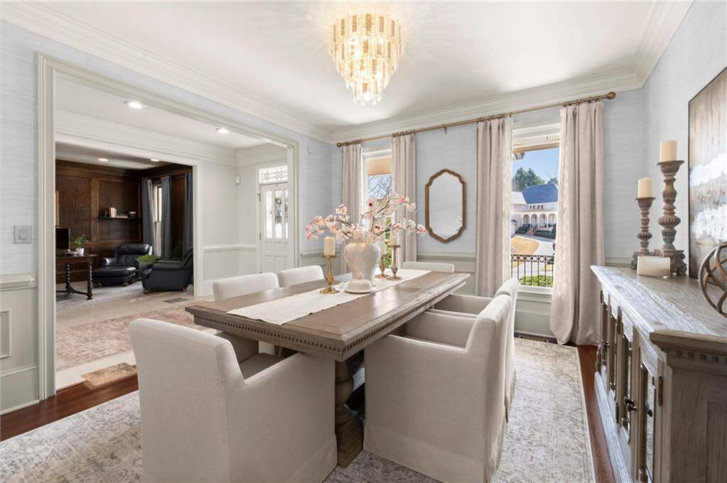 Nestled on a quiet cul-de-sac within a highly sought-after gated community just minutes from The Battery, this stunning four-sided brick traditional residence exudes timeless elegance and offers exceptional indoor-outdoor living. Step inside to discover an incredible open floor plan seamlessly designed for both everyday comfort and elegant entertaining. At the heart of the home is a breathtaking recently renovated custom kitchen featuring chic leathered granite countertops, gorgeous ceiling-height cabinetry, an island with honed quartzite countertops and top-of-the-line stainless steel appliances, including an ILVE dual fuel range, a Subzero refrigerator, and an under-counter beverage fridge. Beautiful open shelving and designer-selected tile enhance this culinary masterpiece. The inviting breakfast nook spills into the grand two-story family room, anchored by a gorgeous custom mantle and fireplace, creating a perfect space for relaxation and gatherings. The outdoor oasis is equally impressive, with a covered patio adorned by stunning brick columns, overlooking a private fenced-in backyard that boasts an inviting swimming pool, a spa with a soothing waterfall feature, and a custom gazebo complete with a built-in grill. On the main floor, you will also find a sophisticated formal dining room adorned with designer grass cloth wallpaper and intricate woodwork, as well as a spacious office lined with beautiful wood paneling. The custom mudroom cabinetry and main floor laundry room add convenience to daily living. The luxurious main level primary suite features two additional flex rooms - perfect for an office and a cozy sitting area or nursery-along with an expansive walk-in closet. The spa-like primary bathroom offers abundant storage, dual sinks, a separate soaking tub, and a large walk-in tile shower that can double as a steam shower. Upstairs, the home continues to impress with a generously sized secondary bedroom with an en suite bathroom, complemented by two additional bedrooms connected by a Jack and Jill bathroom. The finished terrace level presents a fantastic entertainment space, featuring another living area, a home gym, and a movie room, along with an additional bedroom and full bathroom. A massive deck off the rec room opens to serene views of the community's private park. And there's tons of unfinished storage space in the basement as well. The Gates at Vinings is an exclusive gated community in Smyrna, Georgia, conveniently located just minutes from the excitement of the Atlanta Braves at The Battery, exciting performances at Cobb Energy Center, and shopping at Cumberland and Cobb Galleria. This intimate neighborhood features a private community park with walking trails, serene sitting areas, and a putting green, providing a peaceful retreat for residents. With easy access to I-75 and I-285, and proximity to all things Atlanta, Buckhead, and the Atlanta airport, plus added security from the gated entrance and a convenient call box, enjoy convenient living in this sought-after community.