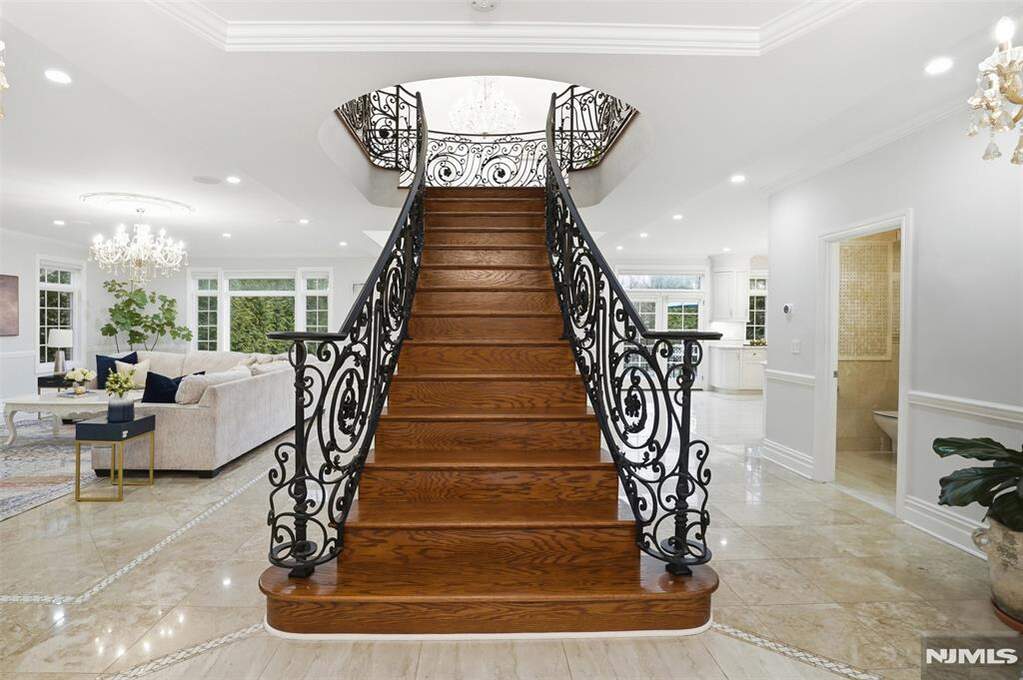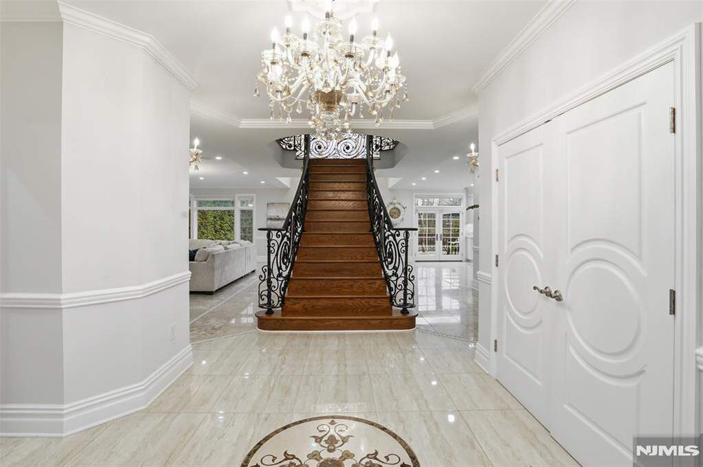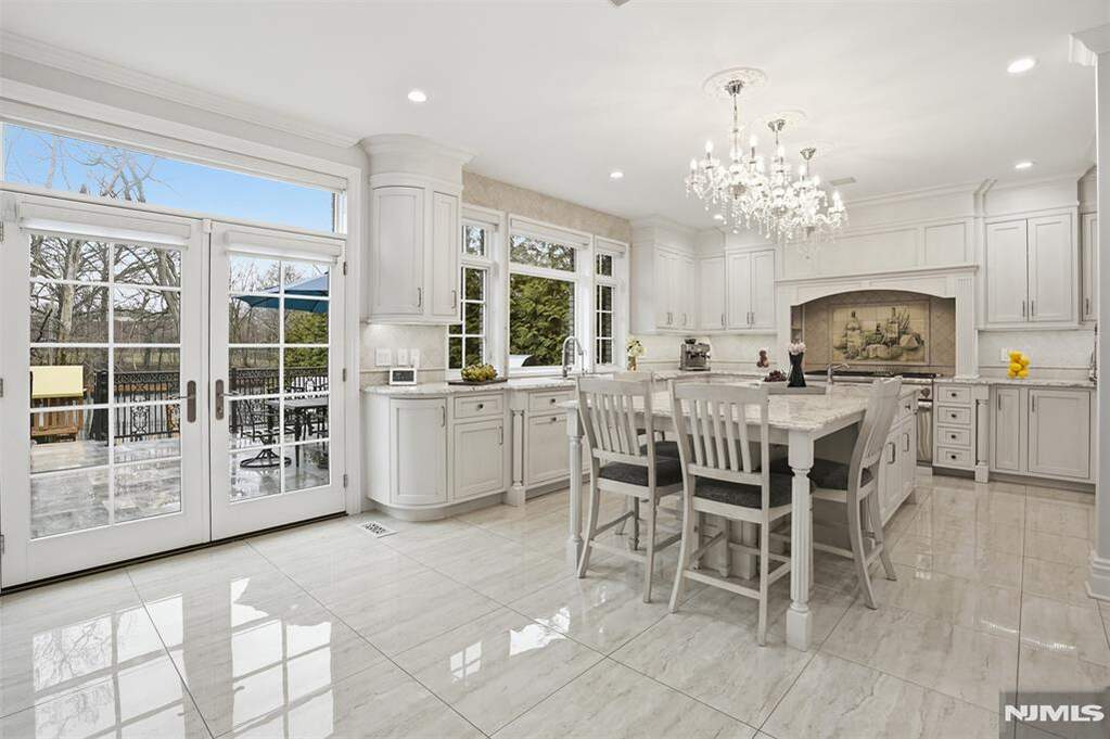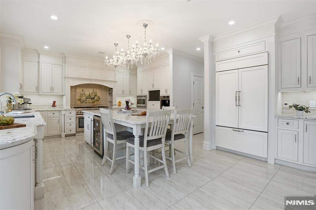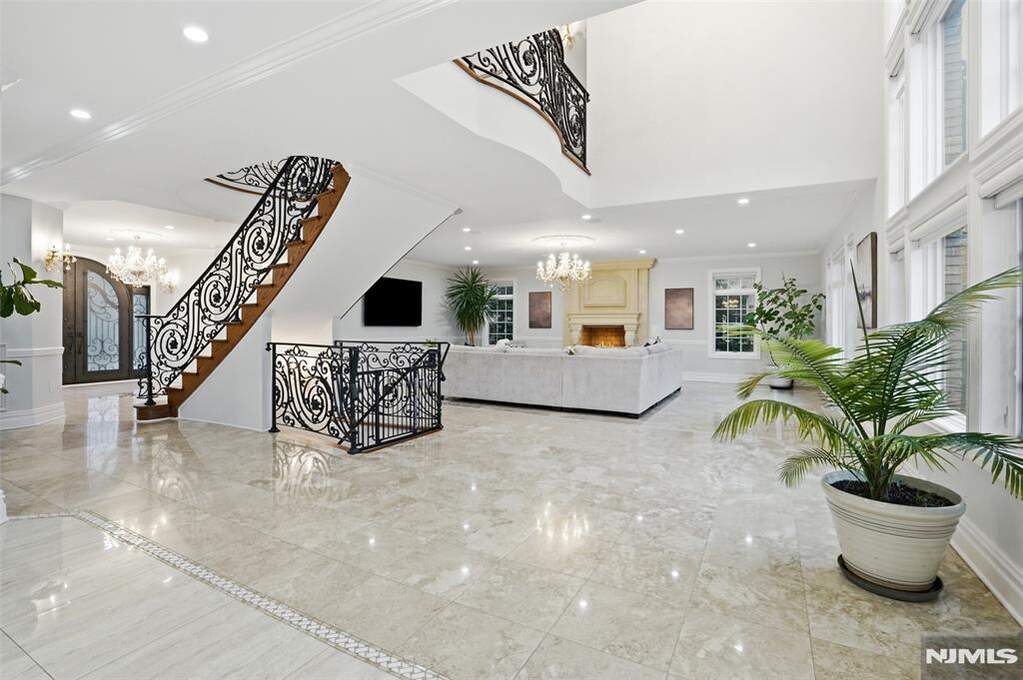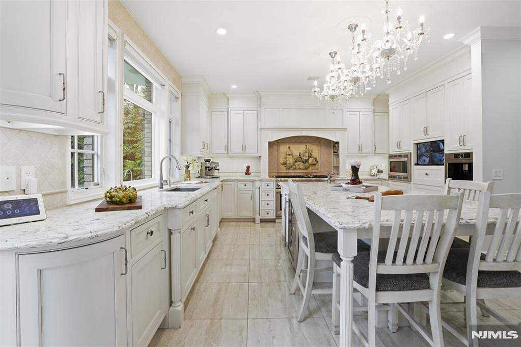 Experience a South-facing all-brick architectural masterpiece situated on a stunning property with waterfront views of Miller's Pond. This grand estate features a marble entry foyer that introduces a magnificent open floor plan where walls of glass frame the serene landscape. The great room, anchored by a classic wood-burning fireplace, is designed for gracious entertaining and seamless indoor-outdoor living. A magazine-worthy chef's kitchen boasts high-end appliances, granite counters, and a sun-drenched vaulted breakfast room with direct access to a stunning marble patio and full outdoor kitchen. Follow the marble walkway to your private oasis featuring a heated saltwater pool and custom waterfall. The expansive primary suite is a true sanctuary with a French balcony, steam shower,dual walk-in closets, and a spa-inspired luxury bath. All four additional bedrooms include en-suite baths, including a convenient first-floor suite perfect for guests or extended family. The home is further elevated by a full, finished walkout lower level designed for ultimate recreation, complete with a professional movie theater, private gym, wet bar, and a bedroom w/full bathroom. This tech-forward home features countless smart-home integrations, a whole-house water filtration system, surround sound, 3-zone high-efficiency heating and cooling, and a durable, composite roof. Located just minutes from NYC, this private retreat offers a rare blend of luxury, privacy, and modern convenience.