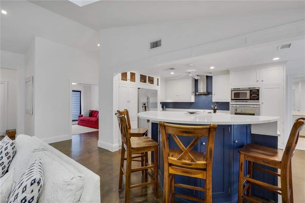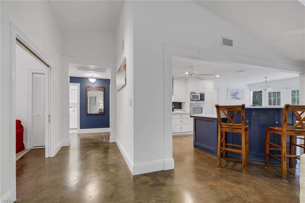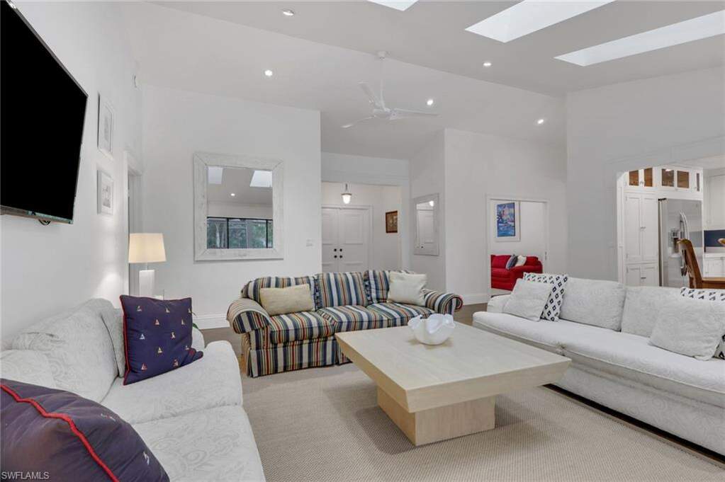Beautifully remodeled residence outstanding floor plan has been reimagined to include a third bedroom. The residence is situated in the much sought after Woodland's neighborhood in Kings Lake, on the preserve. The Woodlands consist of 45 custom homes, just minutes away from Downtown Naples, 5th Ave South and Naples Pristine Beaches. The homes remodel was inspired by Julian's Interiors of Marco Island and features an impressive great room floor plan with an abundance of oversized windows and sliding glass doors. The vaulted ceilings, with magnificent 8ft. deep skylights flood the living space with natural light. The kitchen is a masterpiece of functionality and style with huge island at its center, perfect for entertaining. The cabinetry is of the highest quality with high end GE stainless steel appliances, deep quartz countertops and under cabinet lighting. There are two large, luxurious updated master suites, each with oversized walk-in closets. In addition, there is a third bedroom. Marble effect polished concrete flooring runs seamlessly throughout the living area of the house. The upgraded lighting incorporates accent lighting in each skylight recess and the floor level in key areas. There are new 7" baseboards throughout, striking millwork, a new impact resistant slider to the front of the house (2026), a new roof 2020 along with many other upgrades. The Sliders and French doors to the rear of the house open onto the oversized travertine tiled lanai which is perfect for relaxing and enjoying the Sunny Southern Exposure. The secluded garden leads directly to the Woodlands Heated Community Pool, a tranquil oasis enclosed by tropical plants and trees, just steps from the house. Residents of Kings Lake enjoy access to beautiful lakes, great walking, jogging and cycling paths, a tennis/pickleball court and mature landscaping. The location offers quick access to Publix Shopping Center, several popular restaurants and many other amenities.