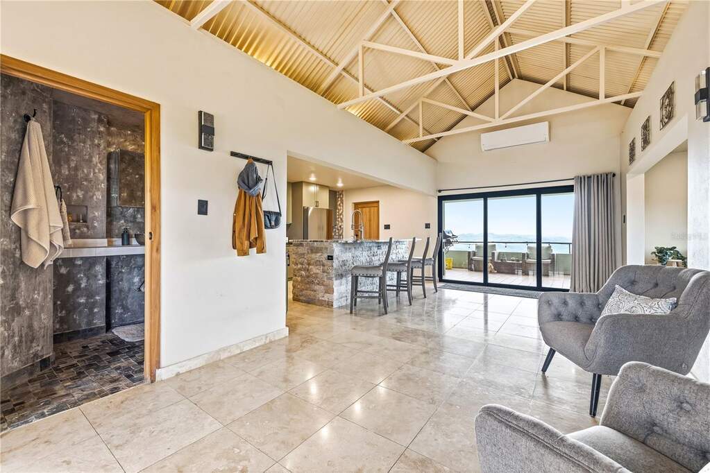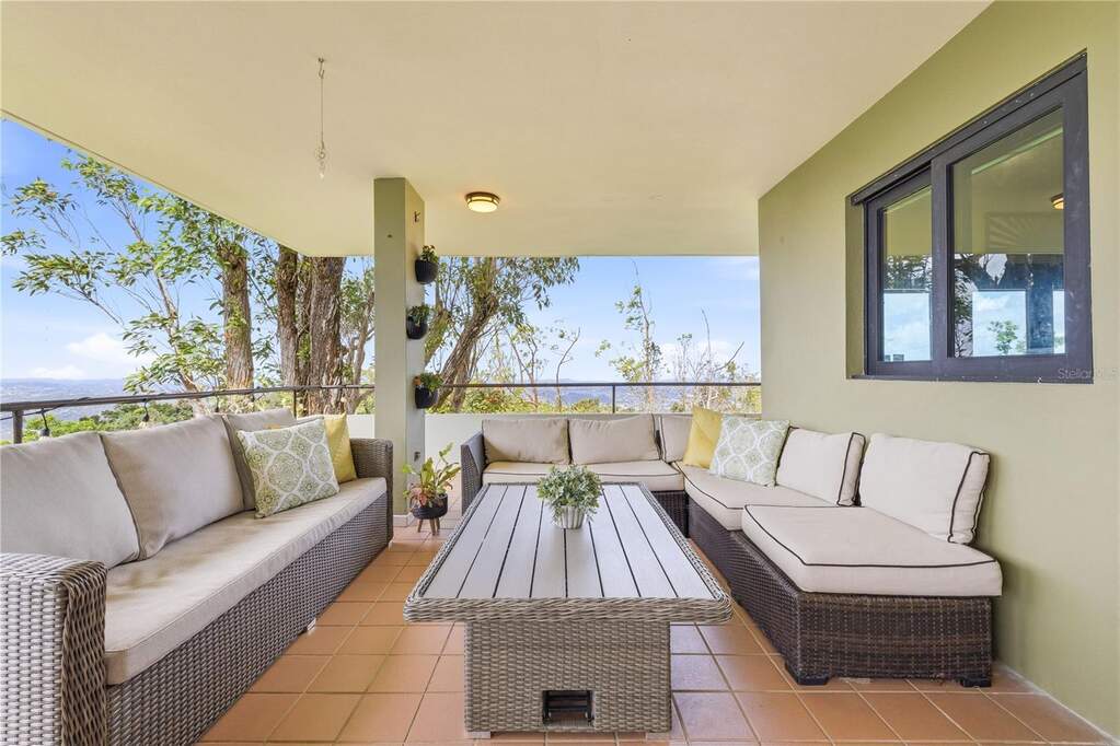 Private Mountaintop Retreat in Cayey - 5 Acres with Panoramic Views Perched at approximately 1,000 meters in the central mountains of Puerto Rico, this exceptional 4-bedroom, 4-bathroom home sits on 5 acres of lush land, offering 120 horizon views and unmatched privacy. Accessed via a long private driveway, the property is surrounded by nature, creating a serene and tranquil escape. Designed for comfort and modern living, the home features Starlink high-speed internet, a 10 kilowatts solar system with battery backup powering essential circuits and a gas generator, ensuring reliability for full-time living or remote work. The property also includes a solar water heater, 600-amp main panel, reverse osmosis and water system. The interior boasts a spacious upstairs master suite with travertine and ceramic tile floors, PVC and quartz finishes, a custom desk, and AC. The living room also has AC, and the home includes a gas stove, wraparound porch, and security camera system. Additional amenities include a 1 car garage with ample bult-in shelving, a pond, shed with electricity and water, and a licensed opportunity to build one more home on the property. The land is rich with tropical fruit trees including tangerine, bananas, guava, avocado, orange, and a Pana tree as well as 3 female goats that help maintain the grounds. With cooler mountain air, stunning sunsets over the western horizon, and proximity to local dining, this retreat combines privacy, natural beauty, and modern infrastructure, making it ideal as a private residence, vacation home, or investment opportunity.