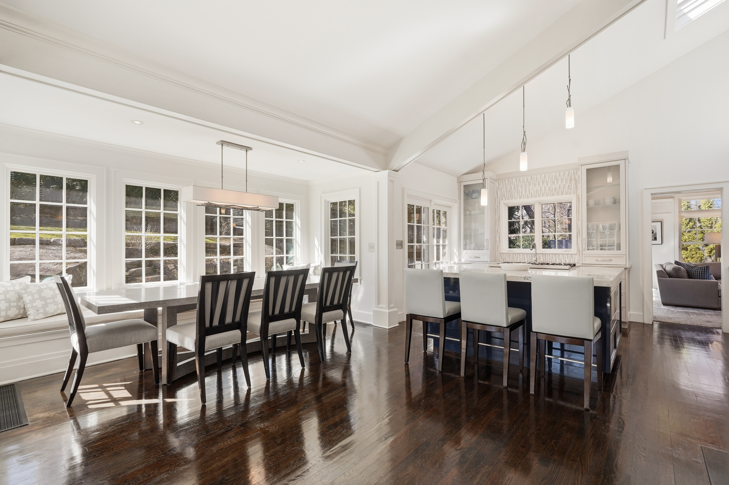 Stunning property, with landscape lighting and pool in the sought after Willowmere Assoc with deeded access to private beach, dock and kayak storage. This fabulously renovated and lovingly cared for home has a DaVinci roof, copper gutters, wonderful light from huge windows, doors and skylights soaring ceilings, gourmet kitchen and sumptuous primary suite. Quality finishes and thoughtful design elements throughout. SMART primary bath with spectacular shower featuring rain head and 4 alternating programmable body sprays, soaking tub, and Kohler Konnect system with speakers in the lighted medicine cabinets. Glass lit cabinets are finished with electric outlets and personal items. Gourmet kitchen with quartz counter tops, waterfall tile backsplash, great appliances and sunny 10 p banquet.
