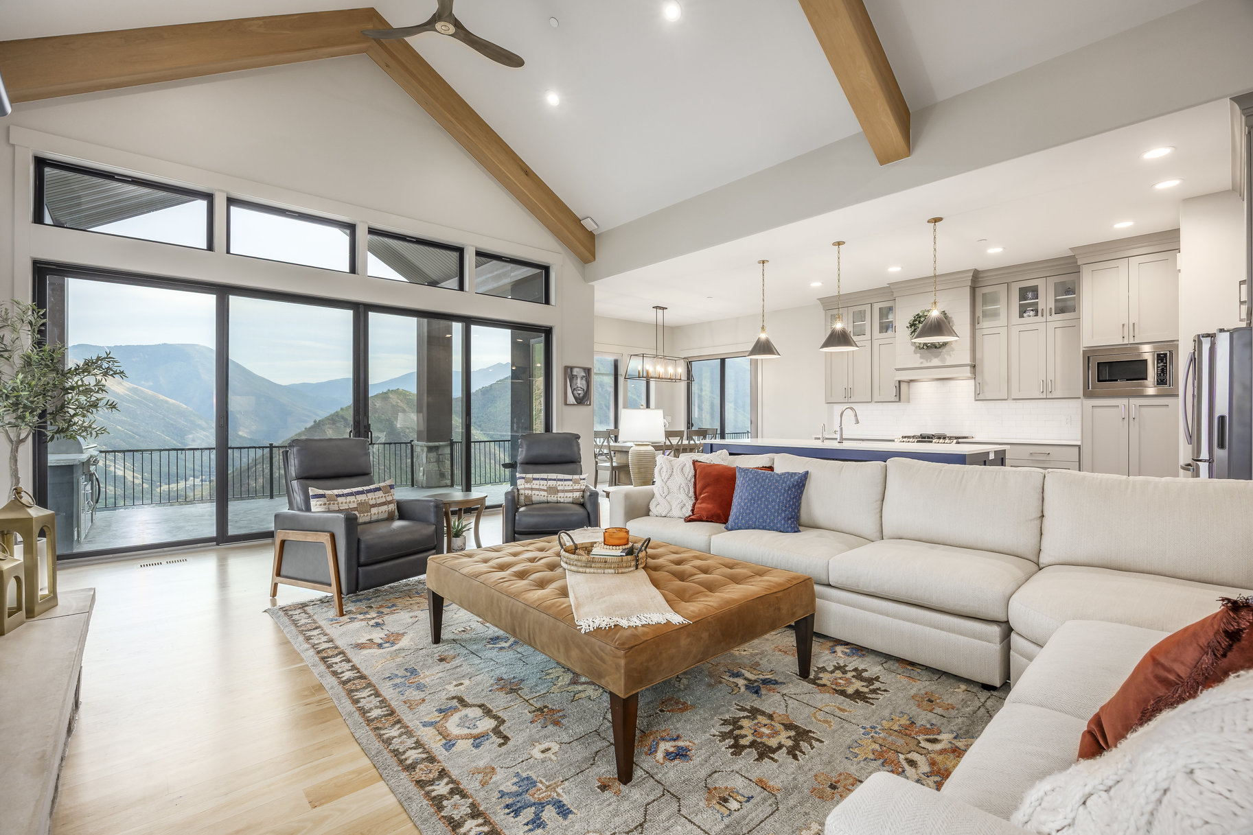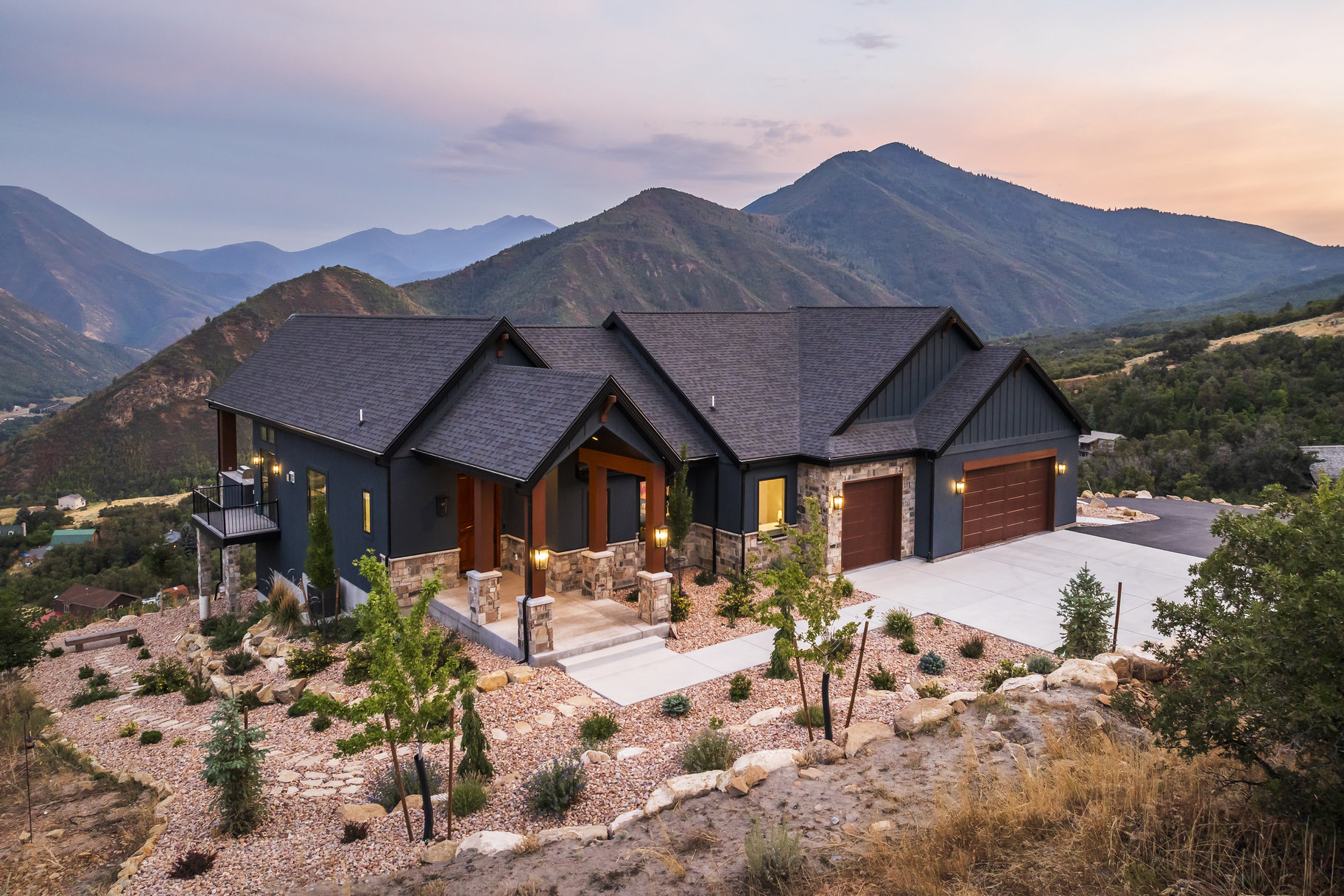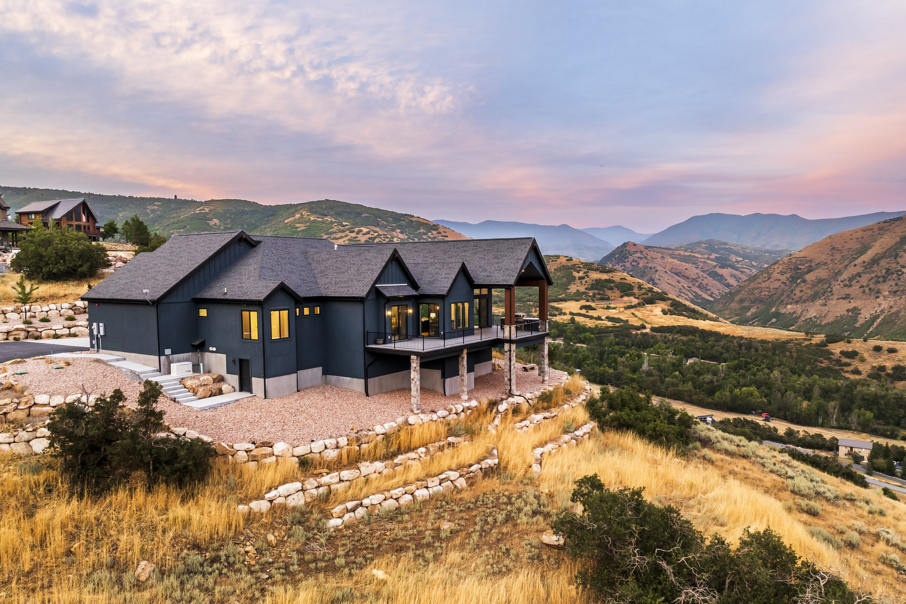 Located near the top of a gated community in Hobble Creek Canyon, this gorgeous home was built in 2022 and features breathtaking panoramic views and year-round mountain living. The views are so good that sitting on the deck and looking out at the mountains will actually bring peace to your life. They really are incredible! This home is about five minutes from the Hobble Creek Golf Course and it is close to all kinds of recreational opportunities for hiking, biking, and ATV adventures. It’s perfect for a primary residence or a vacation property. The roads are plowed in the winter and many families live up here all year. We are selling the home with the adjacent building lot located just below the home. You can build another home, hold it for an investment, sell it, or keep it untouched to preserve your view. The home features an open floor plan with vaulted ceilings, a spacious family room anchored by a fireplace, and a chef's kitchen with quartz countertops, an expansive island, and a bright dining nook framed by sweeping canyon views. The primary suite is really big with a luxurious bath and a huge oversized walk-in closet, while the second bedroom can double as a stylish office with built-ins. The family room and the primary suite open out to a large deck with a built-in outdoor BBQ. The home also has an unfinished basement that offers lots of potential for future expansion. Come up and experience Hobble Creek Canyon. You will never regret it. Did I mention how good the views are!!