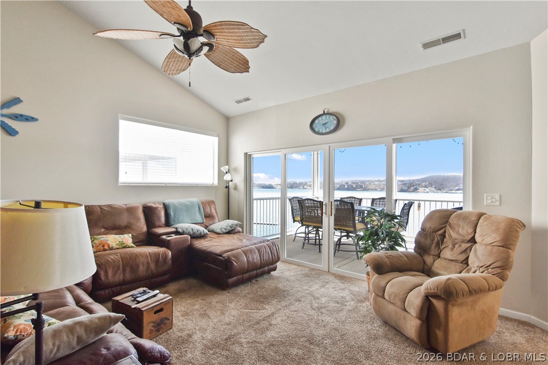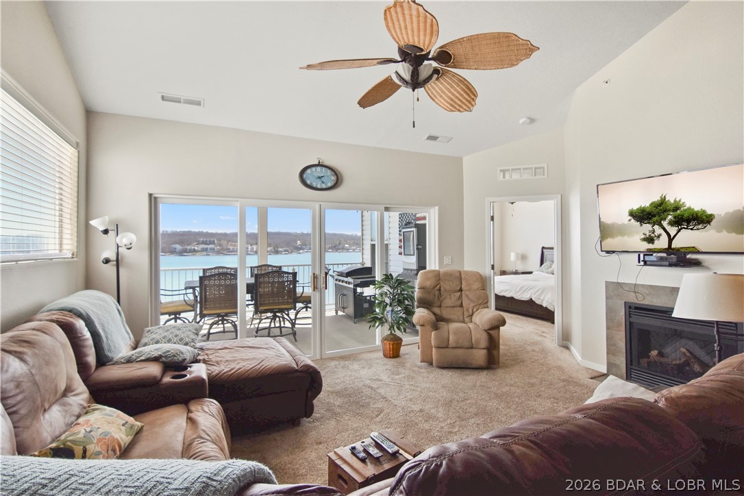 Location, views, and value - this top floor, end-unit condo at Isla Del Sol delivers all three. This unique complex is surrounded by water and accessed by a causeway, creating a true island-like setting with some of the best panoramic views you'll find at Lake of the Ozarks. This 3 bedroom, 2 bath condo offers 1,447 sq ft and is one of the most desirable layouts in the complex. Being a top floor unit, you'll enjoy vaulted ceilings that create a spacious feel and maximize the incredible lake views. As an end unit, the condo features a more open deck area and additional natural light - two features buyers consistently prefer. The unit comes fully furnished and includes a 12x32 boat slip, making it ready for immediate enjoyment on the water. Located at the 4 Mile Marker, you're just minutes from the Bagnell Dam Strip, placing dining, shopping, and entertainment close by. For the size, boat slip, furnishings, and unbeatable views, this property is priced aggressively compared to similar condos at the lake. If you've been looking for a way to get a lot of condo and a lot of view for your money, this is a property you need to see. Could also make a great rental property!