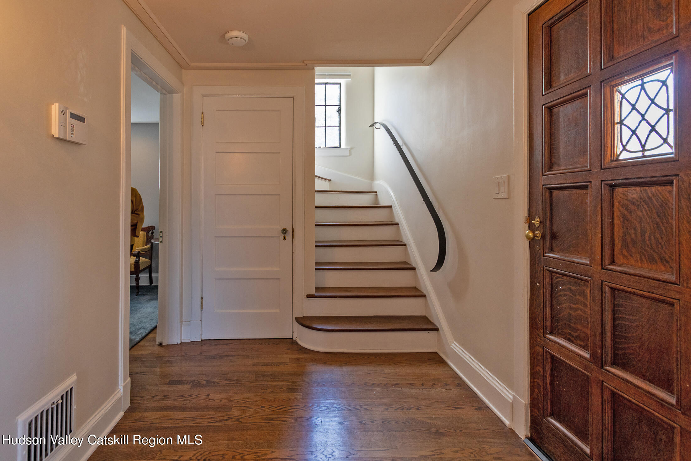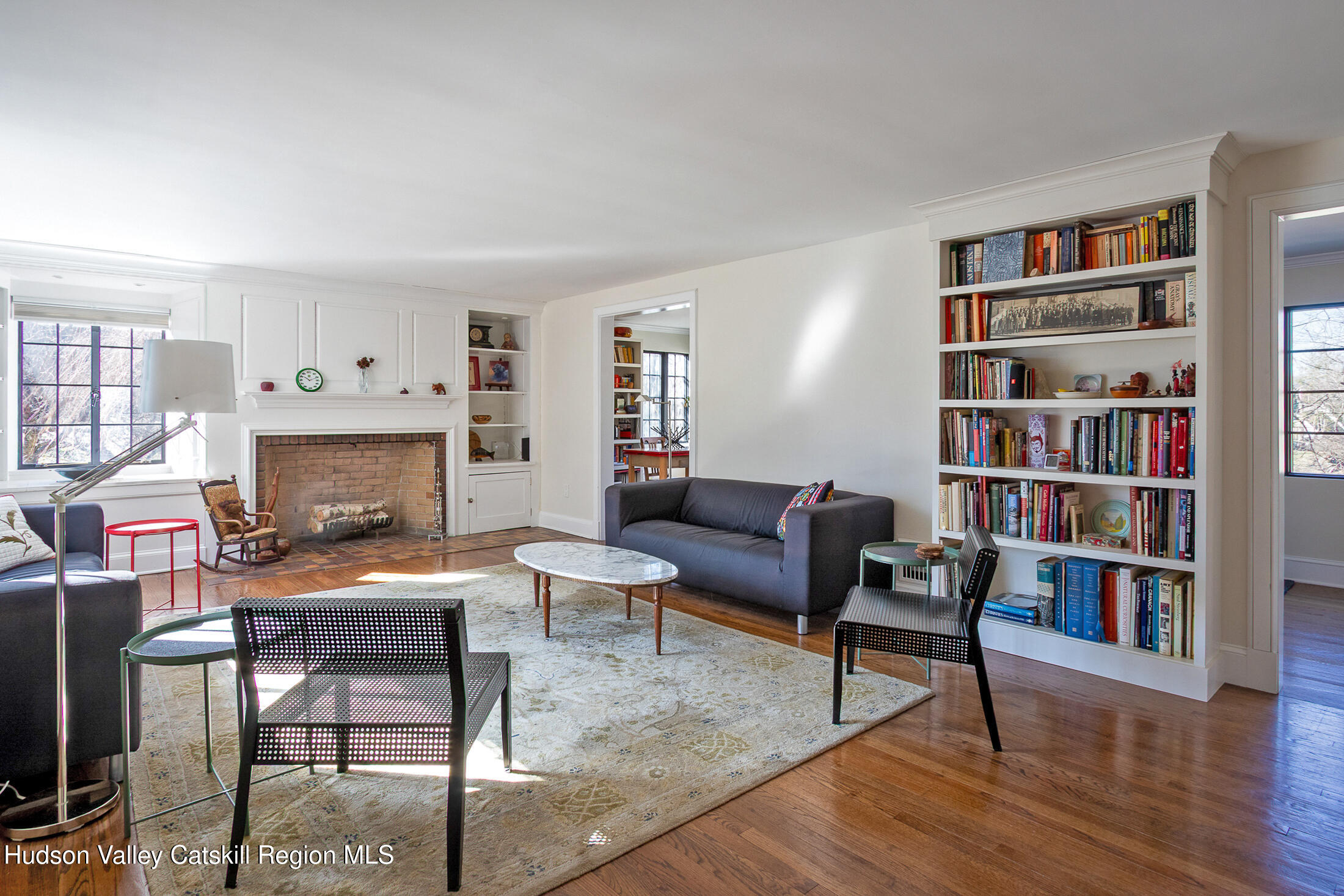 This beautifully restored 1925 English Tudor perched on a sunny corner in Poughkeepsie's historic Southside is just moments from the walking trails of Springside National Historic Site, which the property abuts. Solidly built and thoughtfully updated, the home blends the craftsmanship of its era with the comfort of modern living. The home is drenched in warm, natural light with large windows illuminating the gleaming hardwood floors. There is a sensible natural flow to the living space - the fireplace-anchored living room opens to a dazzling chef's kitchen with marble countertops, generous center island, Sub-Zero refrigerator, Wolf range, and Restoration Hardware lighting. Just beyond, a bright windowed sunroom offers a welcoming spot for reading, working, or morning coffee. French doors off the kitchen open to a private patio with an outdoor fireplace, perfect for entertaining. The home offers four bedrooms, including a convenient first-floor ensuite bedroom option. Upstairs the primary bedroom centers on a classic brick fireplace and is the perfect place to relax. Two additional rooms provide guest quarters or elegant work from home space. The beautifully finished marble spa bath is a soothing place to unwind. Walk-out basement adds valuable extra space, with laundry, full bath, and plenty of room for hobbies, and storage. The one car garage is conveniently located on this level as well. Set on a quiet cul-de-sac in one of the city's most coveted neighborhoods, the location offers easy access to Vassar and Marist Colleges, hospitals, Metro-North, Amtrak, and the dining and cultural life of downtown Poughkeepsie. A home that feels both rooted and refined--classic architecture, generous living spaces, and the ease of city living close at hand.