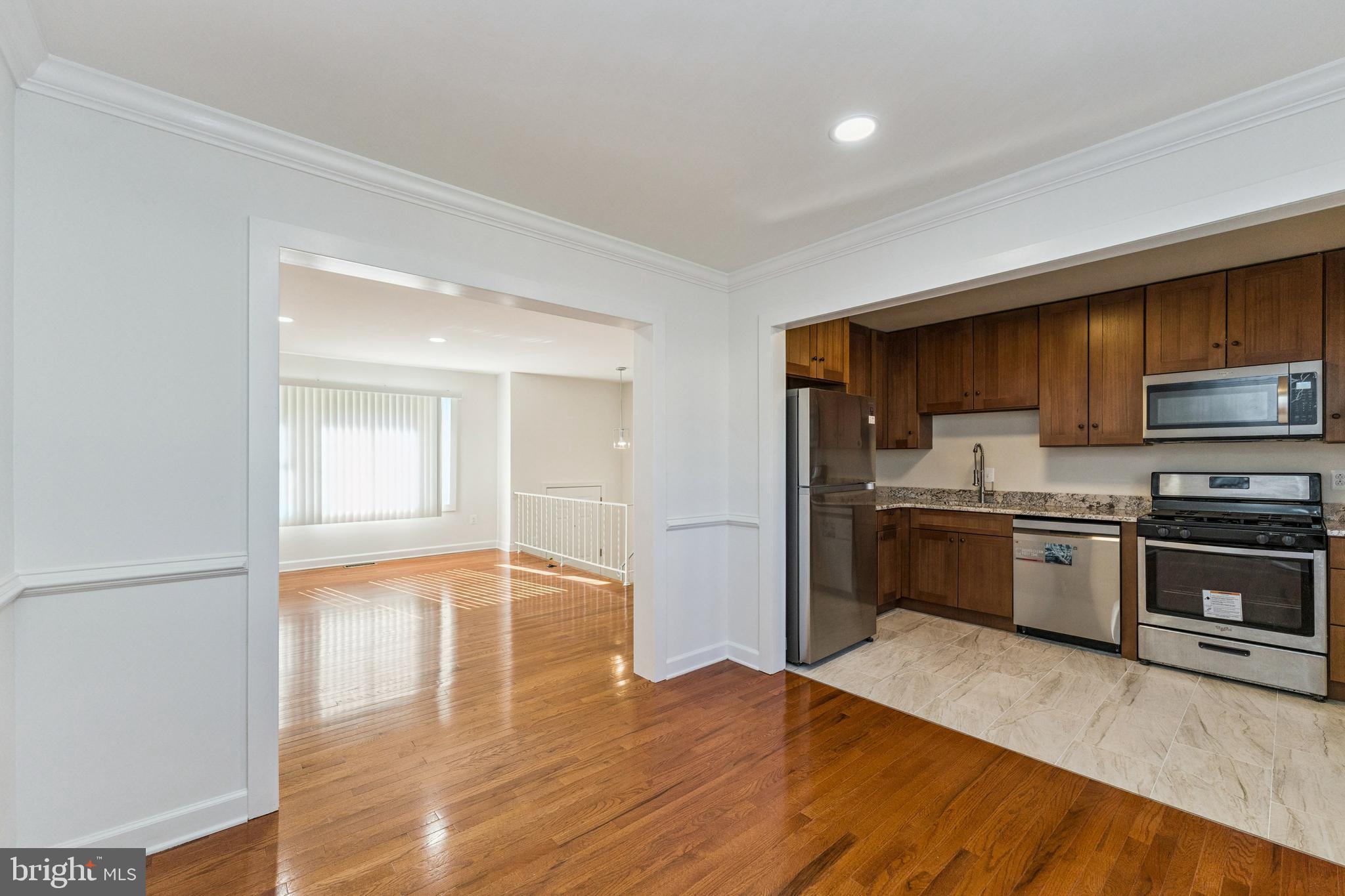 Step into this beautifully renovated split-foyer home that perfectly blends space, style, and versatility. Featuring 6 generously sized bedrooms, 2 full kitchens, and 2 full baths, this home is ideal for comfortable living, multi-generational needs, or added rental potential. Enjoy brand-new hardwood floors throughout and tastefully updated bathrooms that add a modern touch. The main-level kitchen shines with new cabinetry and elegant granite countertops, while the fully renovated lower-level kitchen boasts new cabinets, sleek quartz countertops, and all-new appliances - perfect for entertaining or extended living. Unwind or host gatherings on the spacious deck just off the dining room, overlooking a fully fenced backyard and a large patio - ideal for outdoor enjoyment year-round. Conveniently located near restaurants, shopping, and public transportation, this move-in-ready home offers both comfort and accessibility. Don't miss your chance to make it yours!
