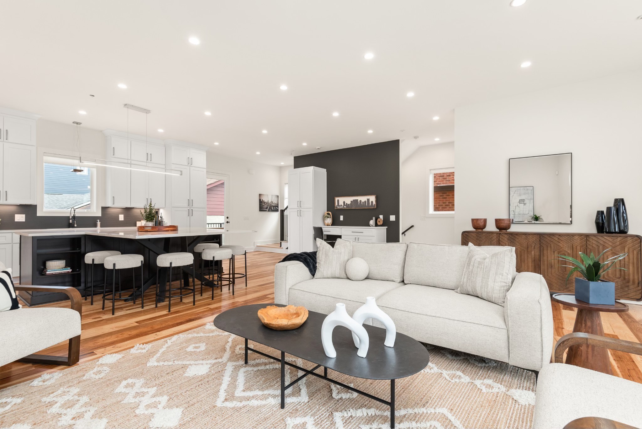Welcome to this newly constructed townhome in the heart of Salemtown, just minutes from Germantown and downtown Nashville. This sidewalk-lined neighborhood offers walkable access to top restaurants, shops, and vibrant city living. Inside, enjoy 10-foot ceilings, hickory floors, and an open-concept layout designed for modern living and entertaining. The gourmet kitchen features stainless steel Fisher & Paykel appliances, a gas range, and a striking built-in dining table. The main living area opens to a private balcony and includes a built-in desk for work-from-home convenience. The home offers two private primary suites, on the ground and third floors, each with en-suite baths, plus an additional full bath on the main level. The third floor also features a second workspace and ample storage. A brand-new neighborhood grocer is opening next door for everyday convenience, while the upcoming Cultivar craft cocktail bar just around the corner adds to the area’s growing appeal. Complete with a one-car garage, ample street parking, and close proximity to Central Dog Park and Morgan Park, this move-in ready home is a rare opportunity to enjoy elevated, walkable Nashville living.