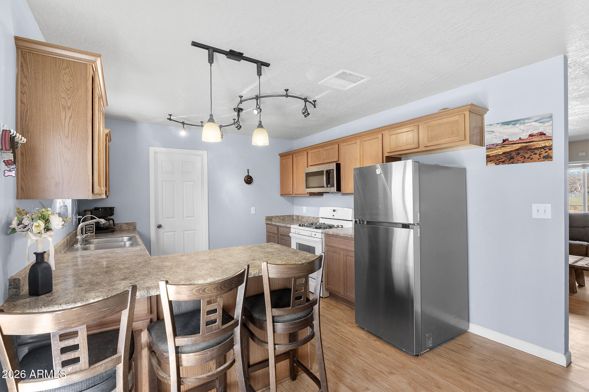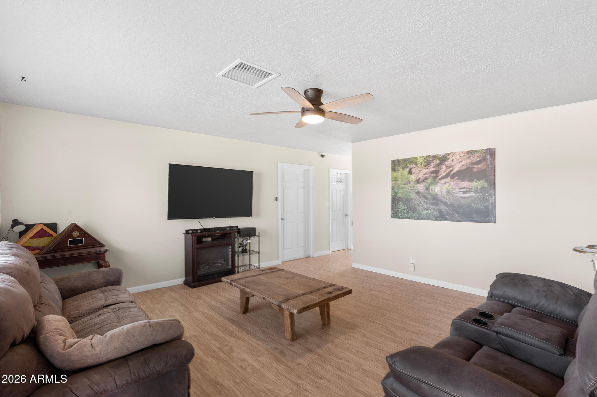 Set on a spacious 0.3-acre lot in the heart of Cottonwood, this inviting 3-bedroom, 2-bath home with a versatile bonus room offers the perfect blend of comfort, functionality, and flexibility. Inside, bright natural light, fresh interior paint, and updated flooring create a clean, move-in-ready space that feels both warm and refreshed. The primary bedroom includes a large en-suite bathroom with dual vanities and walk-in closet. In addition to the three bedrooms, a spacious fourth room with its own private entrance offers endless possibilities, ideal as a guest suite, home office, playroom, or income-producing space. There is plenty of storage throughout the home, including a large dedicated laundry room and a walk-in pantry that make everyday living easy and organized. Outside, enjoy a fully fenced property with an additional separate fenced backyard, perfect for pets. With Agricultural/Residential zoning, build the garden of your dreams or keep animals in accordance with City of Cottonwood guidelines. 1731 E Mingus Avenue is the ideal home base, just minutes from local amenities, outdoor recreation, and everything the Verde Valley has to offer.