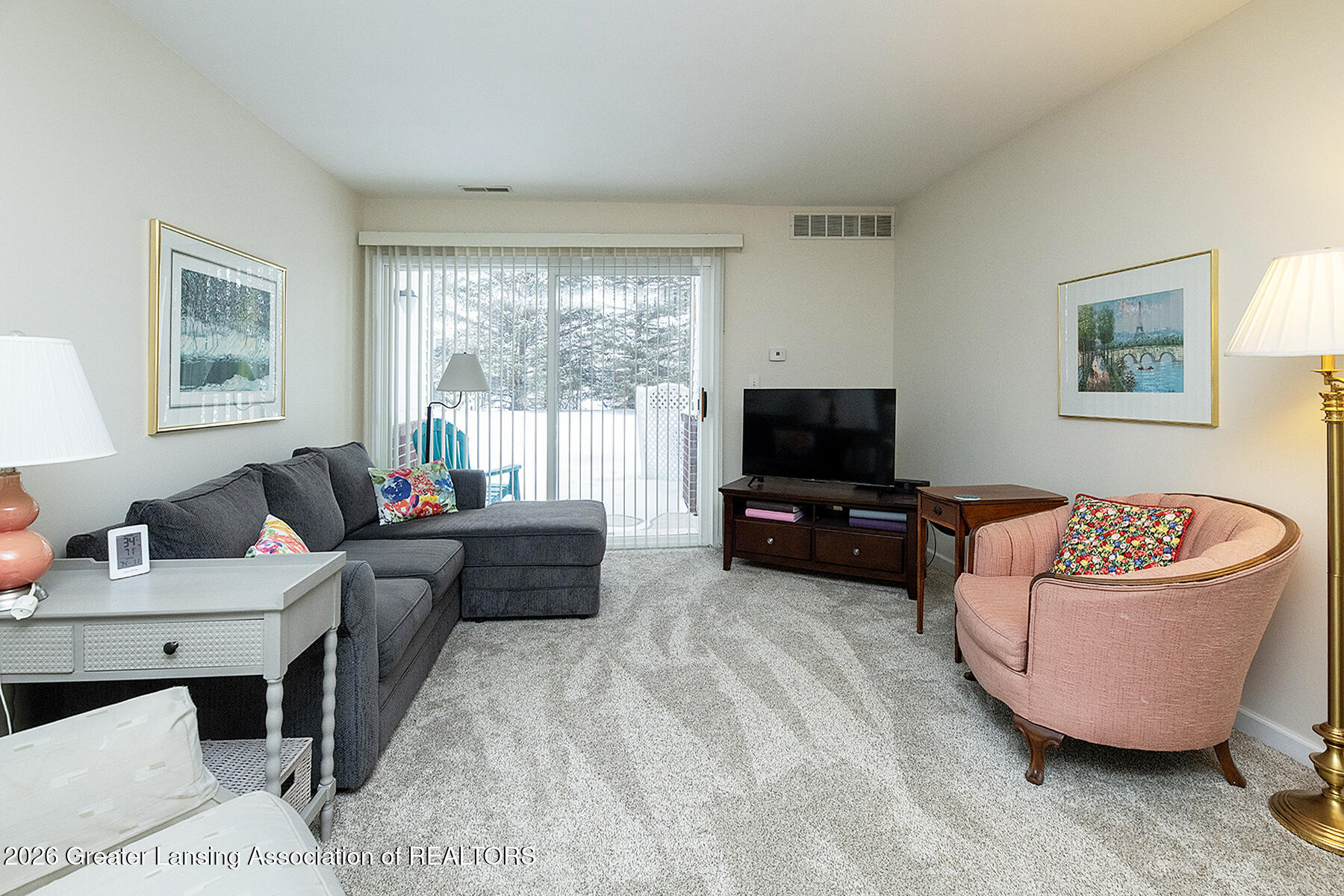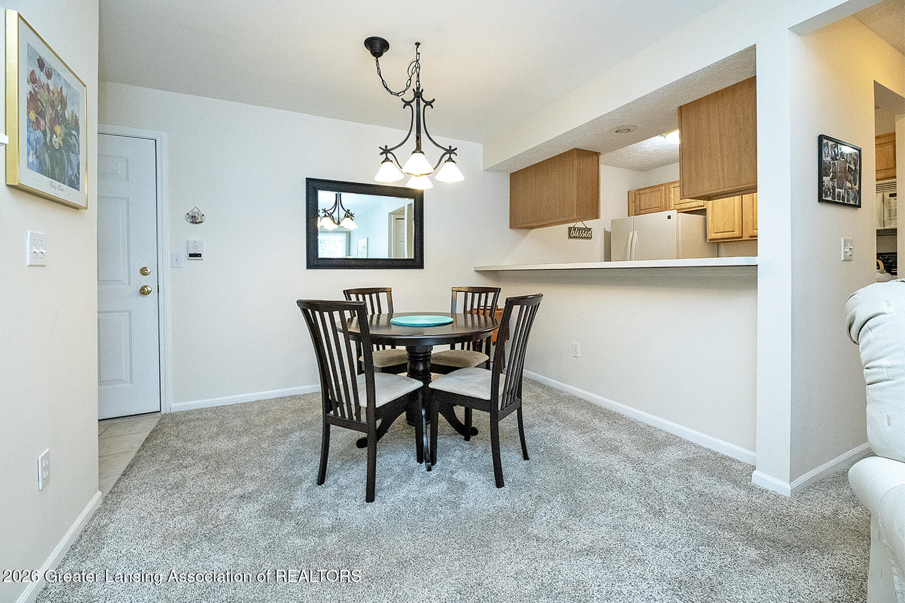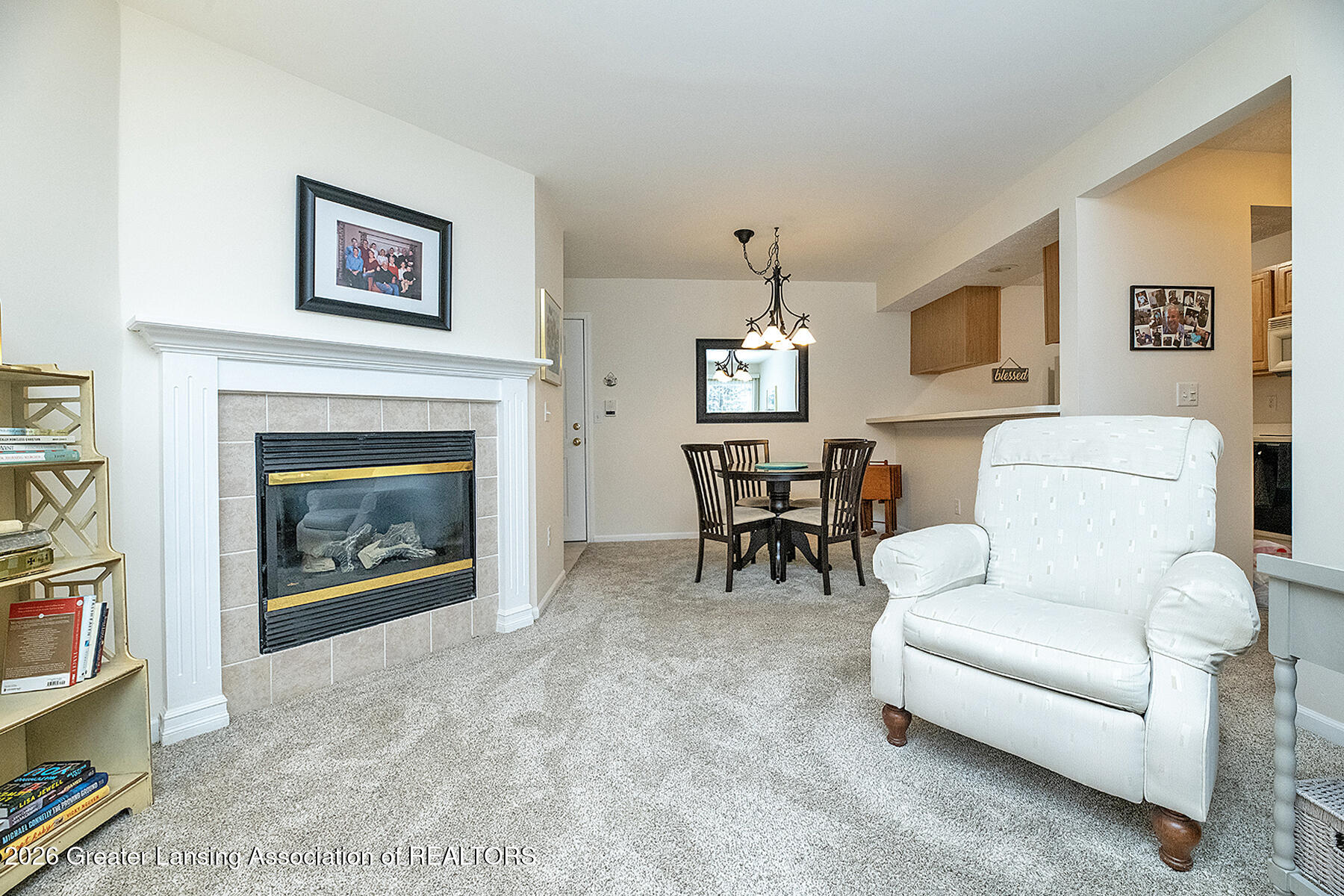 Sharp well maintained condo with open floor plan. First floor unit. Spacious living room with cozy gas fireplace and slider that leads to patio perfect for relaxing. Dining room with attractive lighting. Kitchen has nice cabinetry. All appliances remain with the condo. In unit laundry closet. Wonderful primary suite with walk in closet and full bathroom. Another generous size bedroom serviced by a second full bath. Some newer carpet, water heater 2022 and furnace 2023. Unit also comes with a one car garage. Intercom system. Care free living at its best. Just minutes from the charming town of Mason. Easy to show Occupancy at close.