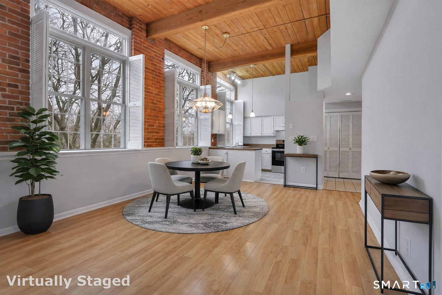 Rarely available end unit that's full of character, with an eastern view, this sun-filled third-floor condo is located in the historic Zipper Factory in the heart of Kensington. Originally converted in 1987, the building beautifully blends industrial charm with modern comfort. Inside, soaring ceilings, exposed brick and beams, and abundant natural light create a warm and inviting atmosphere. The home has been thoughtfully updated with freshly painted walls and trim, newer windows, and brand-new kitchen appliances including a stove, refrigerator, and dishwasher. The open-concept layout seamlessly connects the kitchen, dining, and living areas, creating a spacious and airy environment ideal for both everyday living and entertaining. An in-unit washer/dryer add everyday convenience. The generous primary bedroom features two large closets, including a spacious walk-in, and a full ensuite bath. Residents also enjoy access to the building's tranquil first-floor atrium, along with an elevator. Additional highlights include a private storage unit located in the red barn behind the building, an assigned parking space (#43) just steps from the entrance, and ample guest parking. Ideally situated just minutes from major highways, the Berlin train station, shopping, and dining, this location offers exceptional accessibility. With AMTRAK express service to New Haven and convenient rail connections to New York City and Boston, commuting or enjoying a city getaway is effortless.